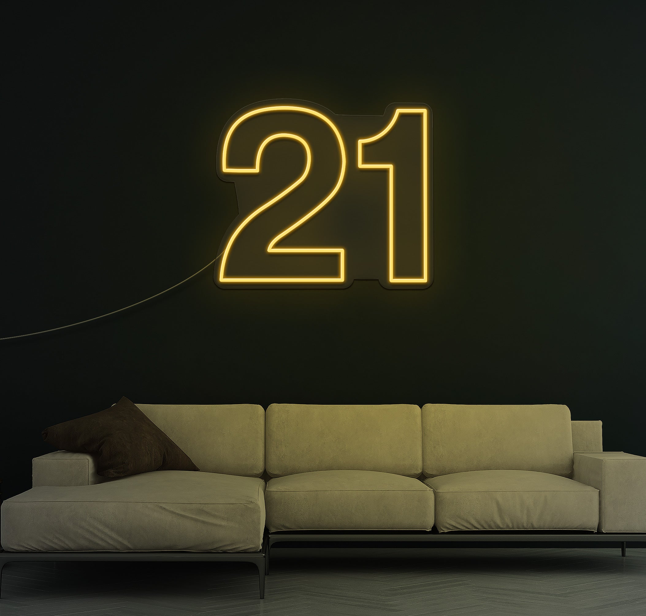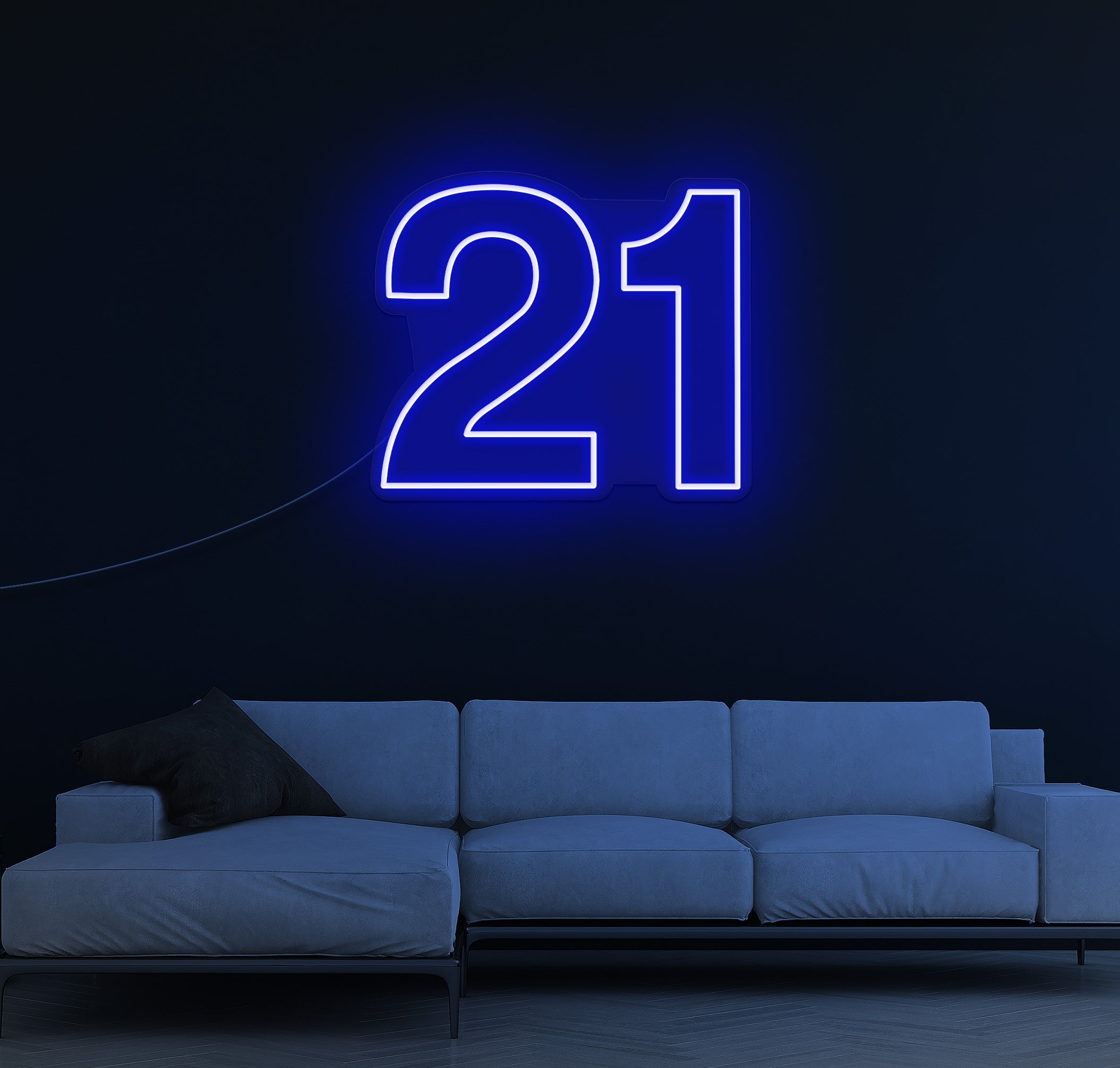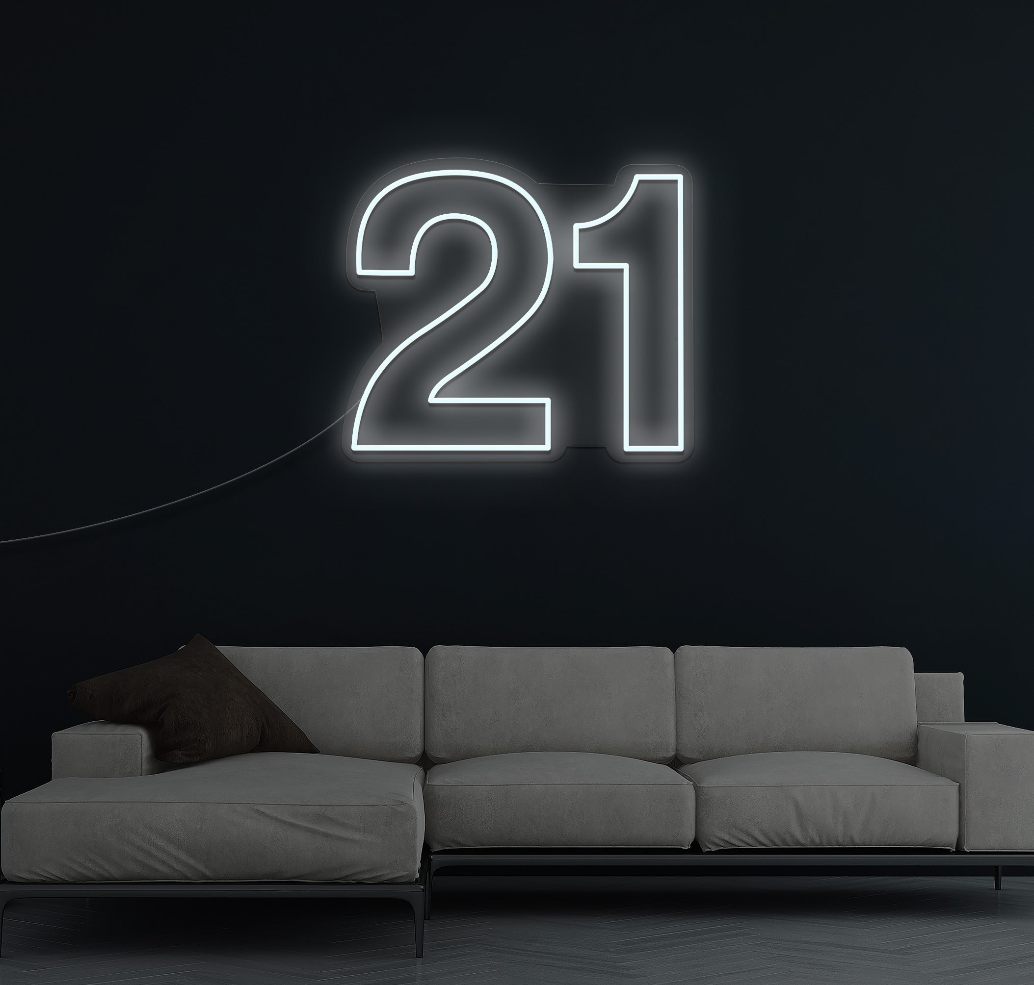 Crafted with high-quality LED lights, the "21 LED Neon Sign" emits a vibrant glow that instantly sets the mood for a memorable night. Its sleek design and bold colours make it a standout decoration, whether hung on the wall or placed on a table.