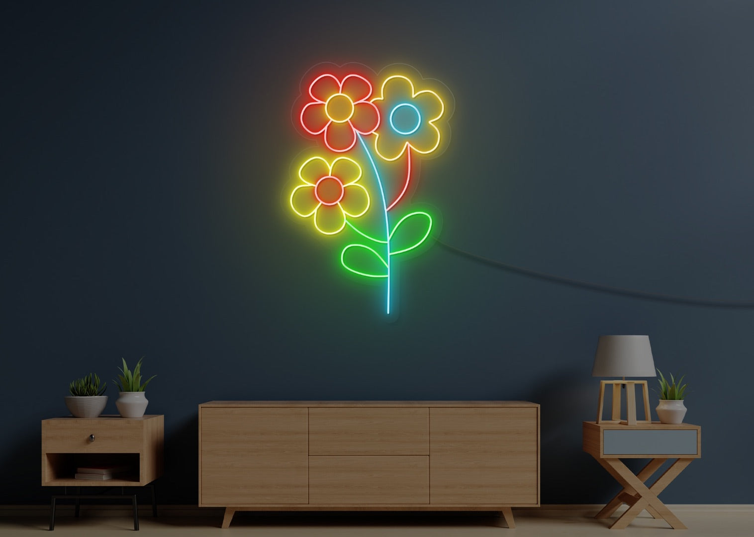 Brighten up your space with the enchanting "3 Flowers LED Neon Sign." Crafted with high-quality LED neon technology, this sign boasts vibrant colours and long-lasting performance. Perfect for adding a touch of elegance to any room, its sleek design allows for easy installation on any wall. Whether you're a fan of floral motifs or simply appreciate its graceful aesthetic, the "3 Flowers LED Neon Sign" is sure to enhance the ambiance of your space. Ideal for bedrooms, living rooms, or home offices, this sign is a must-have for flower enthusiasts and collectors alike. With its captivating design and vivid illumination, it will become the focal point of your decor, creating a mesmerising atmosphere. Transform your space into a charming oasis inspired by the beauty of flowers with the "3 Flowers LED Neon Sign" and immerse yourself in its radiant glow.