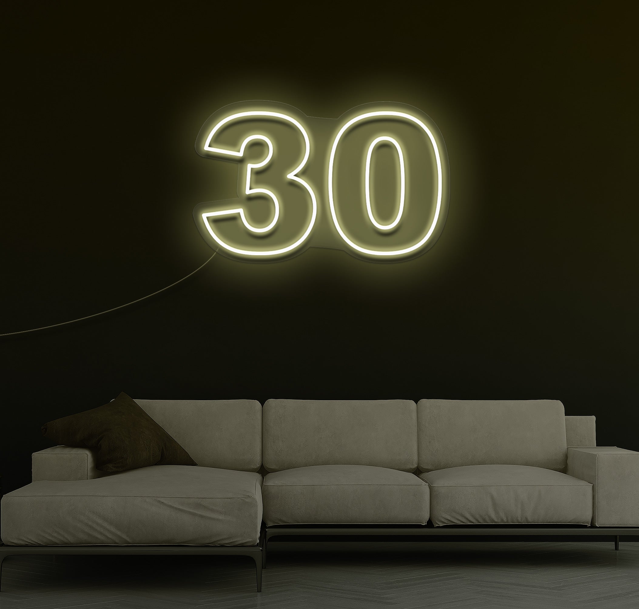 Whether you're celebrating with friends and family or throwing a big bash, the "30 LED Neon Sign" is sure to impress your guests and make your milestone event one to remember. Light up your 30th celebration in style with this stylish and captivating neon sign.