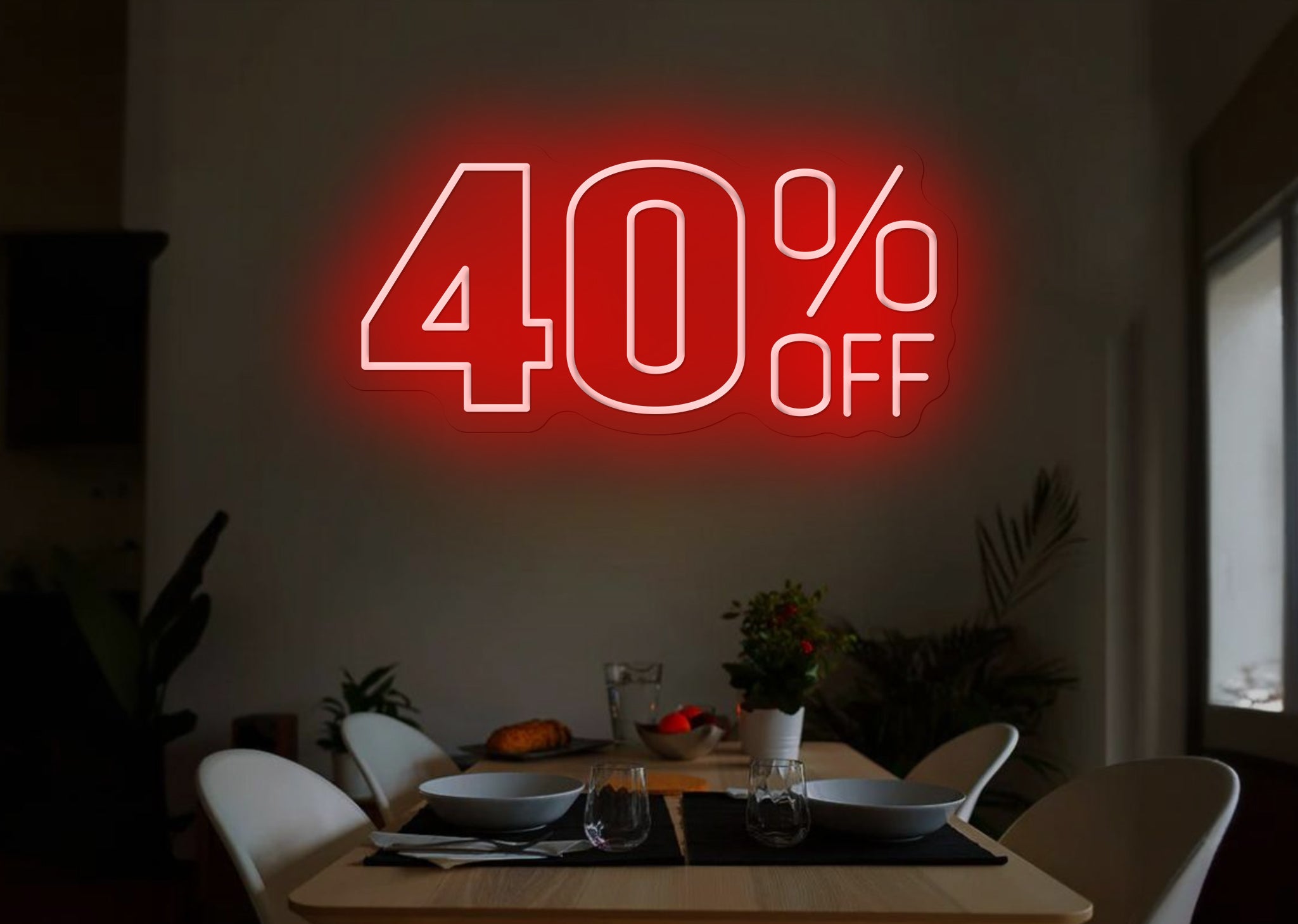 Perfect for seasonal sales, special promotions, or limited-time offers, this LED sign is designed to stand out, helping your brand make a lasting impression. Durable, energy-efficient, and easy to install, this LED sign offers all the charm of traditional neon with the efficiency of LED technology. Whether it’s Black Friday, a flash sale, or just a regular promotion, the "40% Off" LED Neon Sign will add that extra pop to boost your visibility and increase foot traffic. Grab this versatile sign today and let your promotions shine!