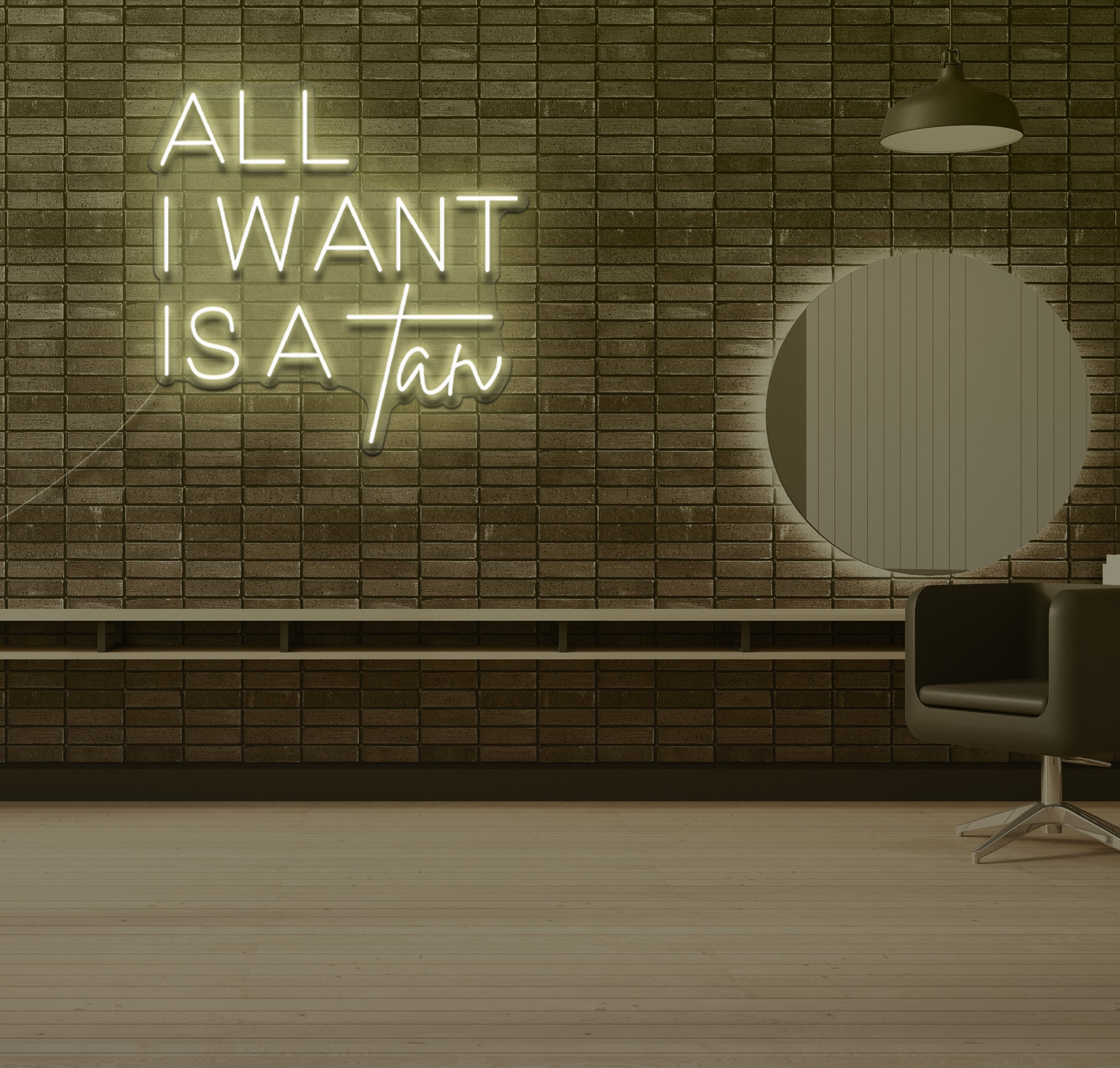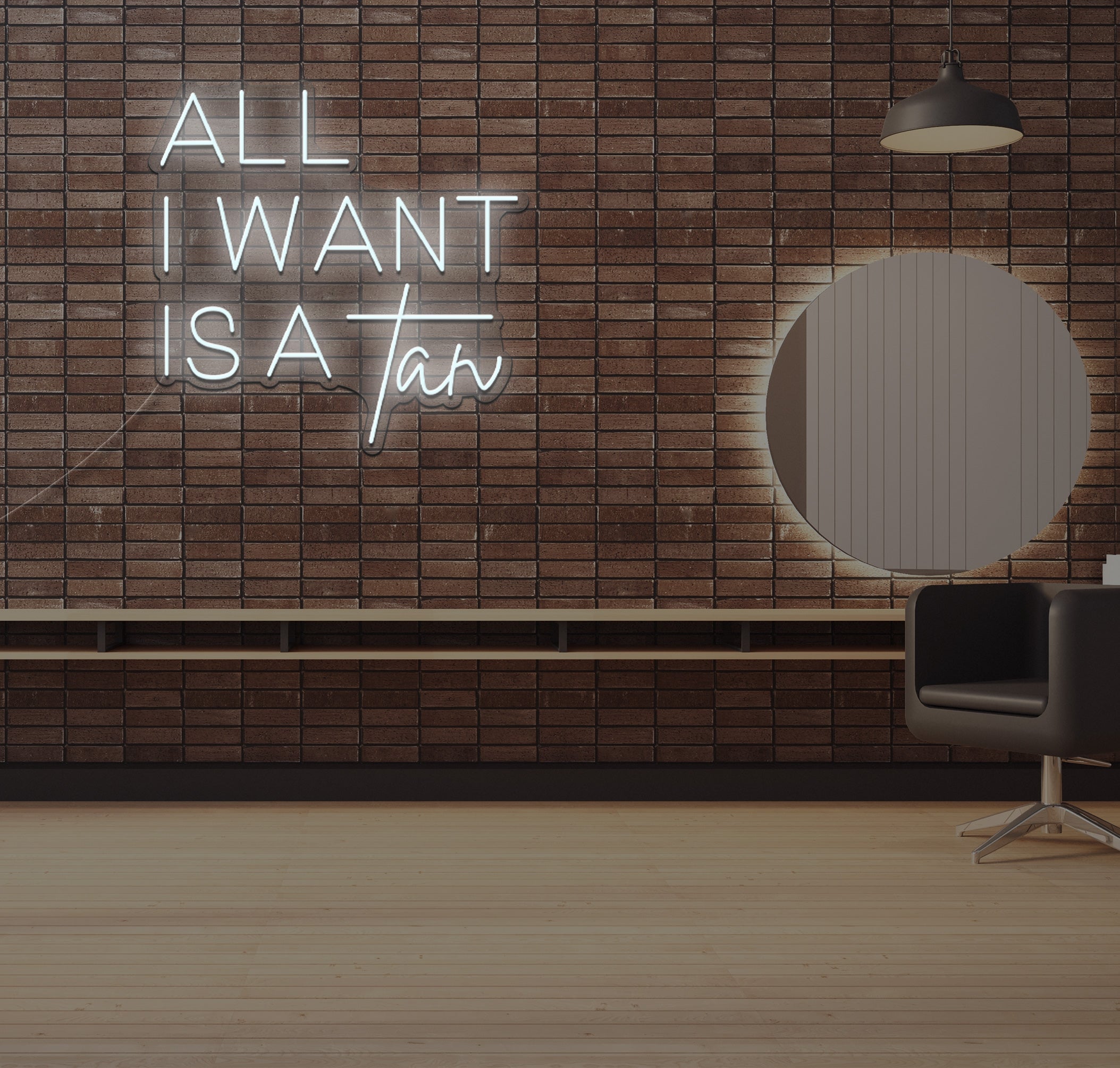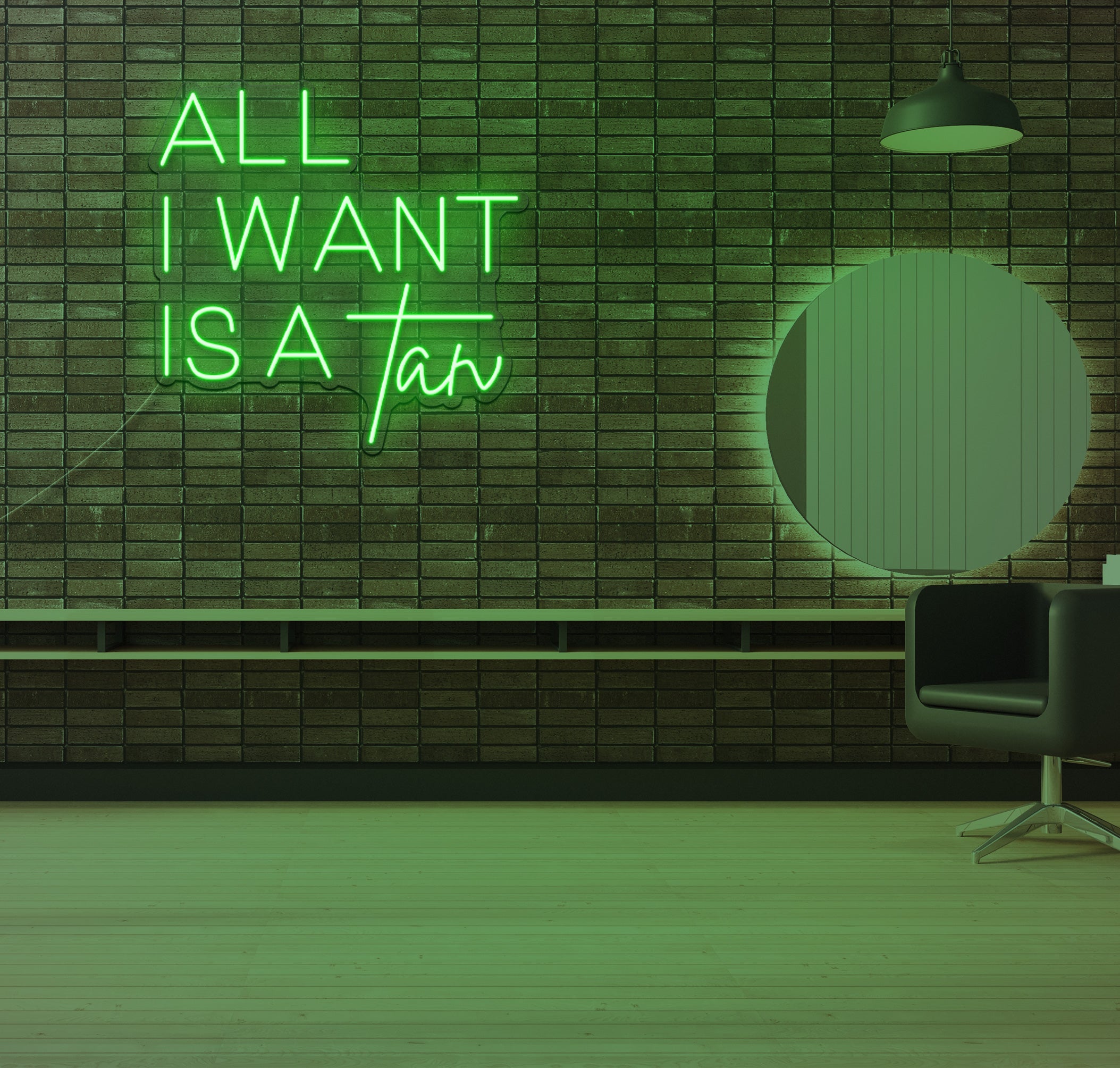 Whether you're dreaming of sunny beaches or simply want to add a touch of warmth to your space, the "All I Want is a Tan" Custom LED Neon Sign from The Neon Factory is the perfect choice. Order yours today and let the radiant glow of LED neon transport you to sunnier days.