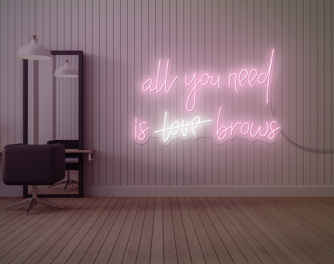 Our "All You Need is Brows" LED Neon Wall Light is a striking addition to any salon or beauty space, radiating sophistication and style with its luminous glow. Fully customisable, this LED neon sign allows you to choose your preferred colours and size, ensuring it perfectly complements your salon's aesthetic.