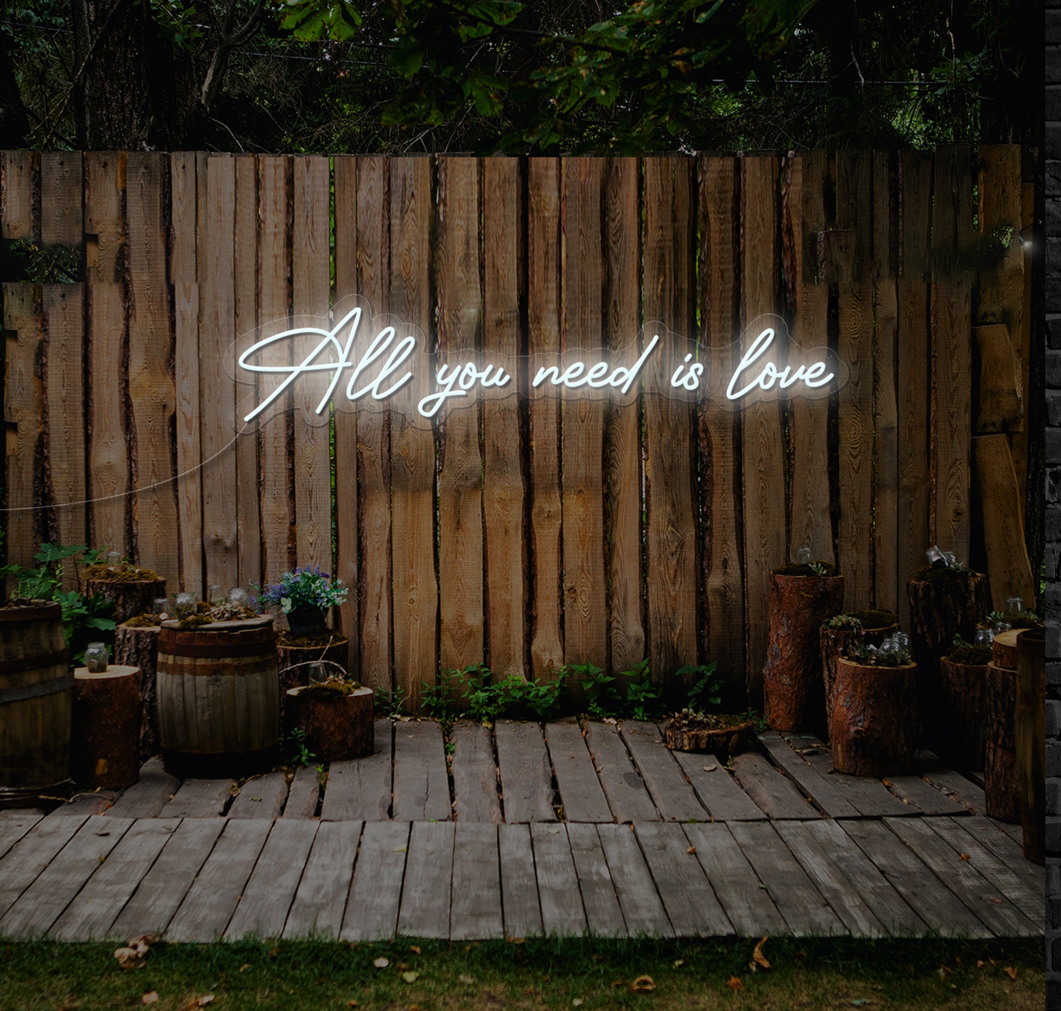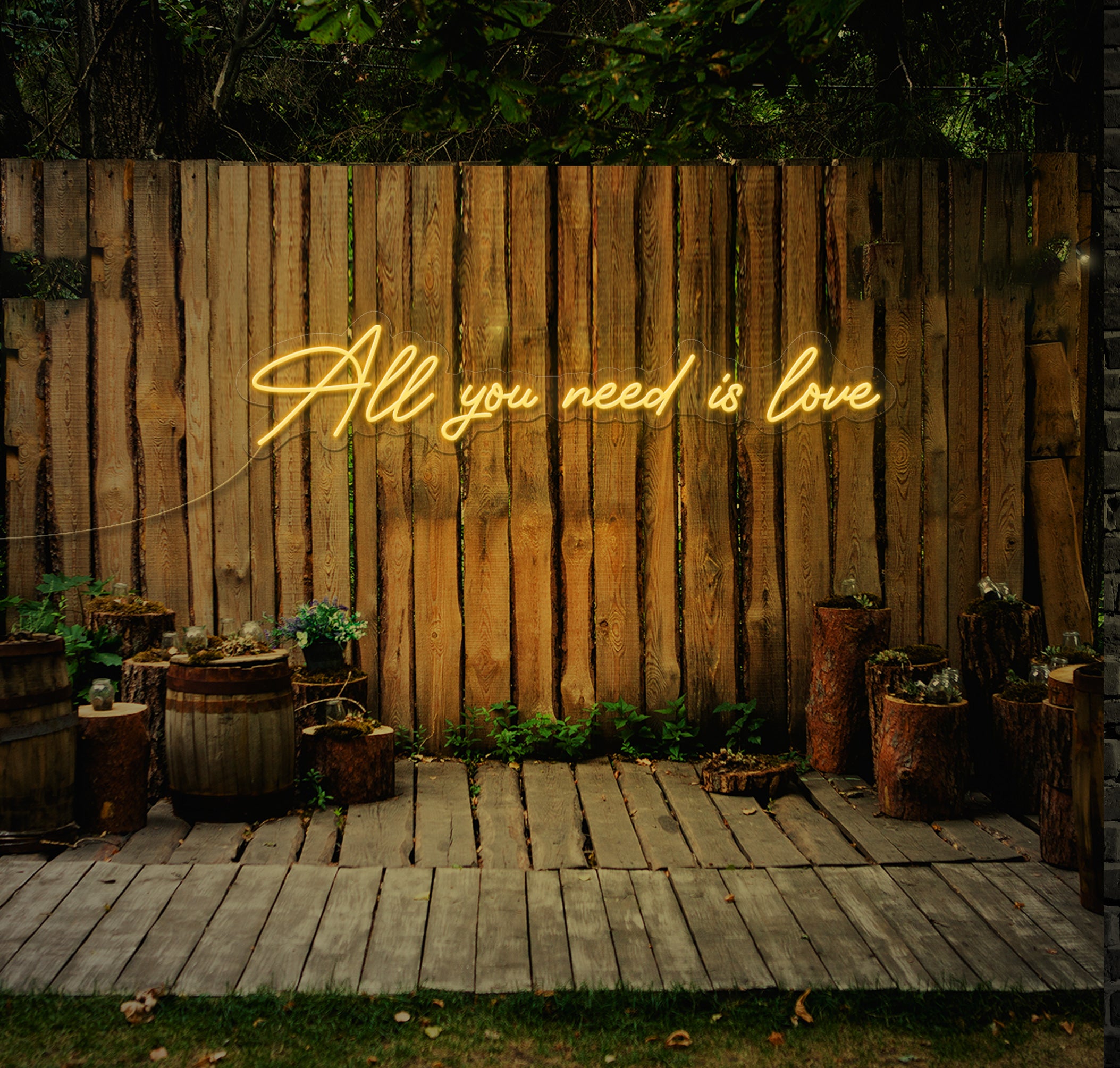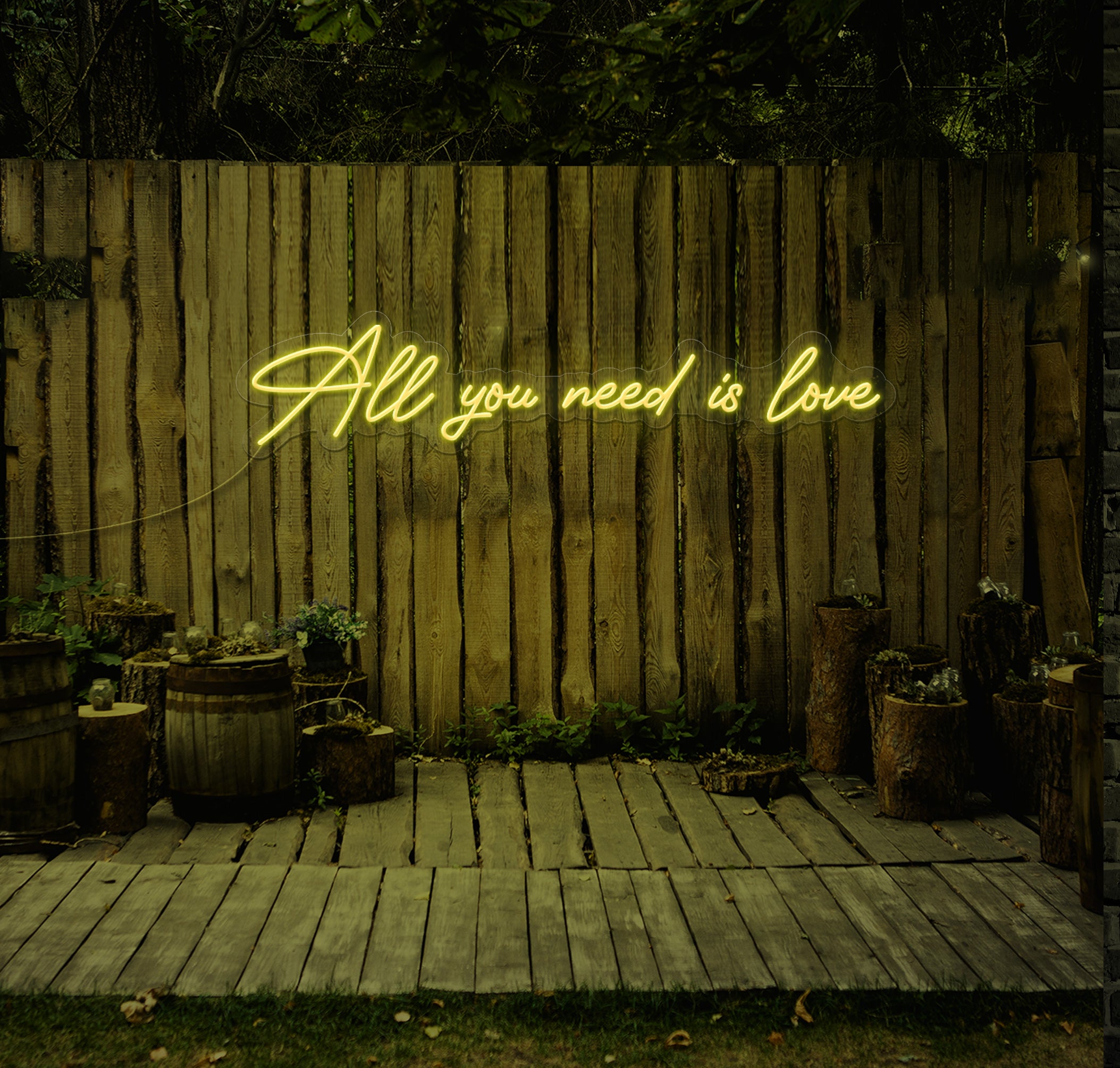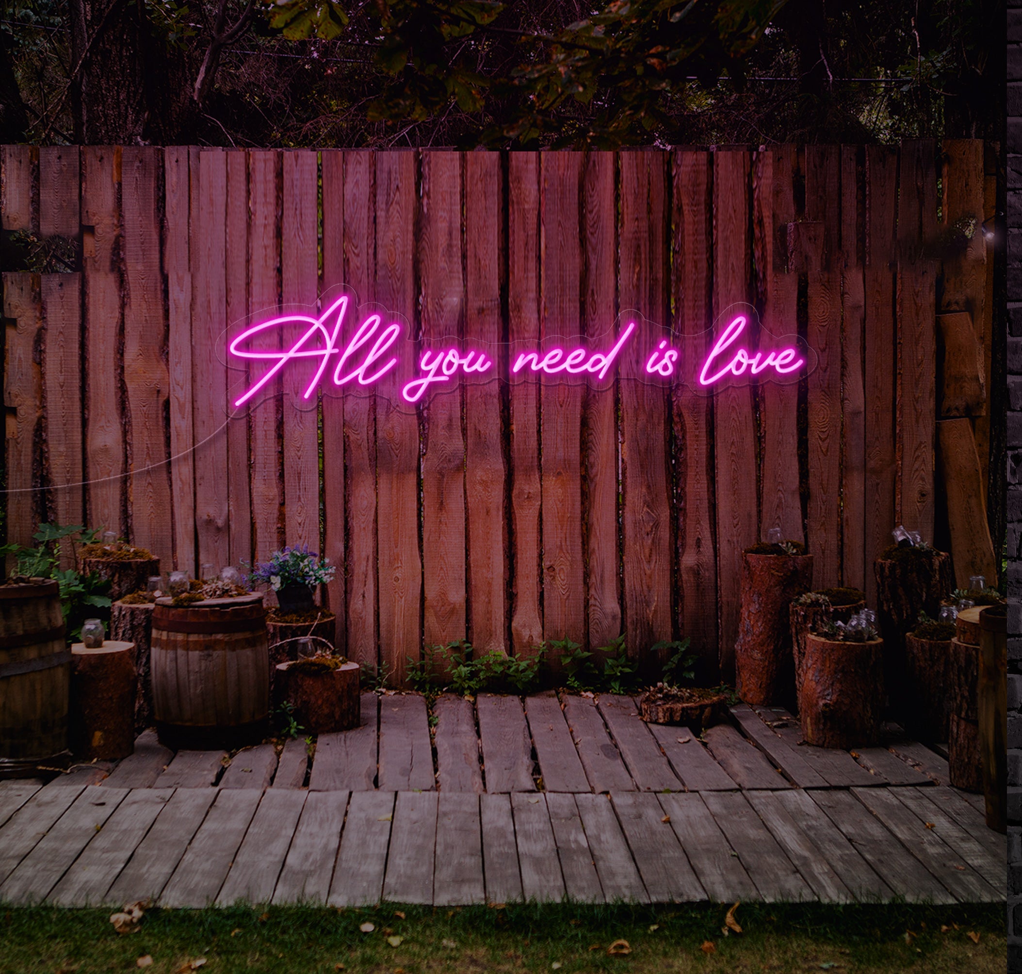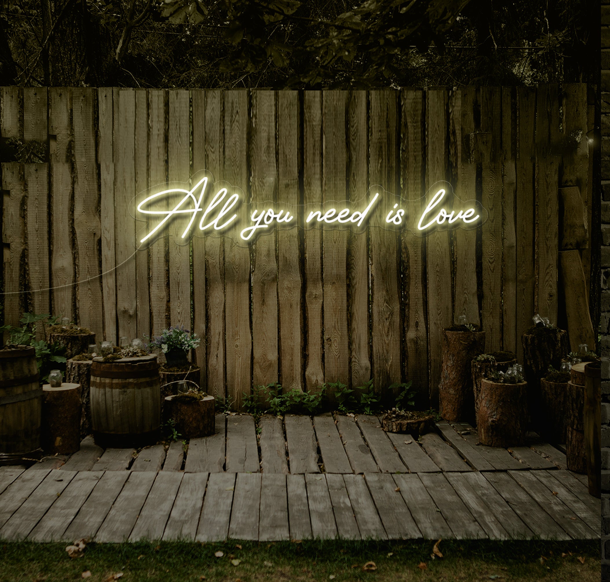 Let The Neon Factory illuminate your wedding day with the timeless message of "All You Need Is Love." Order yours today and celebrate the power of love to unite hearts and souls.