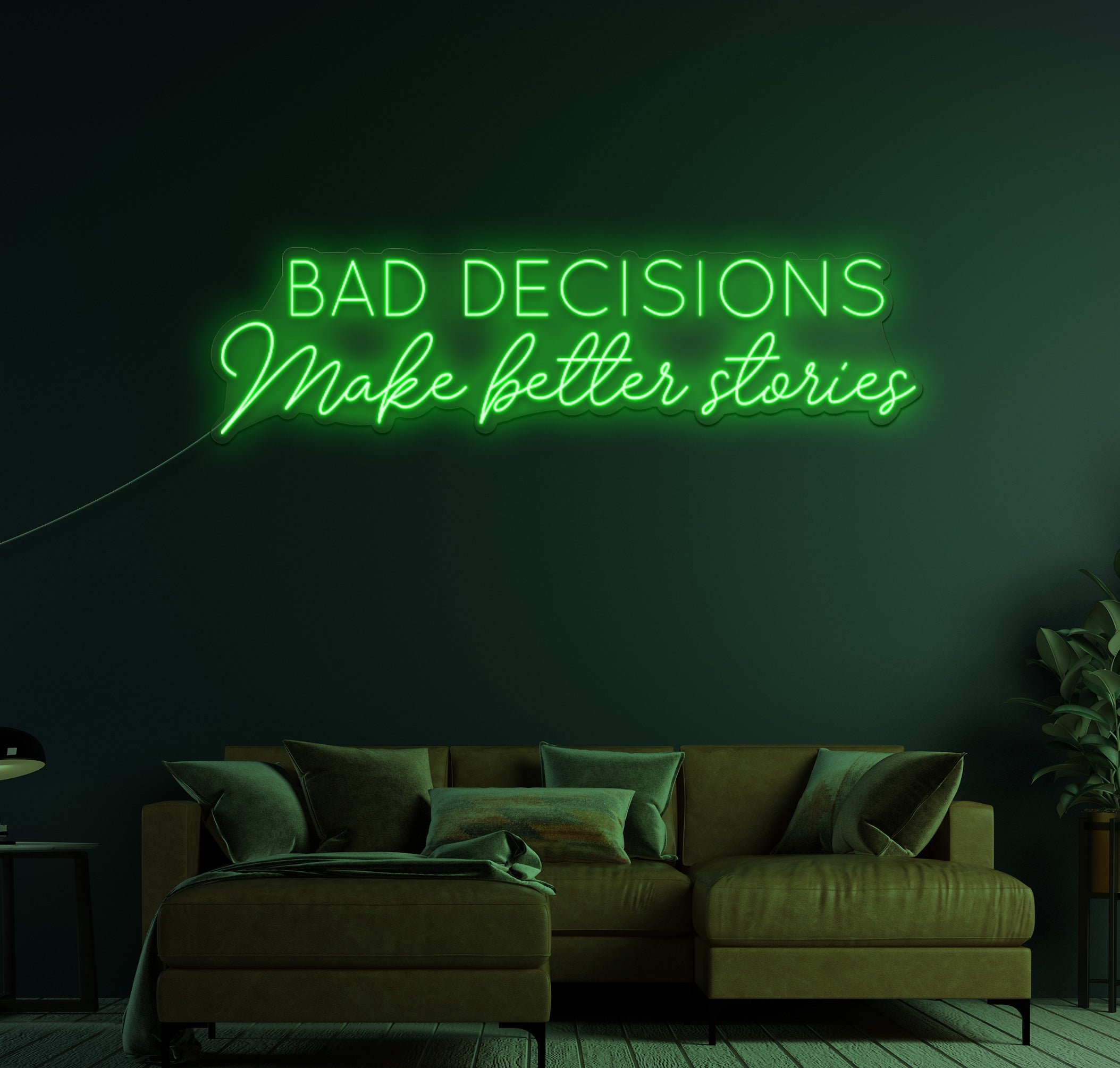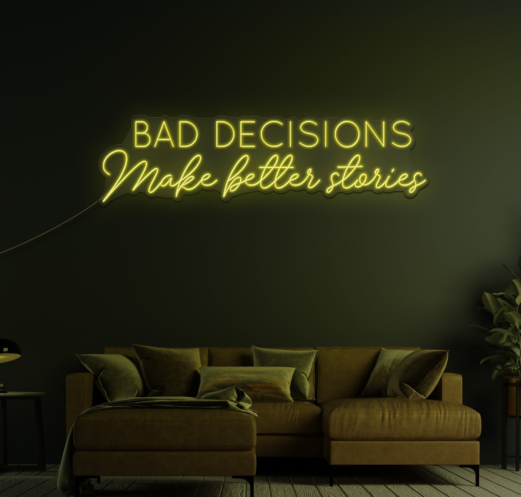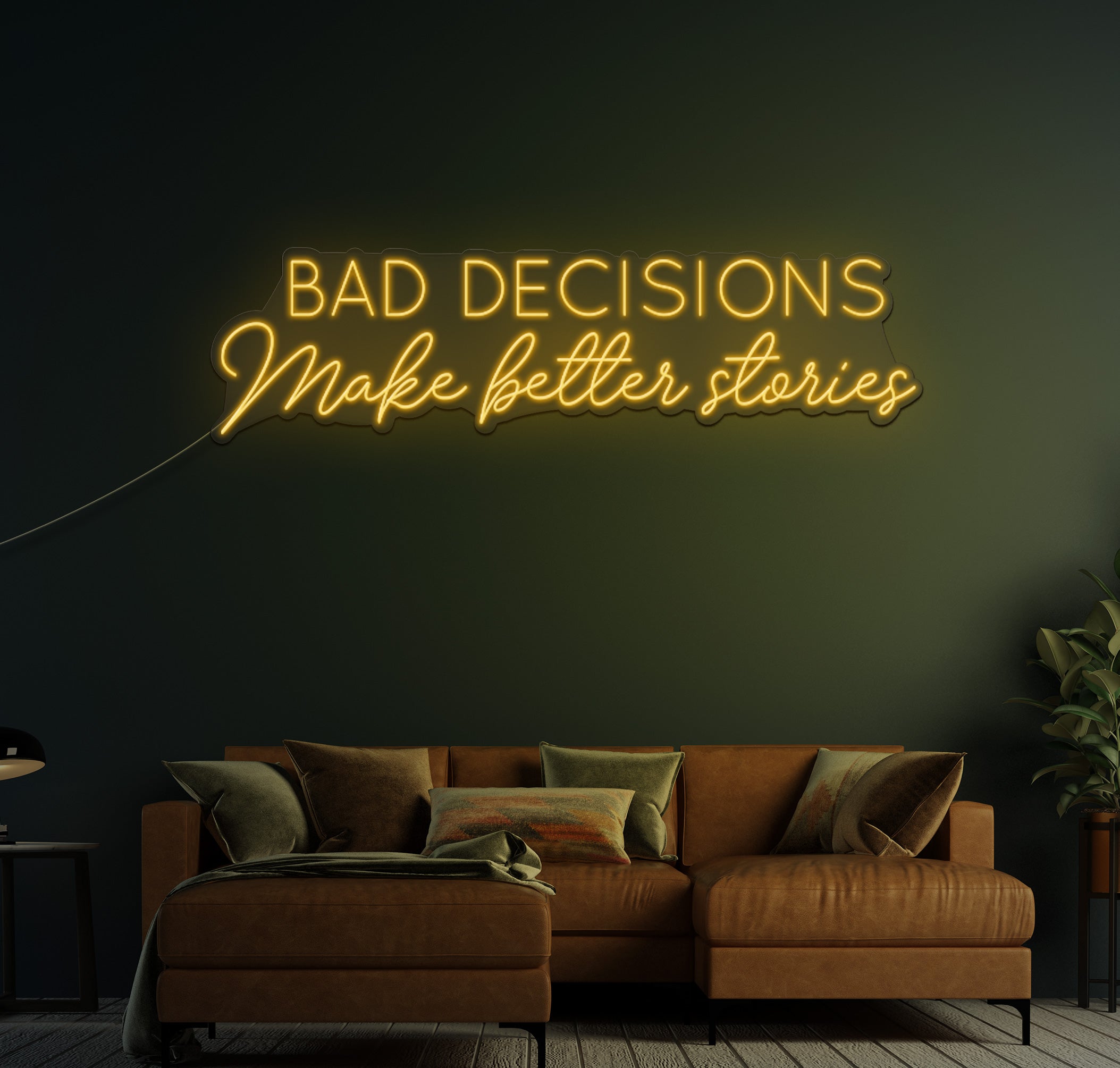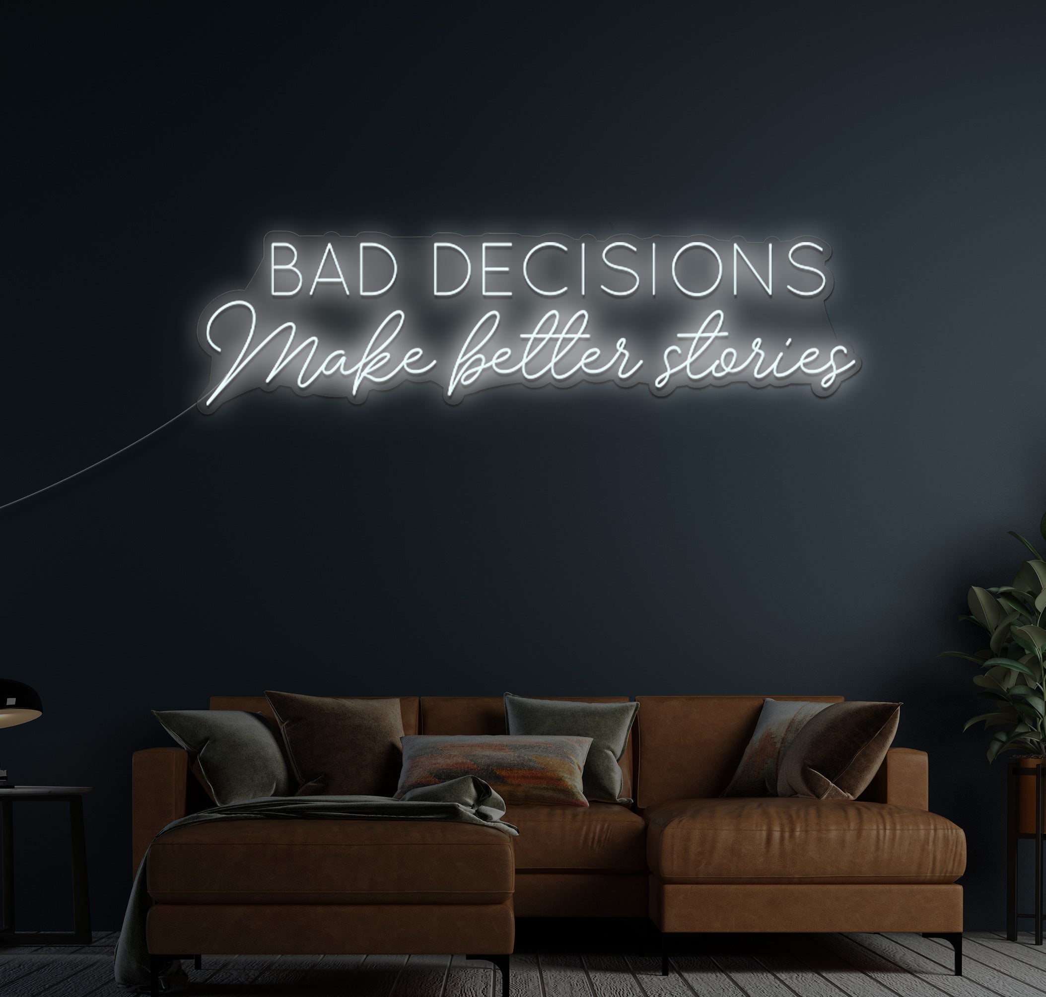 Whether you're celebrating a birthday, wedding, or just a night out with friends, the "Bad Decisions Make Better Stories" LED Neon Sign is sure to add a touch of humour and personality to your event. Get ready to make some unforgettable memories and share some laughs with this playful and stylish sign.