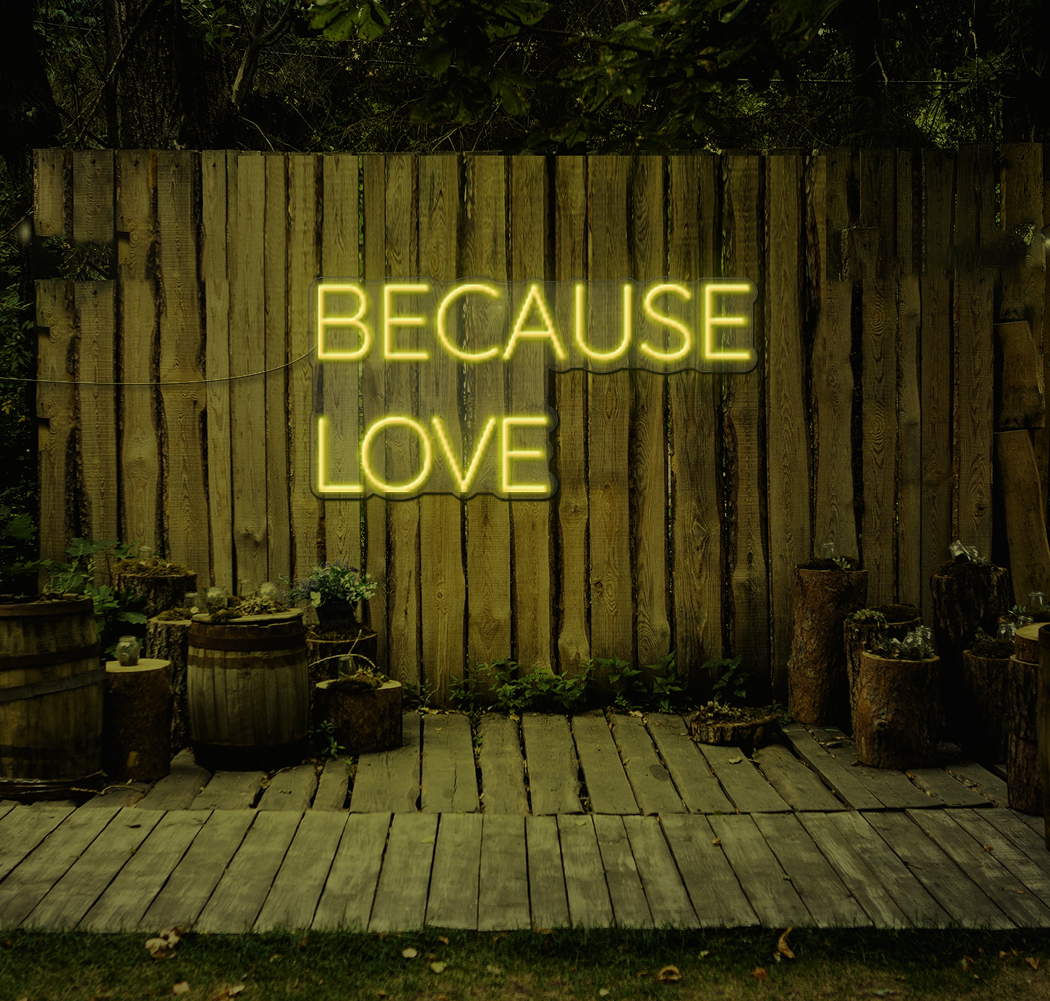 Whether you're exchanging vows, celebrating with loved ones, or simply basking in the beauty of love, "Because Love" LED Neon Sign from The Neon Factory is the perfect choice to illuminate your wedding day with warmth and joy. Order yours today and let the radiant glow of LED neon enhance the magic of your celebration.