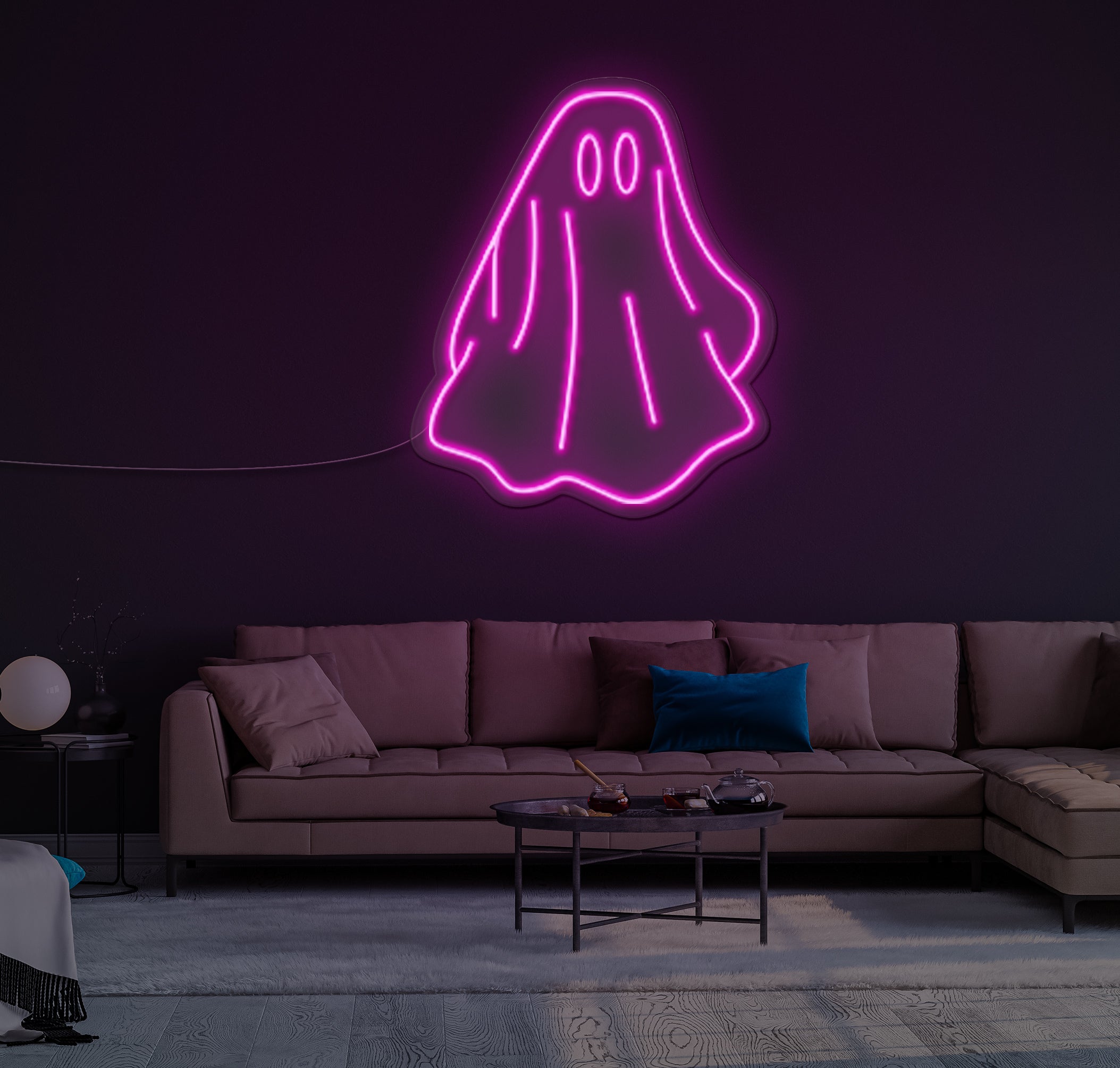 Embrace the ghostly charm of the Bed Sheet Ghost Neon Sign. These custom neon signs are a spooky addition to your Halloween decor. The playful design adds character and uniqueness to your space, making it an ideal choice for seasonal festivities.