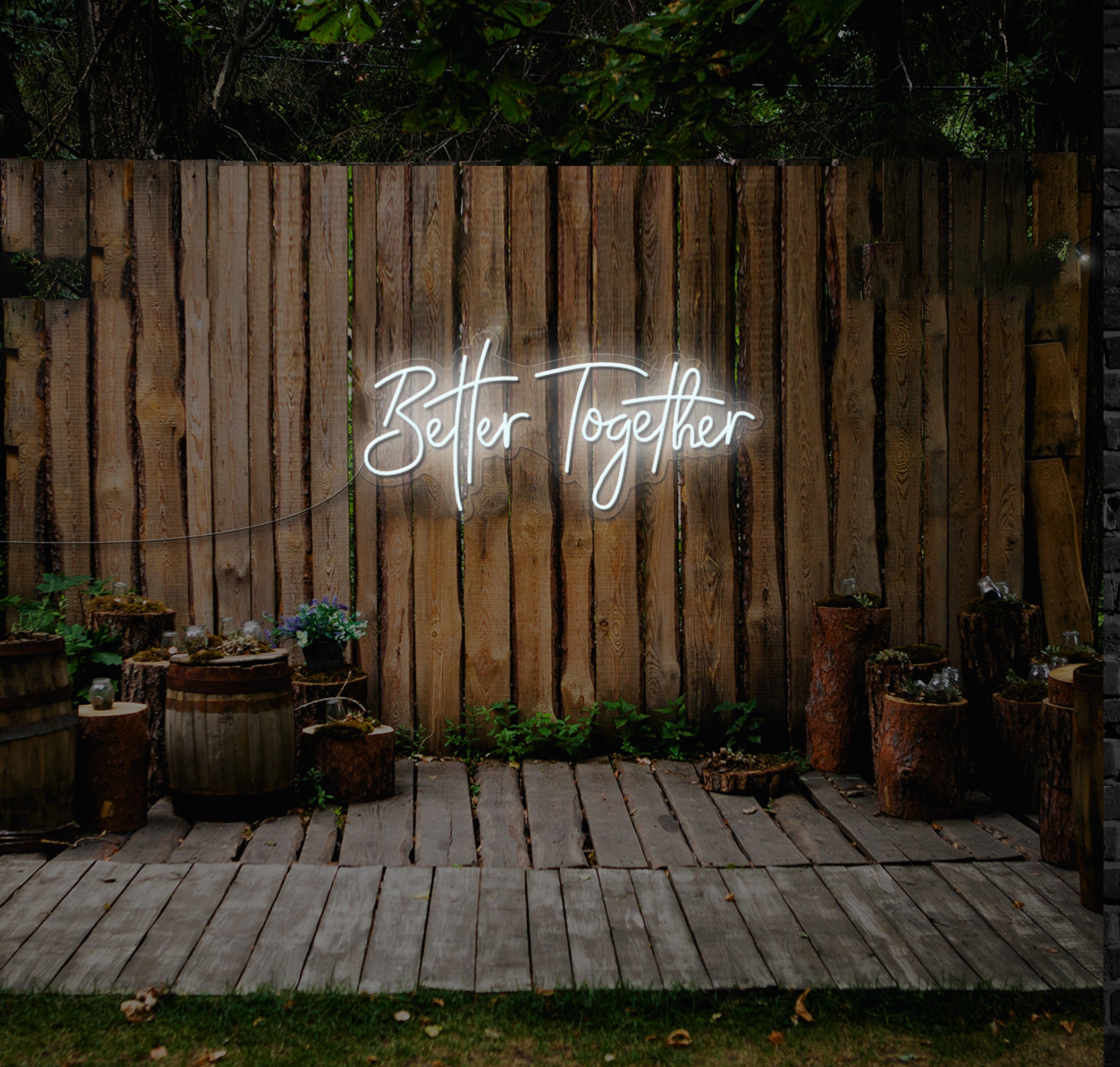 Fully customisable, you can choose your preferred colours and sizes to seamlessly integrate the "Better Together" LED Neon Sign into your wedding theme and style. Whether you're exchanging vows in a traditional church, scenic garden, or contemporary venue, this radiant addition will captivate your guests and create an unforgettable ambiance filled with love and joy.