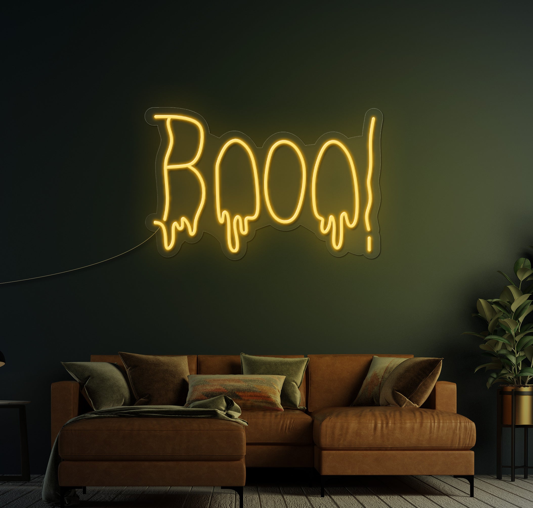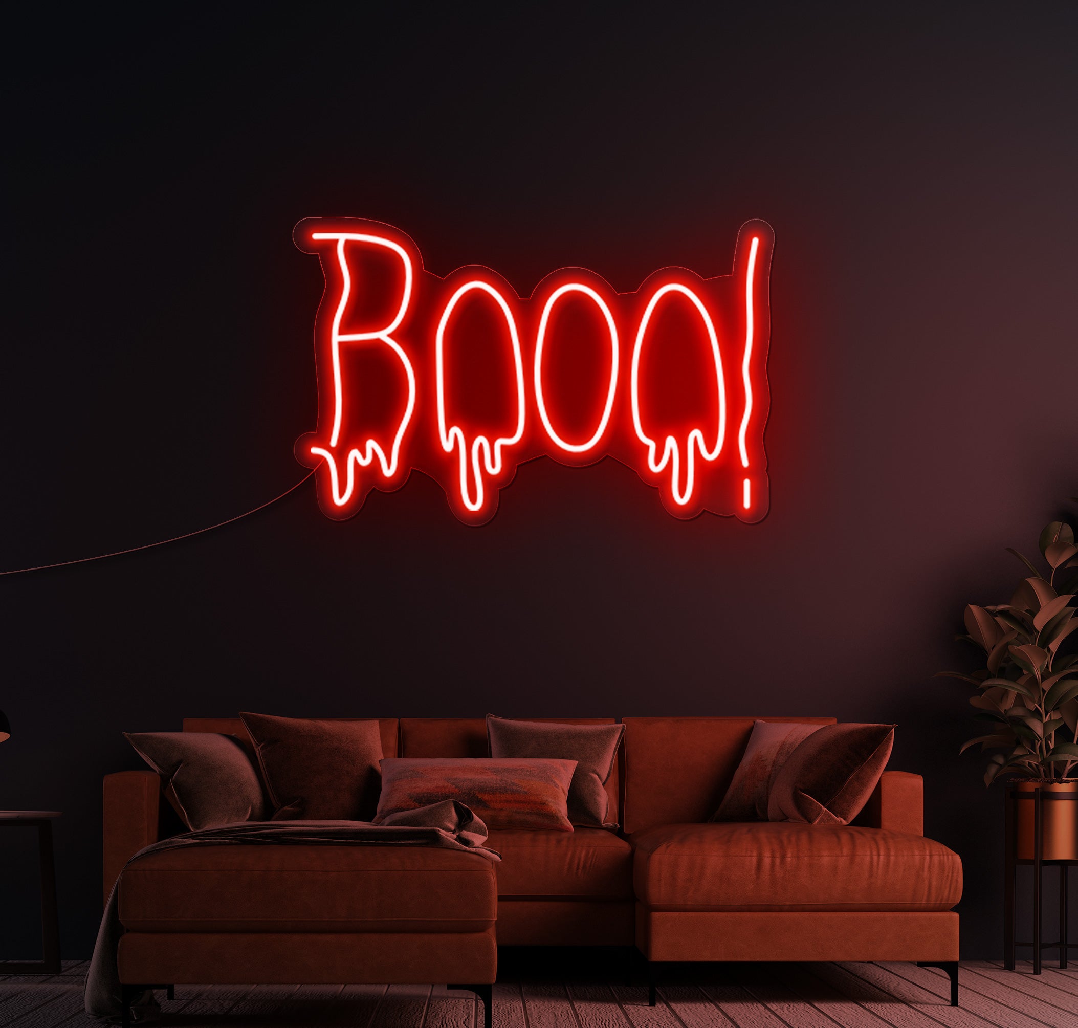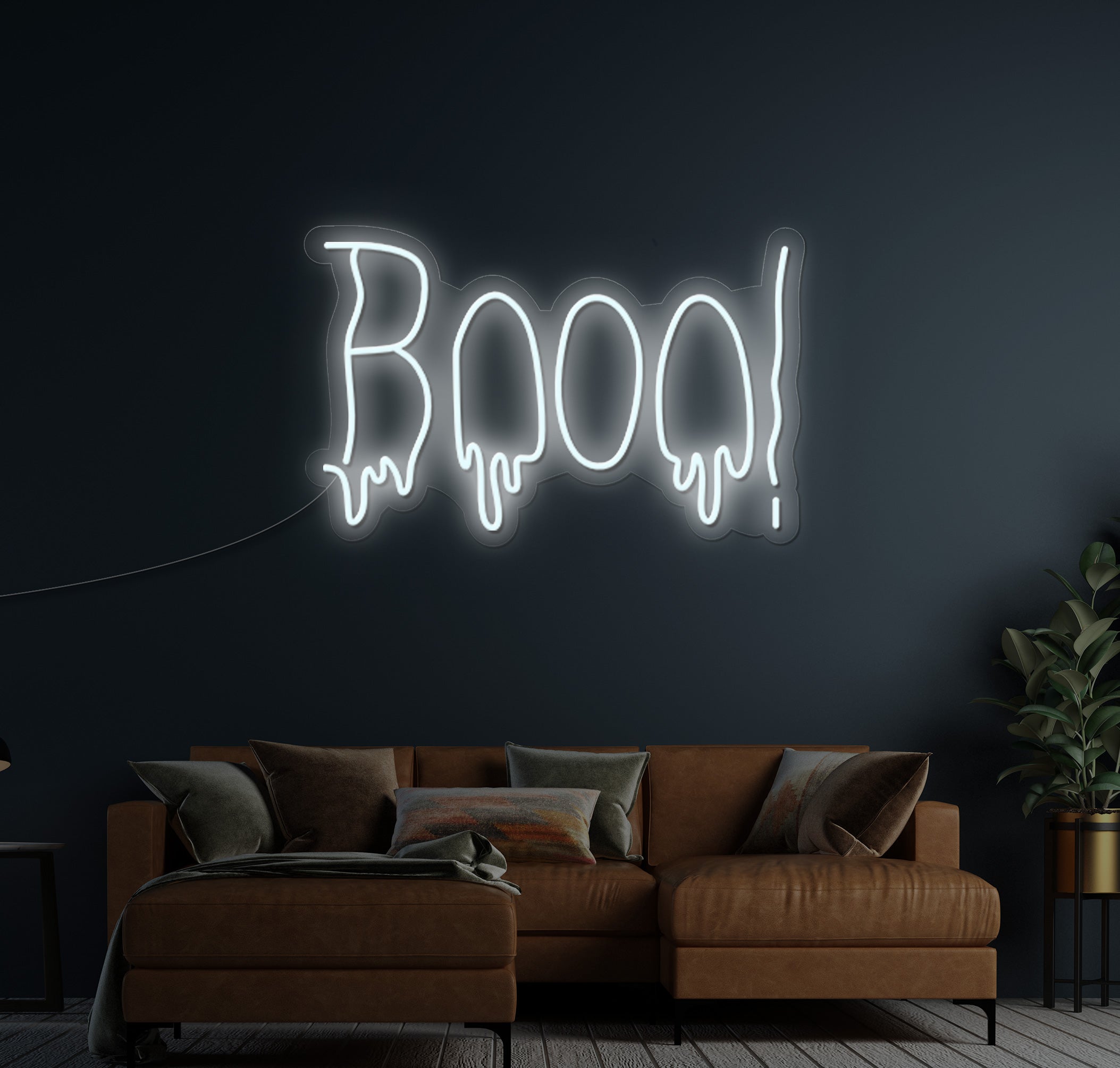 Boo with style using our Booo! Neon Sign. This custom neon sign is a playful and whimsical addition to your Halloween decor. The stacked "Booo!" lettering adds character and charm to your space, making it a standout piece for seasonal festivities. Illuminate the night with the enchanting glow of this neon wall light, creating an atmosphere that is both lighthearted and spooky. The Booo! Neon Sign is a perfect blend of custom design and Halloween spirit, making it a must-have for those who want to add a touch of playfulness.