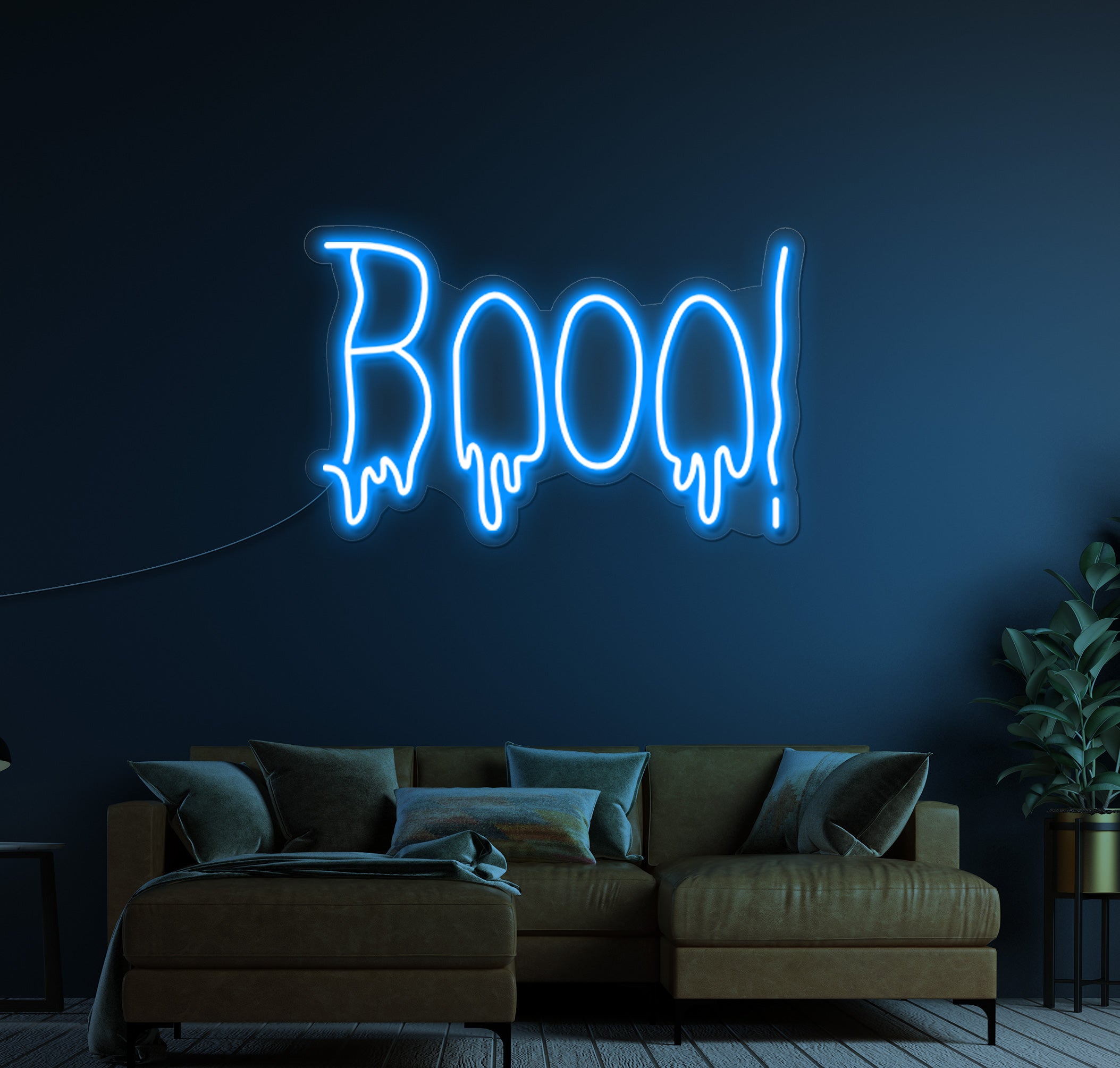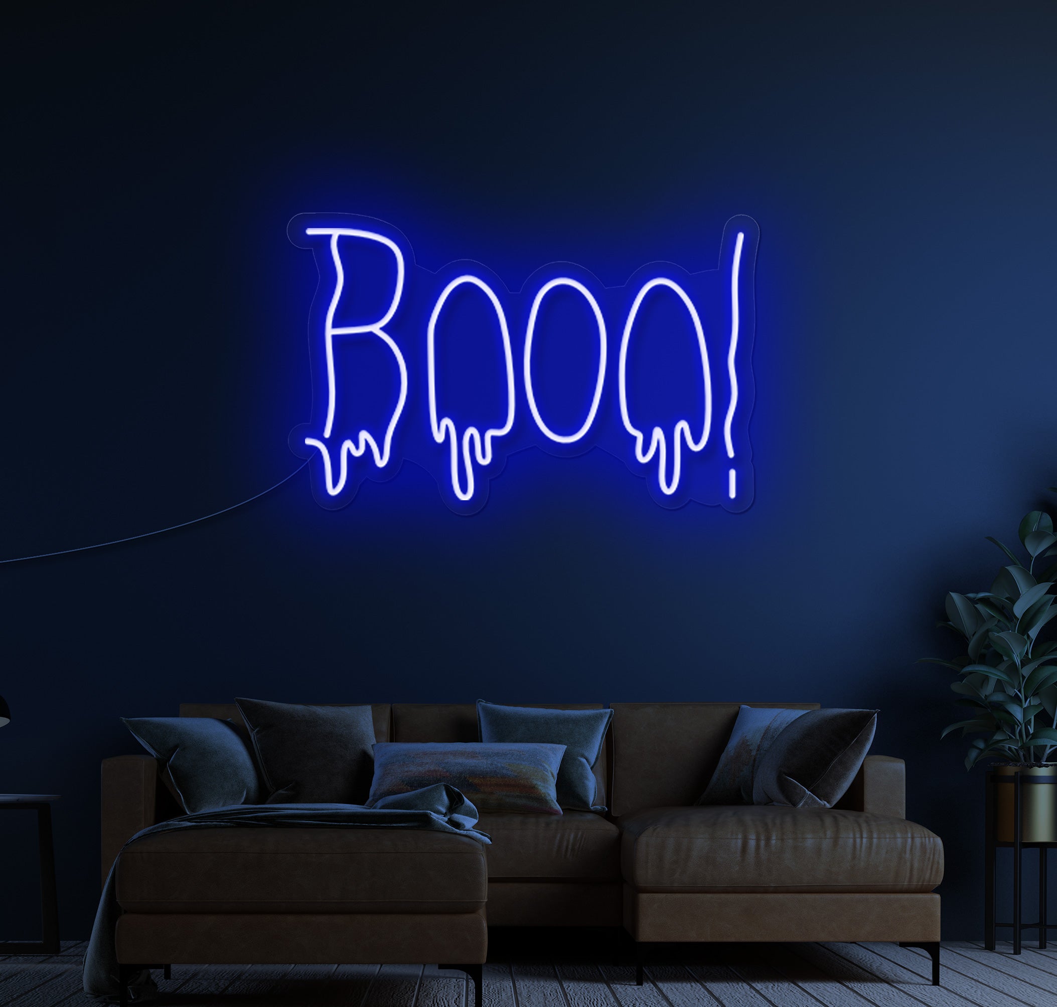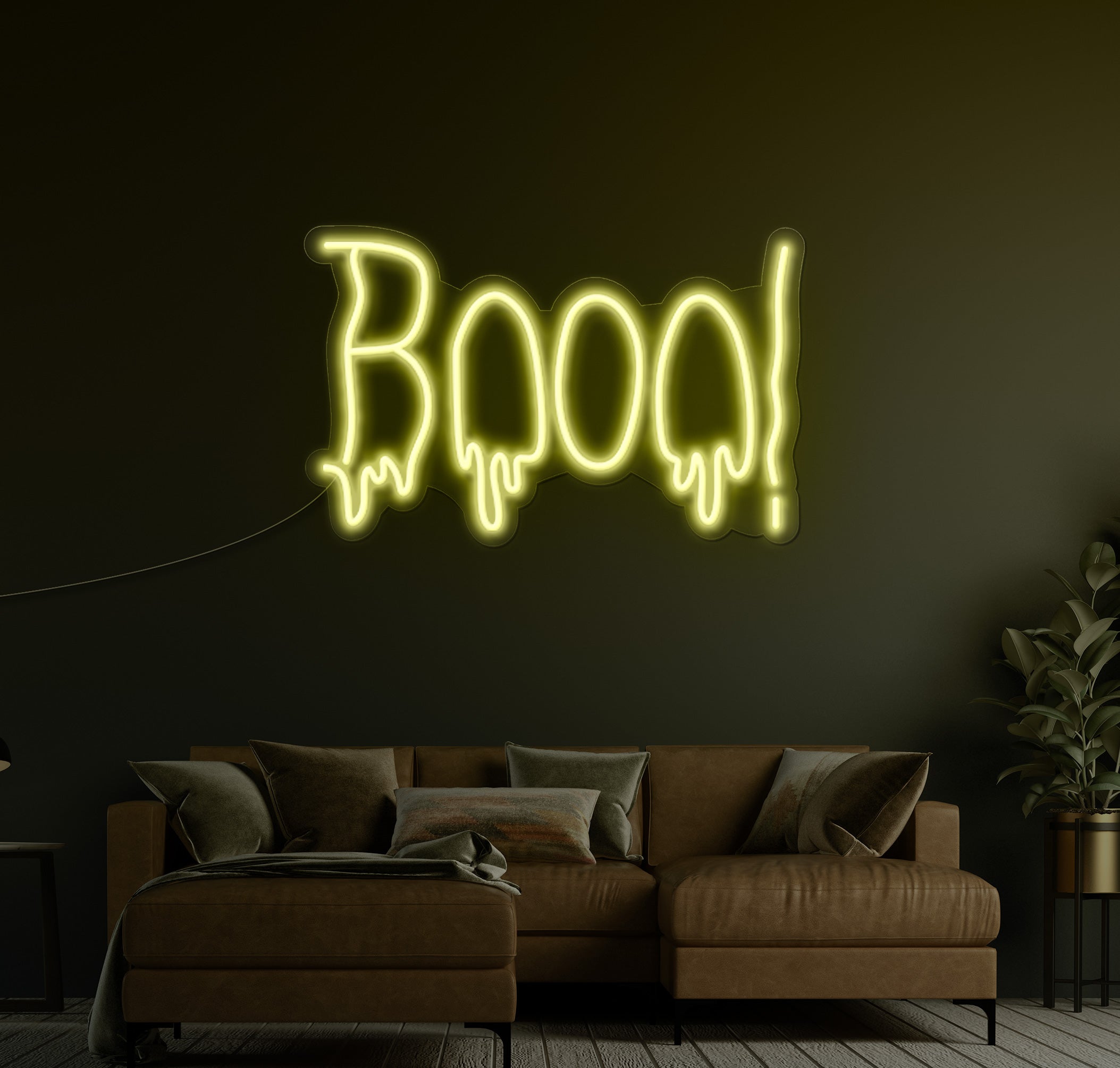 Boo with style using our Booo! Neon Sign. This custom neon sign is a playful and whimsical addition to your Halloween decor. The stacked "Booo!" lettering adds character and charm to your space, making it a standout piece for seasonal festivities. Illuminate the night with the enchanting glow of this neon wall light, creating an atmosphere that is both lighthearted and spooky. The Booo! Neon Sign is a perfect blend of custom design and Halloween spirit, making it a must-have for those who want to add a touch of playfulness.