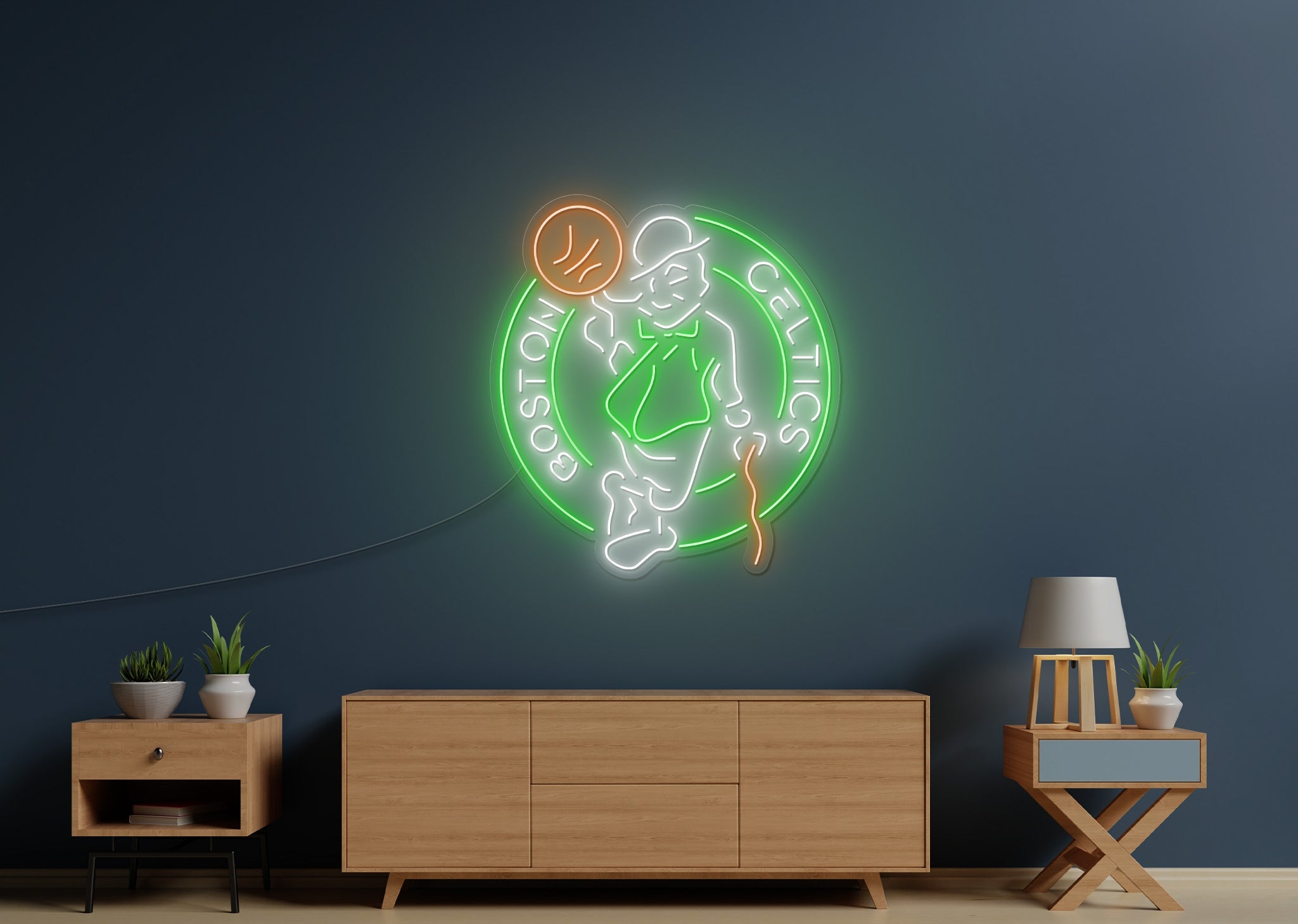 Illuminate your space with the unmistakable charm of the Boston Celtics using the "Boston LED Neon Sign". Featuring the iconic Celtics logo in vibrant LED lighting, this sign is a must-have for any passionate basketball fan. Crafted with durable materials and energy-efficient LED technology, it ensures long-lasting brightness and efficiency.