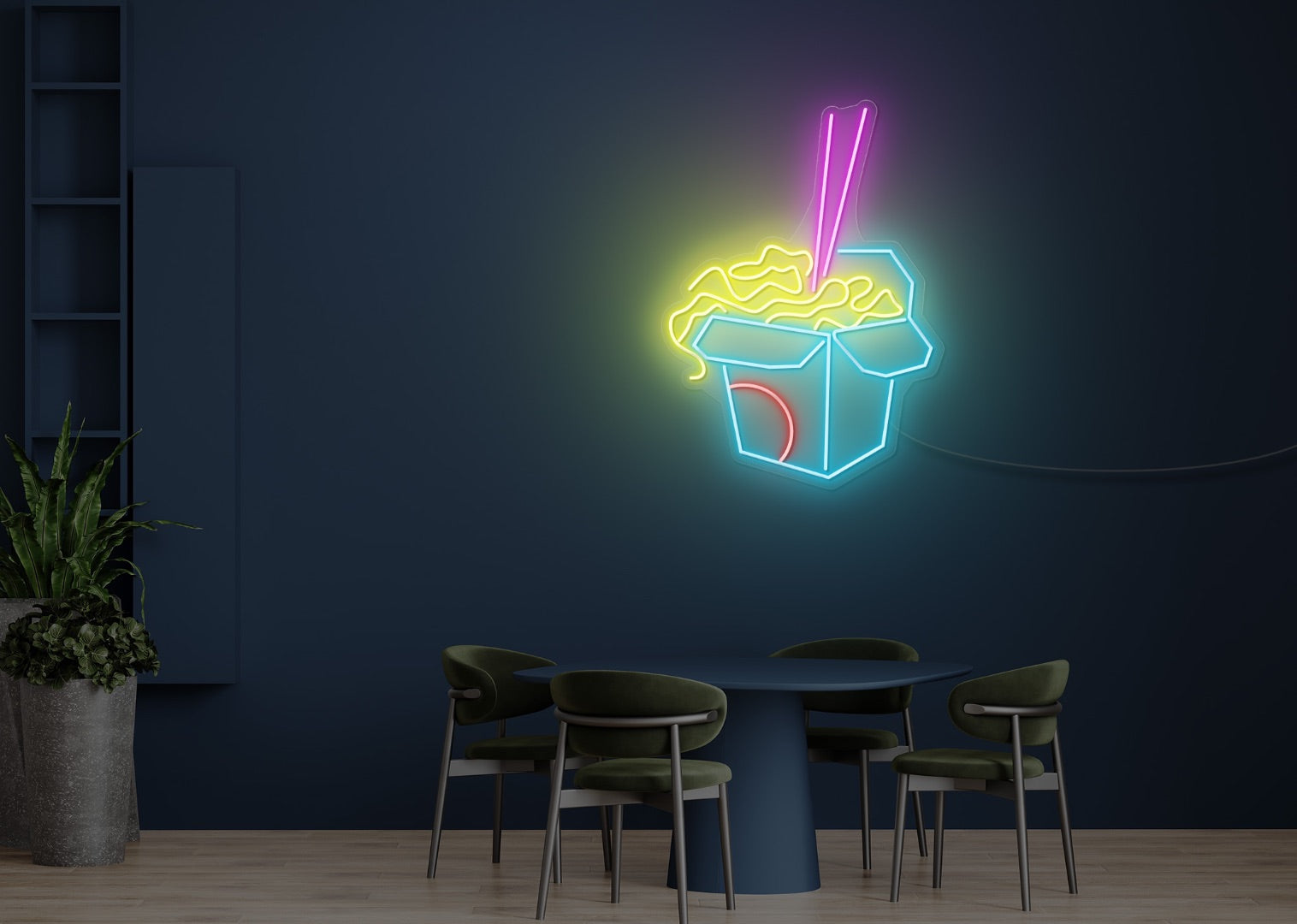 Illuminate your food business with the enticing glow of our "Box of Noodles" LED neon sign and watch as it becomes a focal point for hungry patrons passing by. Transform your establishment into a must-visit destination for noodle lovers with this striking and stylish neon signage.