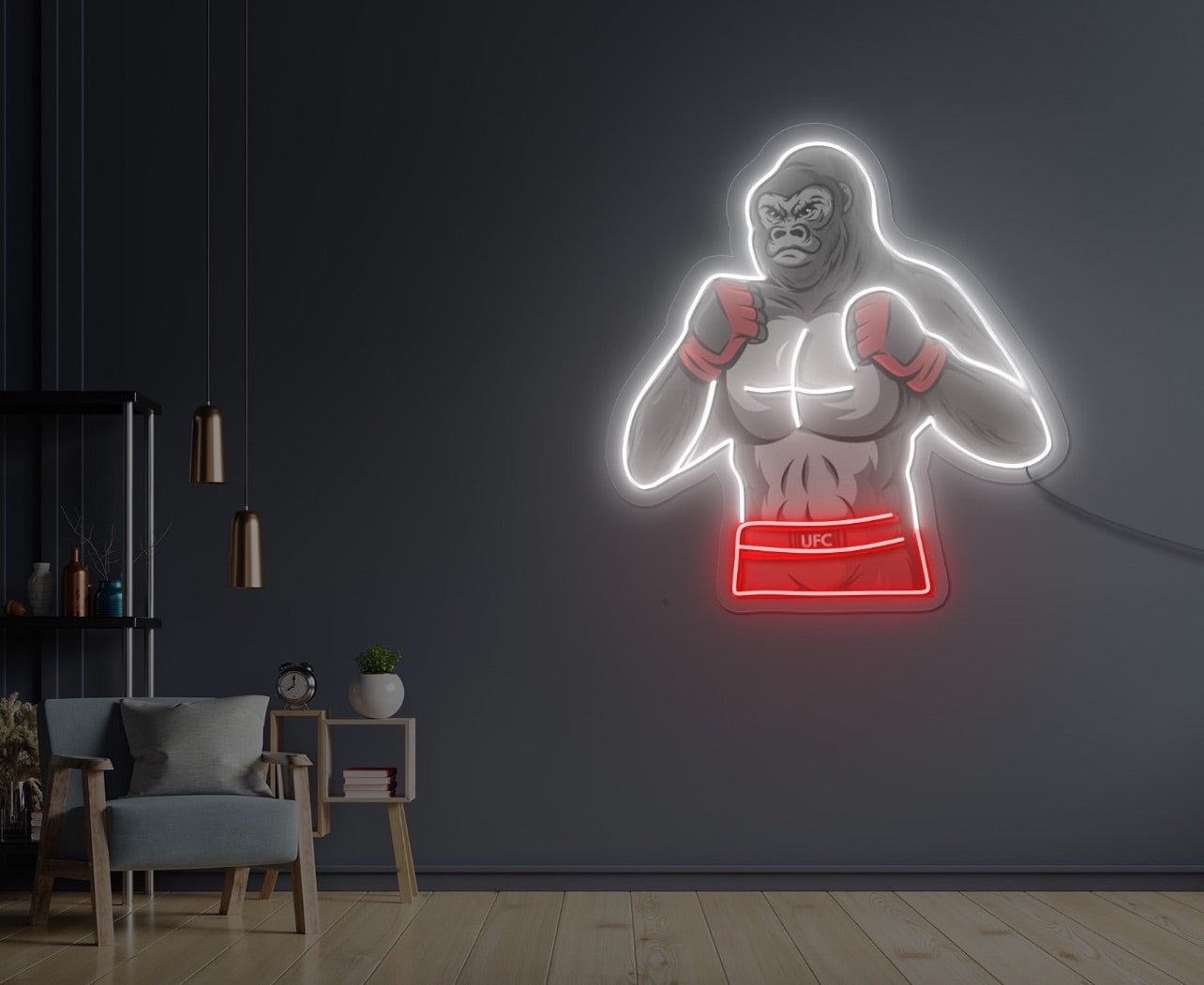 Perfect for adding a touch of personality and character to any space, our "Boxing Gorilla" neon sign is sure to become the focal point of any room. Whether you're a sports enthusiast, a fan of wildlife, or simply appreciate unique and unconventional art, this sign is sure to make a statement.
