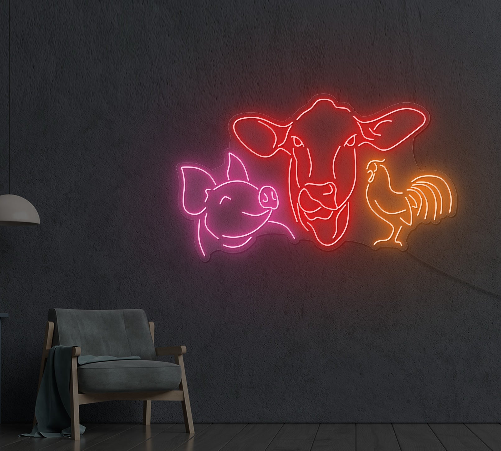 Bring the rustic allure of farm life into your home or business with our "Farm Animals LED Neon Sign" and let its warm glow and whimsical design create a welcoming atmosphere that captures the essence of the countryside.