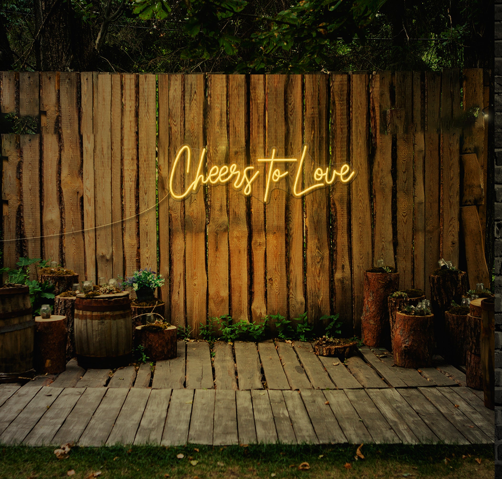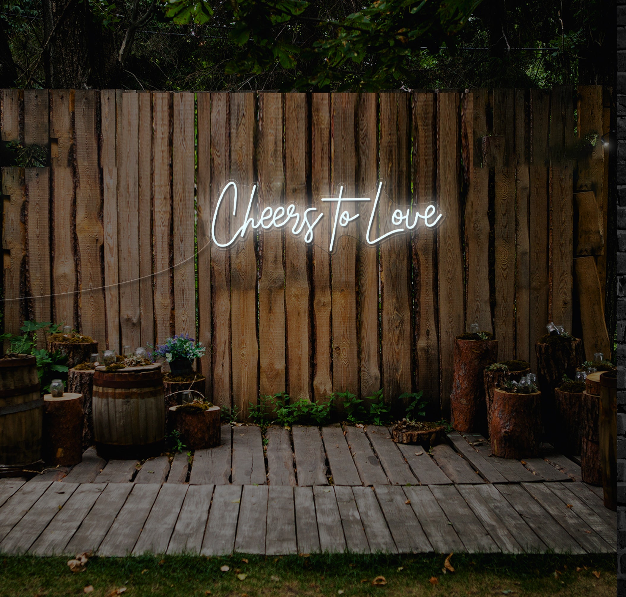 Fully customisable, you can choose your preferred colours and sizes to seamlessly integrate the "Cheers To Love" LED Neon Sign into your wedding decor. Whether you're celebrating in a grand ballroom, intimate garden, or beachside venue, this radiant addition adds a touch of glamour and romance to any setting.