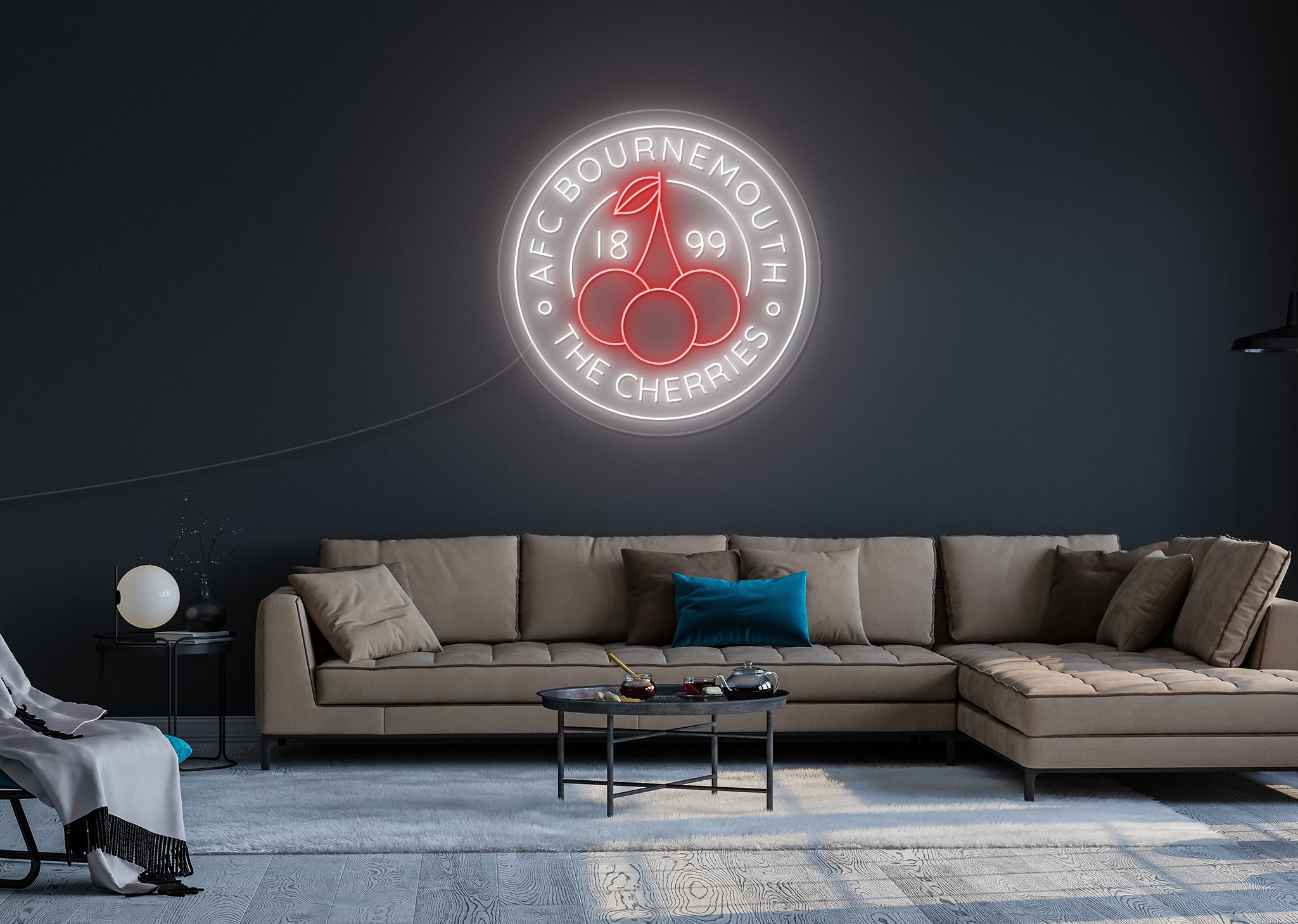 With its bold design and bright glow, this neon sign is sure to capture the attention of fellow fans and visitors alike. Let your love for the Cherries shine bright with this unique and stylish addition to your football collection.