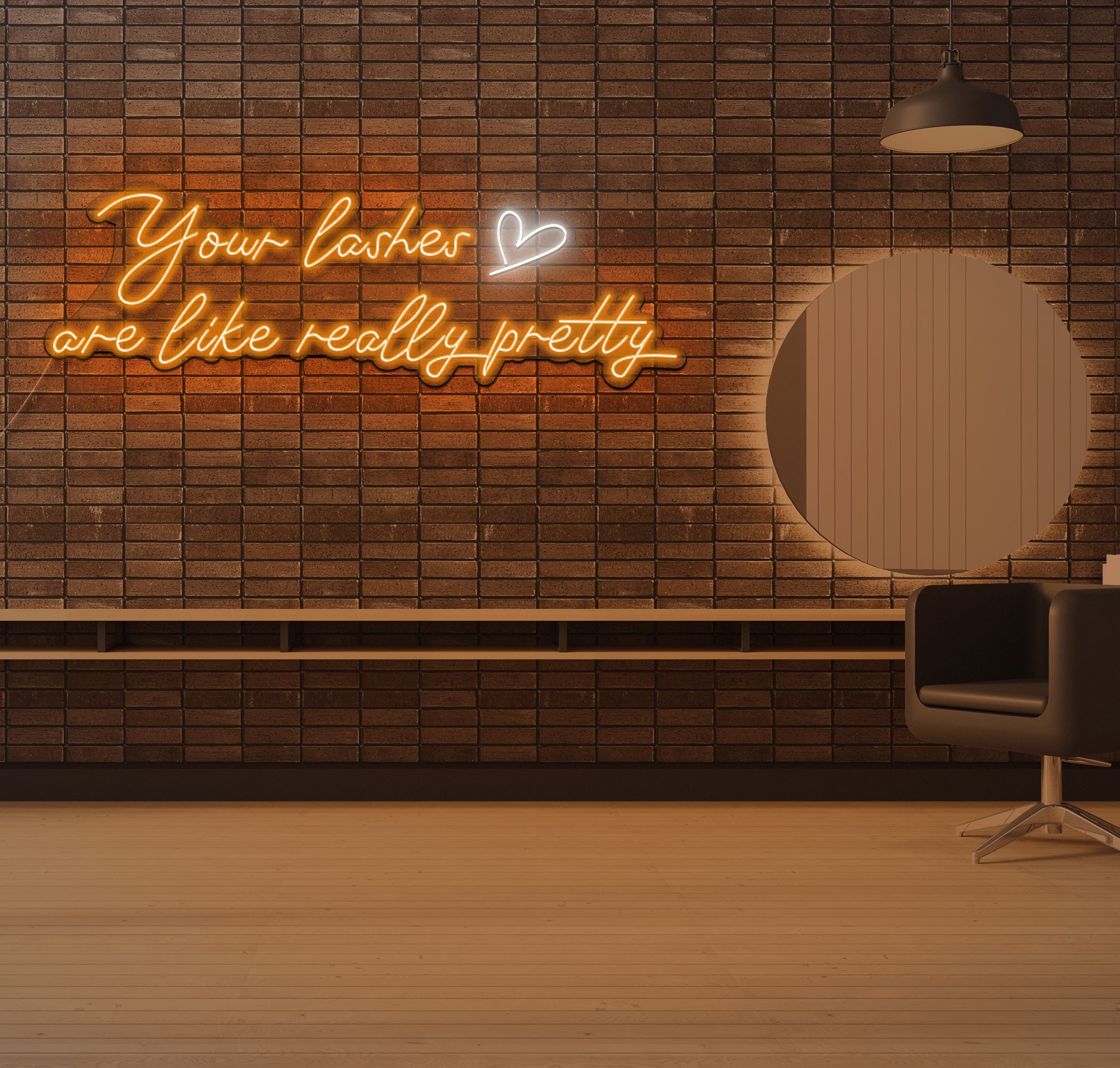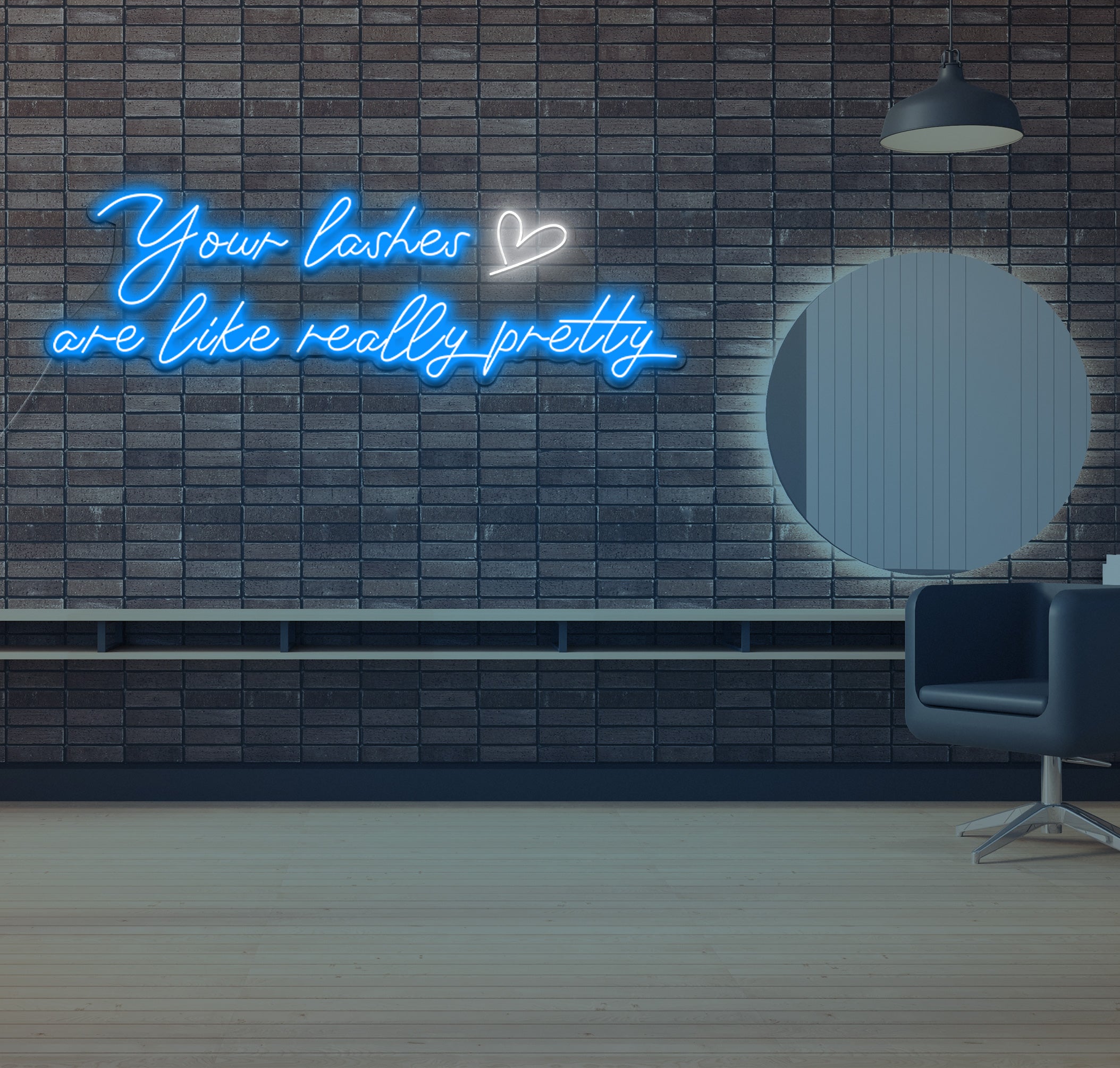 Whether you're a lash studio owner looking to inspire your clients or a beauty enthusiast seeking to spread positivity at home, the "Your Lashes Are Really Pretty" Custom LED Neon Sign from The Neon Factory is the perfect choice. Order yours today and let the radiant glow of LED neon highlight the beauty of your lashes.