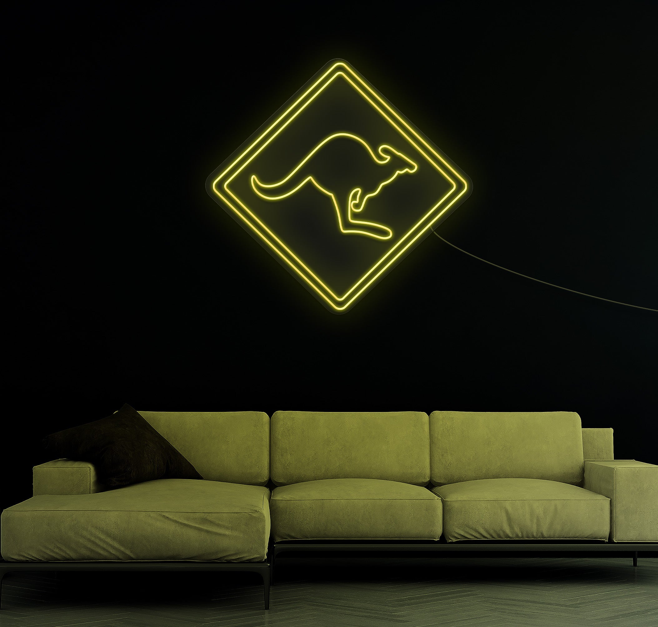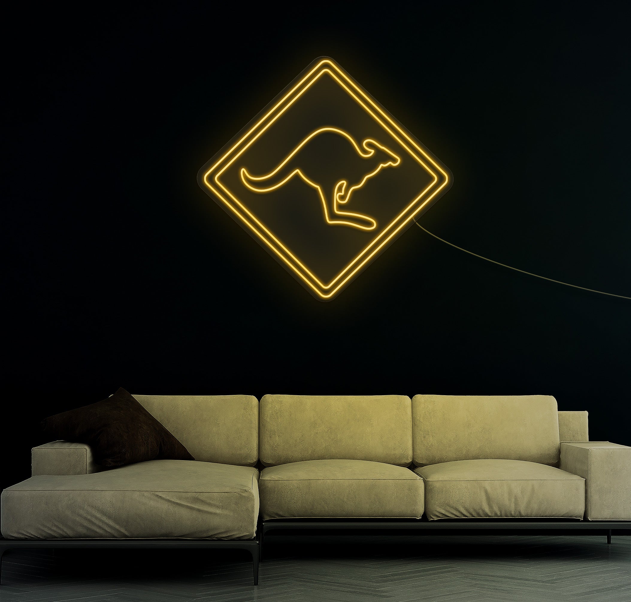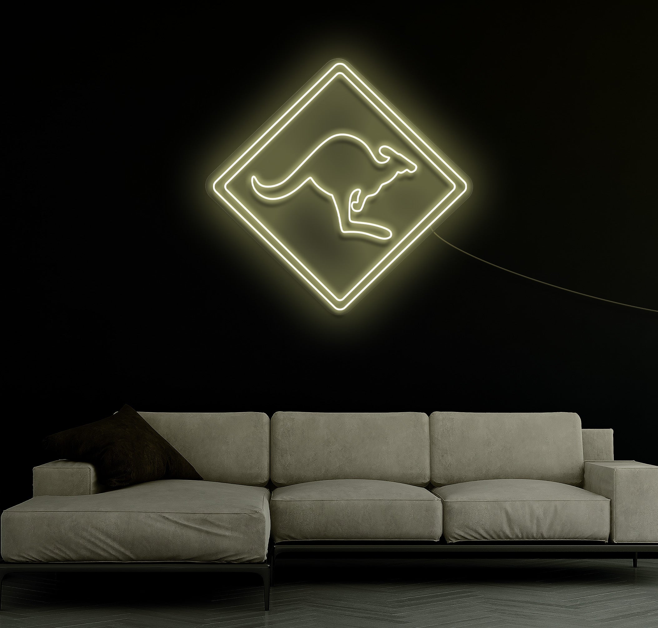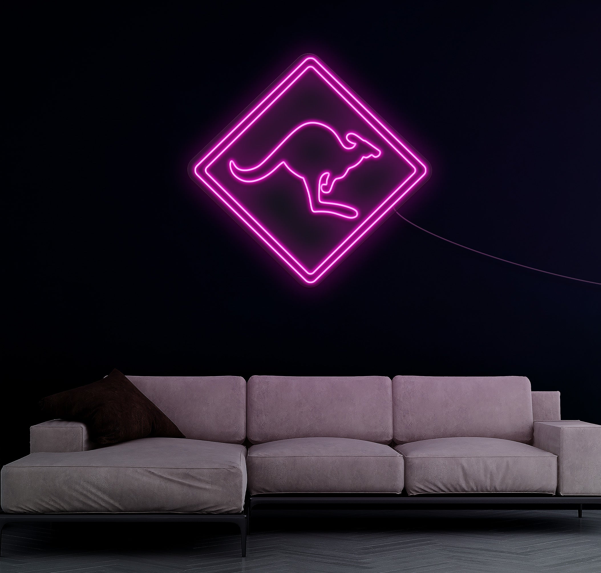 Crafted with high-quality LED lights, this neon sign emits a bright, vibrant glow that enhances the ambiance of any setting. Its playful design is not only a fun decorative element but also a nod to the unpredictable nature of kangaroos, making it a great piece for animal lovers and those with a quirky sense of humour.