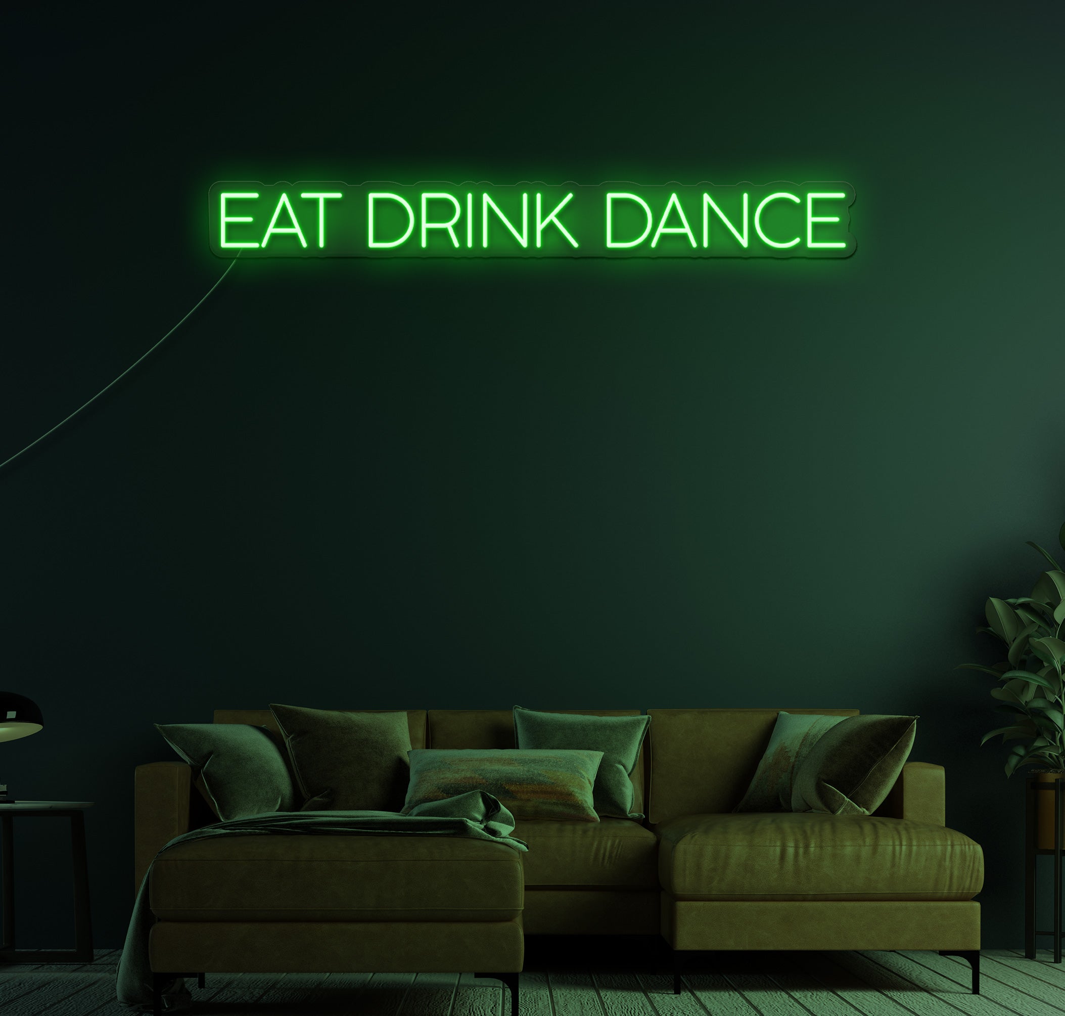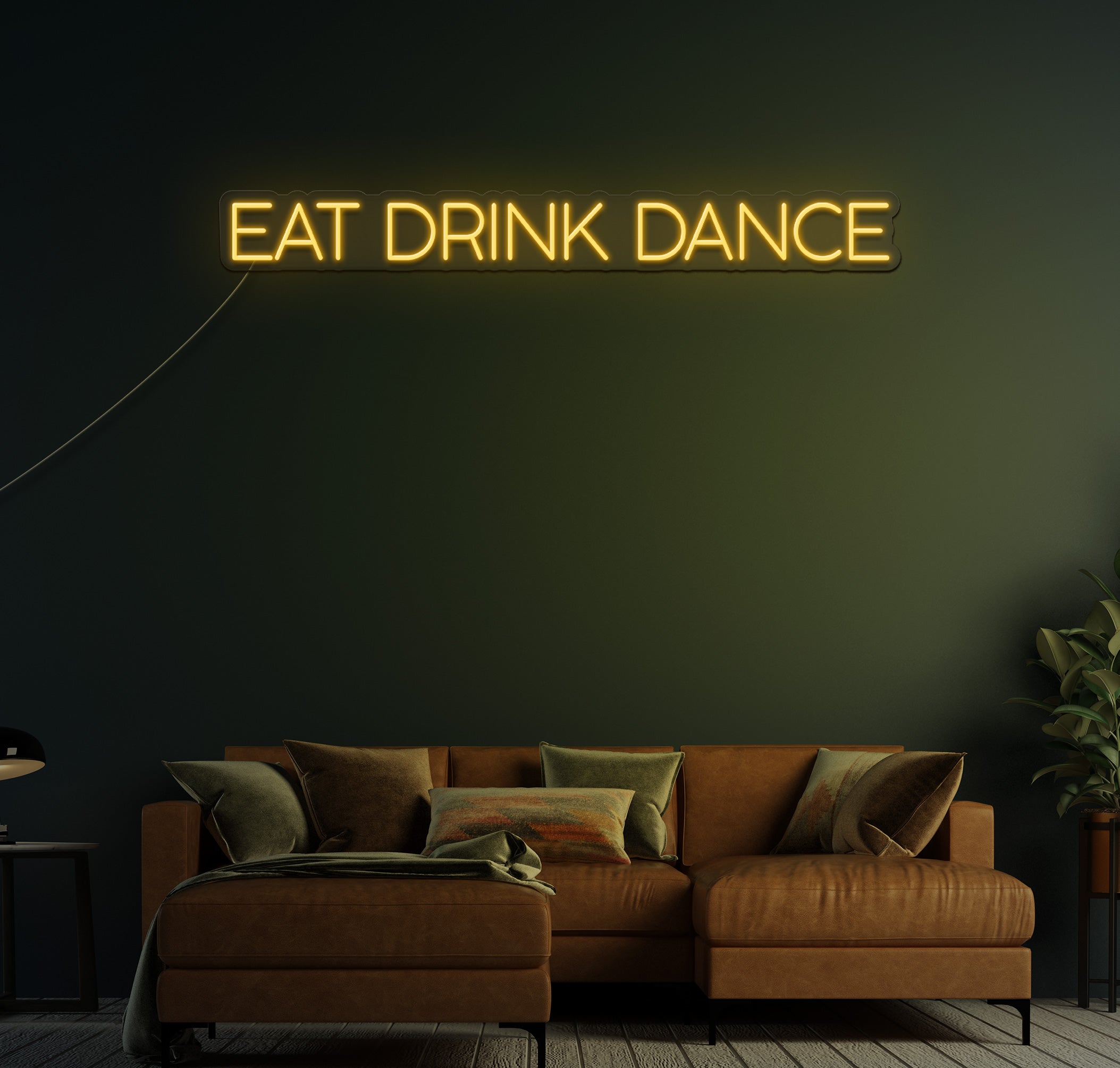 Illuminate your space with vibrant energy and joy with our "Eat Drink Dance" LED Neon Sign. Perfect for creating a lively atmosphere, this neon sign is an ideal addition to bars, restaurants, kitchens, dining rooms, and dance studios. Crafted with top-quality LED technology, it provides bright, energy-efficient lighting that enhances any setting with a fun, festive vibe.