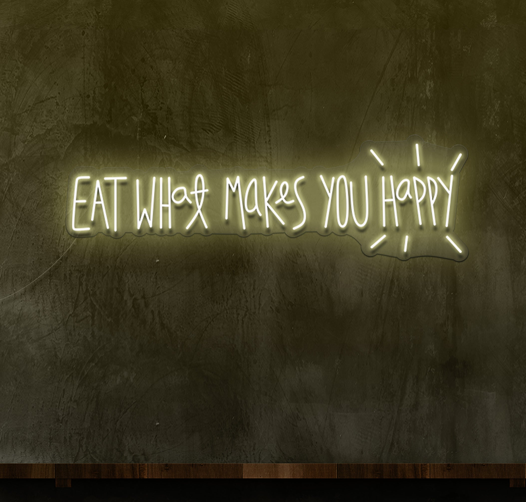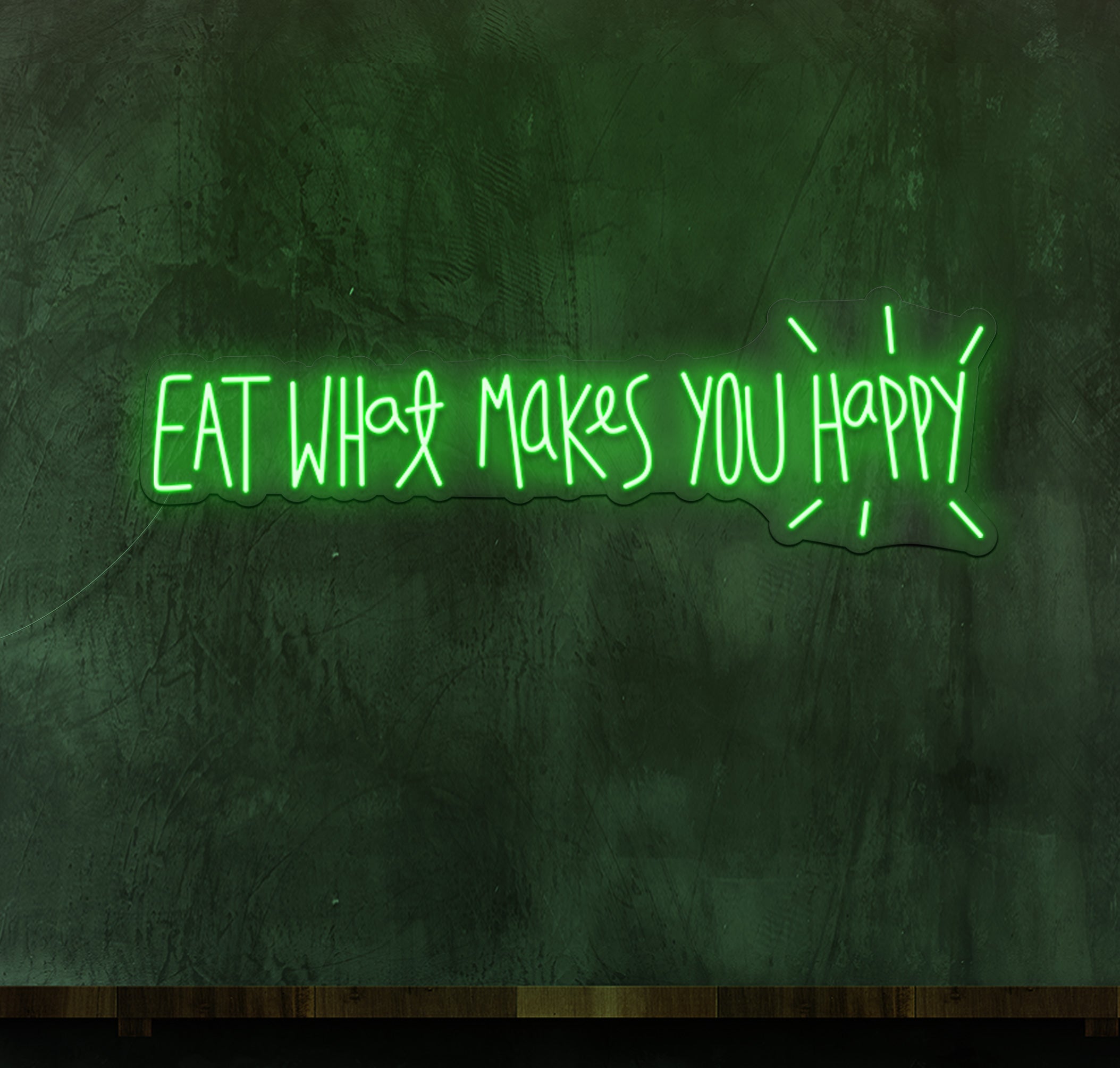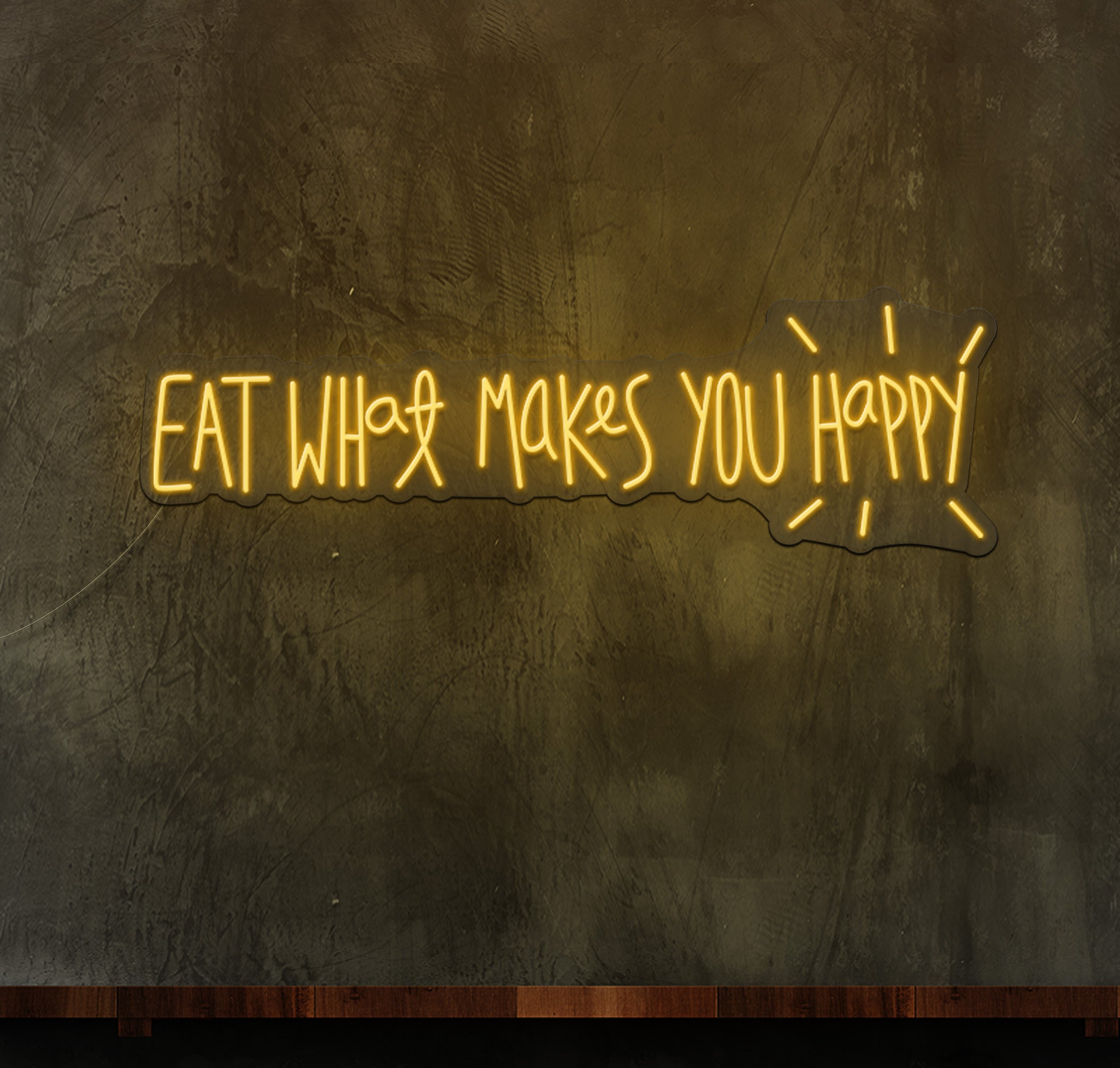 Brighten up your space and celebrate the joy of indulgence with the "Eat What Makes You Happy" LED Neon Sign. This vibrant and whimsical sign is a delightful addition to any kitchen, dining area, or food lover's space.