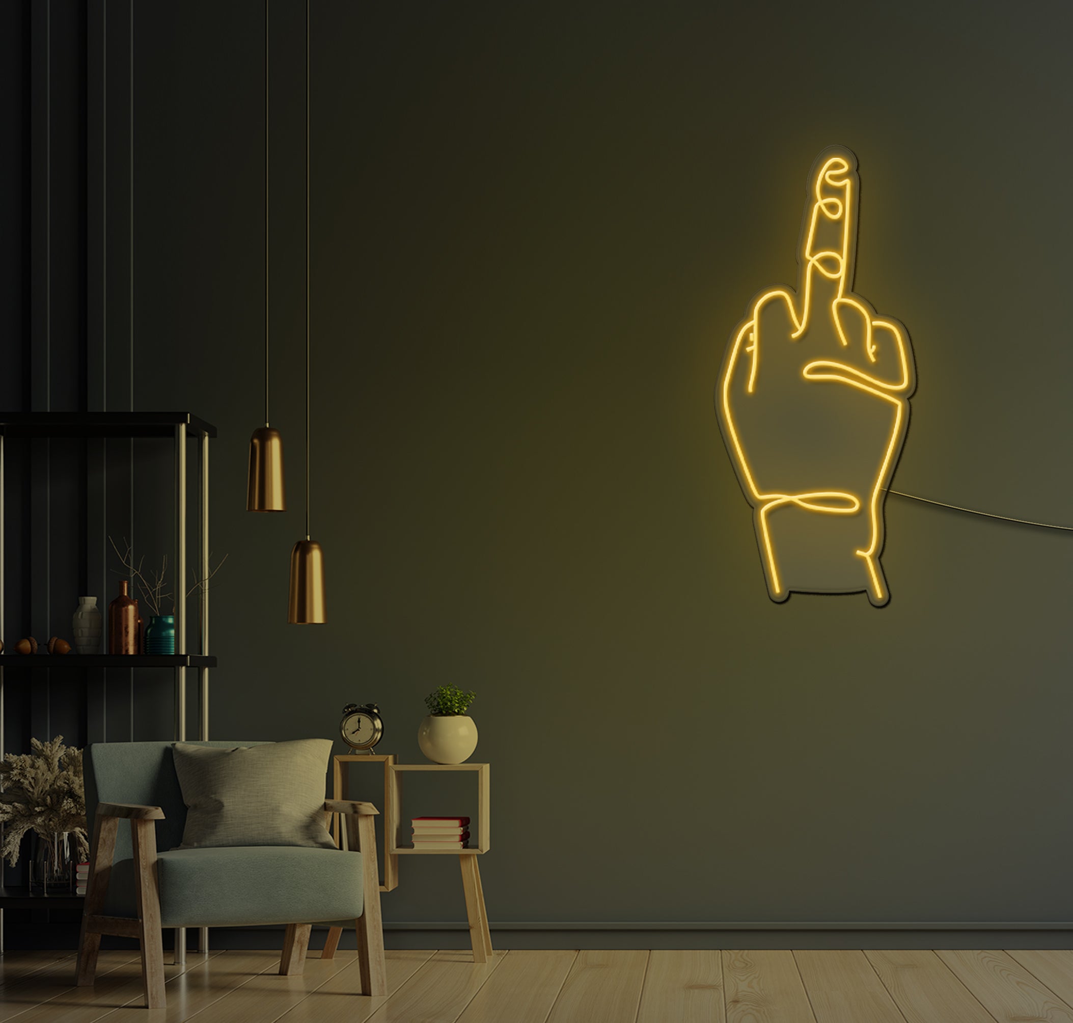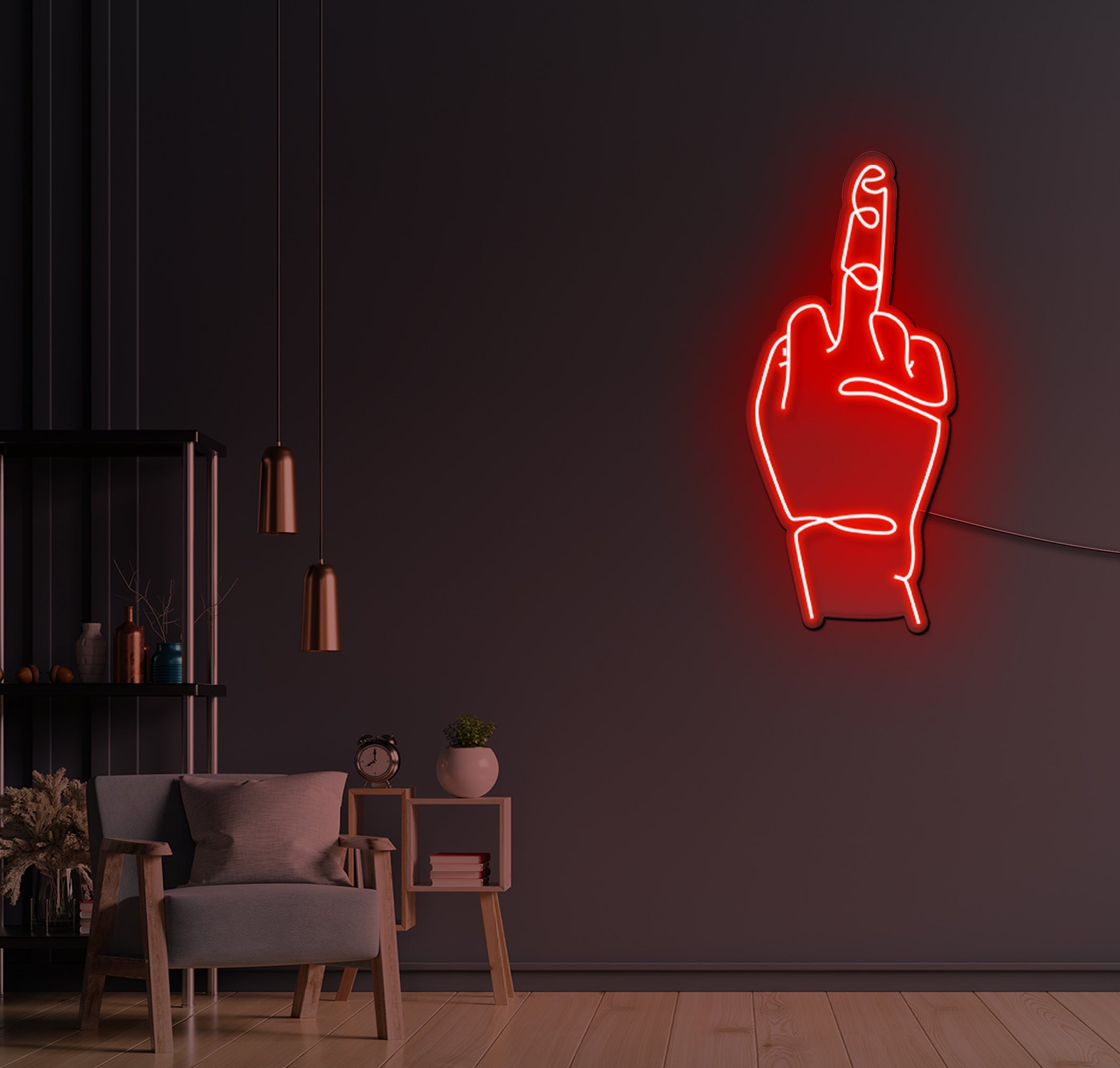 Add a bold statement to your space with the "Middle Finger" LED Neon Sign. This striking LED sign is designed to be an attention-grabbing piece that expresses attitude and humour, making it ideal for those who aren't afraid to show their rebellious side. Perfect for game rooms, bars, or any space needing a dose of edge, the "Middle Finger" LED Neon Sign brings a playful and provocative vibe.