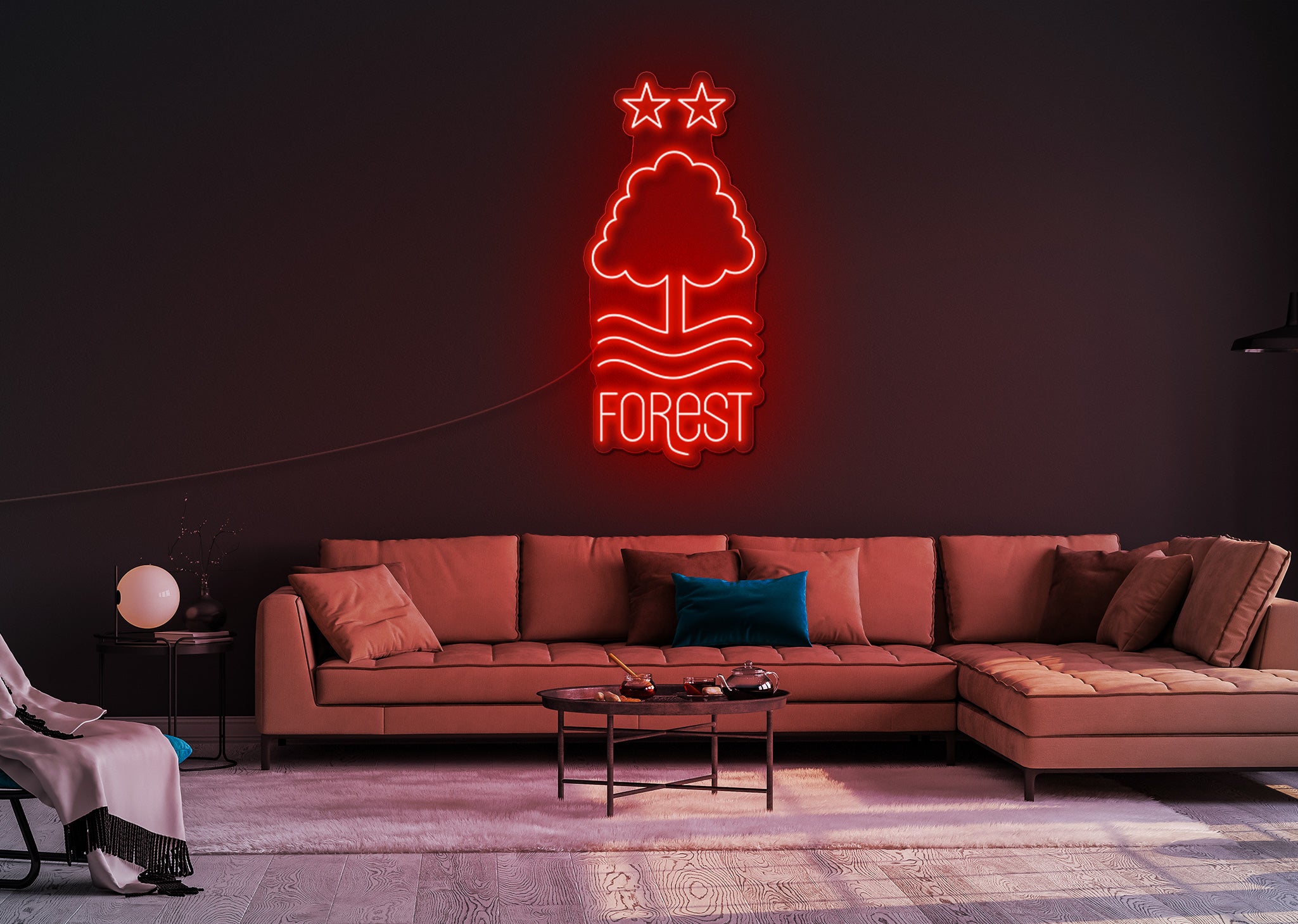 Whether you're watching games with friends or enjoying a quiet night in, the "Forest LED Neon Sign" will impress with its vibrant glow and unmistakable team pride. Bring the passion of the City Ground to life and let your love for Forest shine bright for all to see.