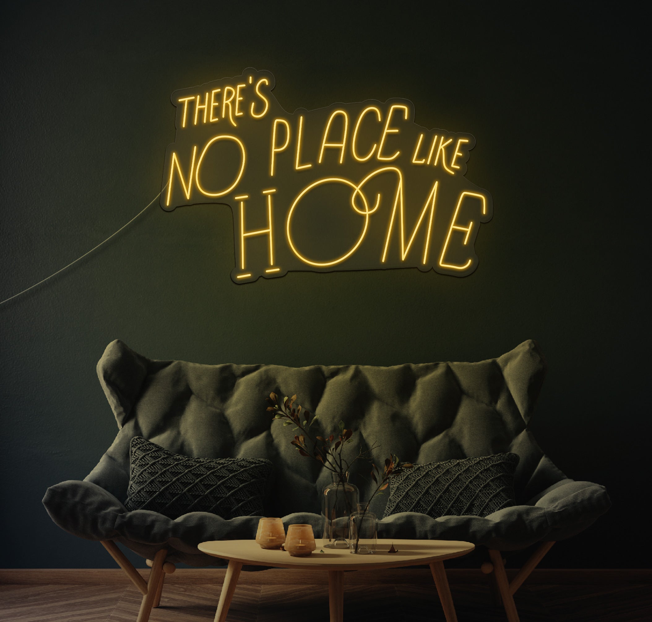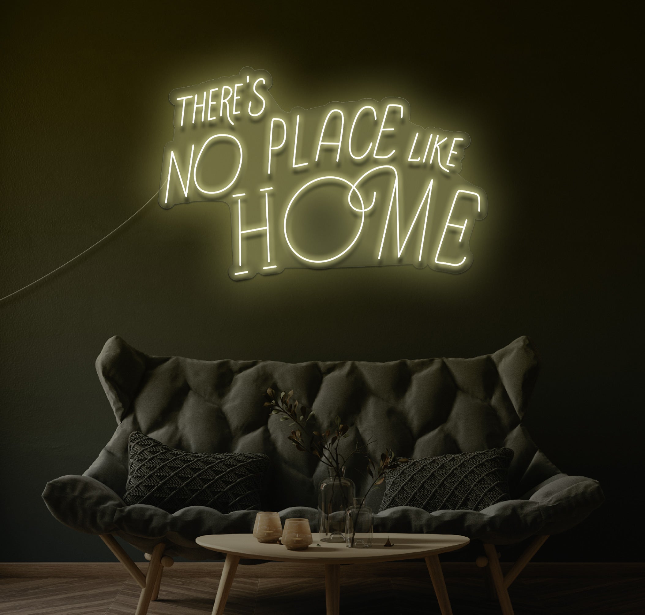 Featuring the phrase "No Place Like Home" in a funky and contemporary font, this LED neon sign adds a modern twist to a classic sentiment. The vibrant colours and sleek design make it a standout piece of decor that complements any interior style.