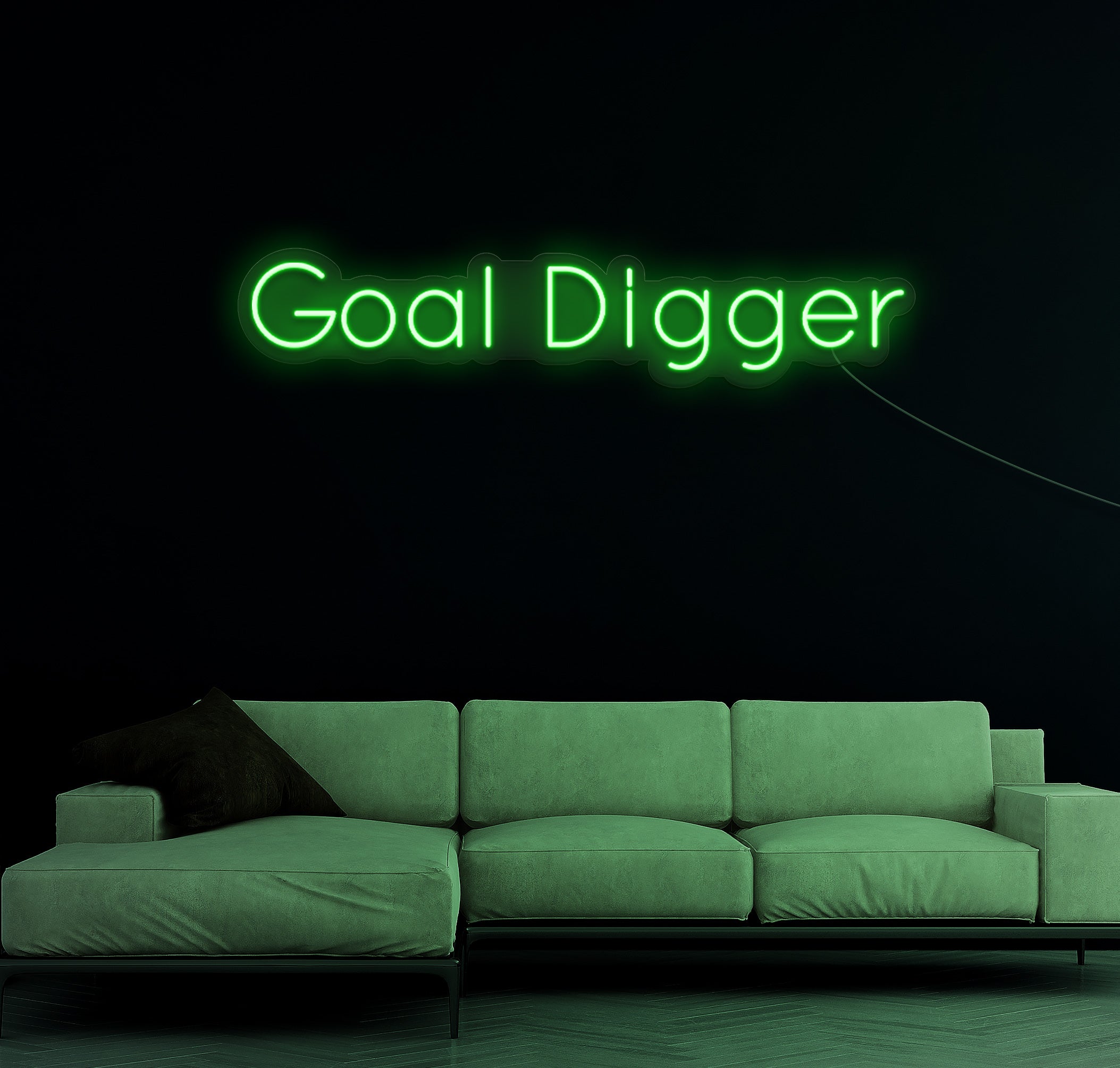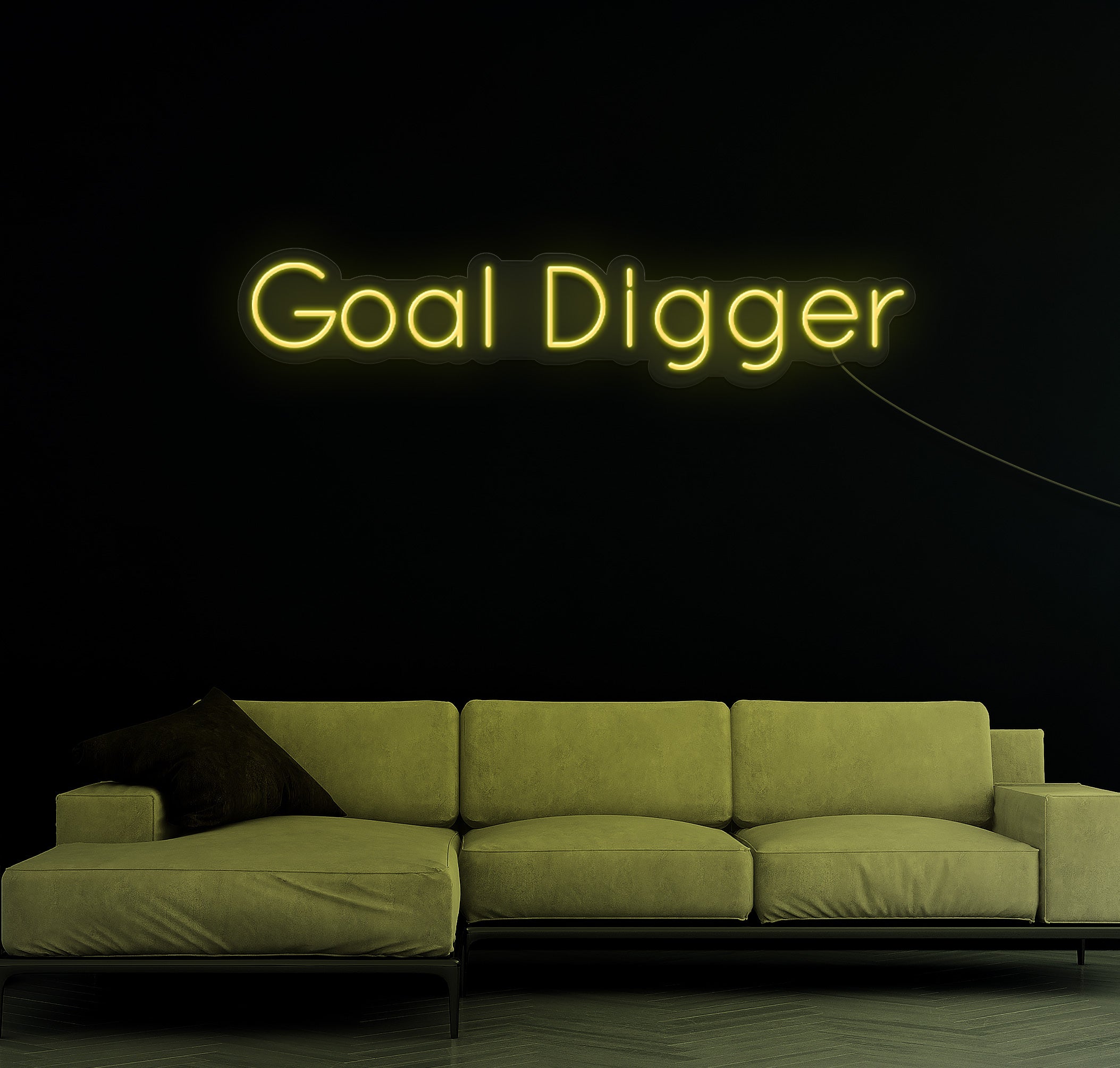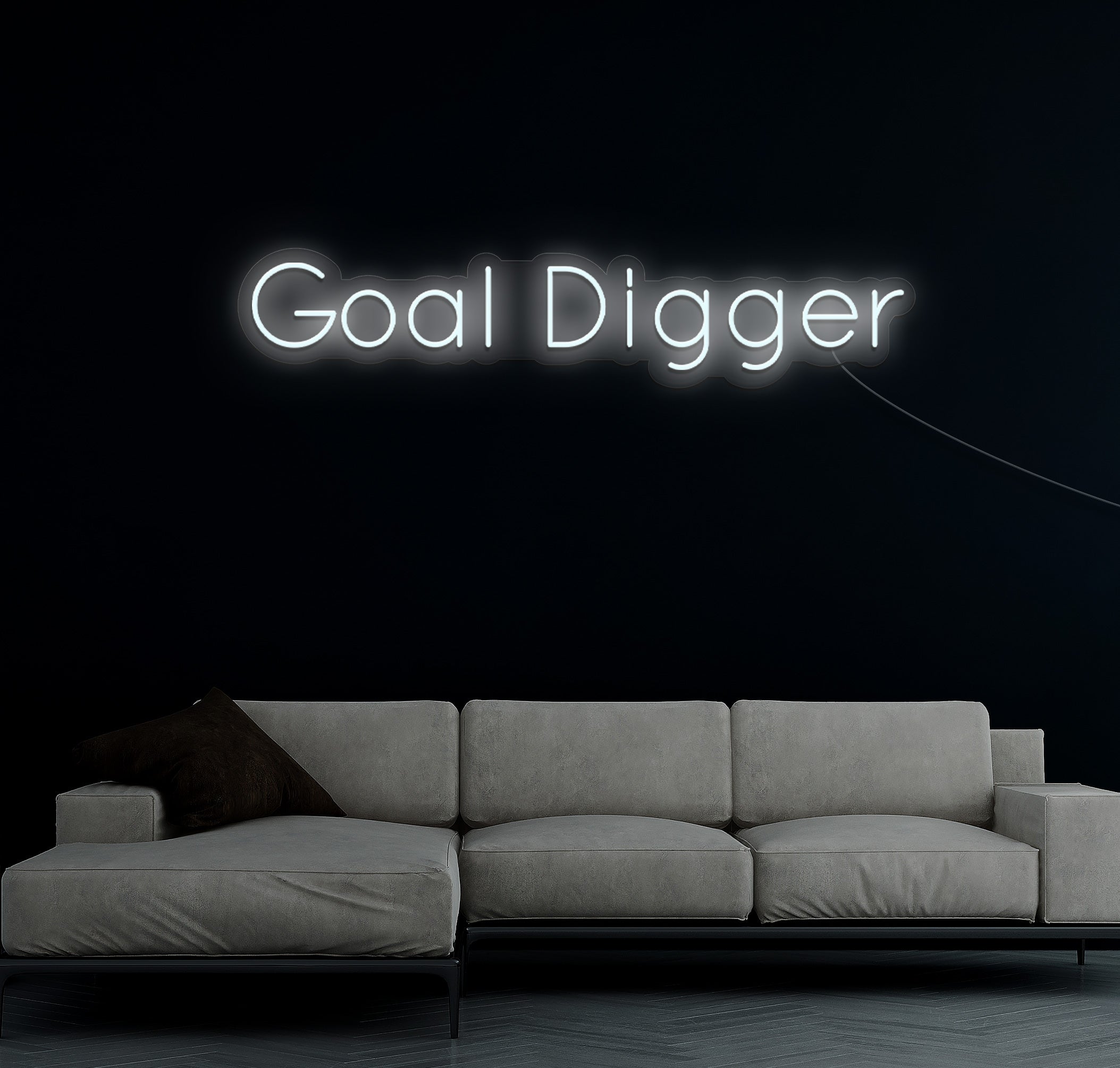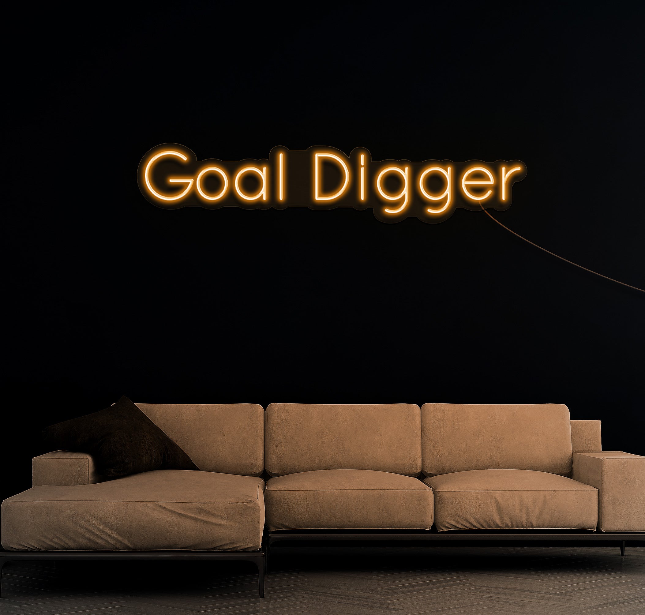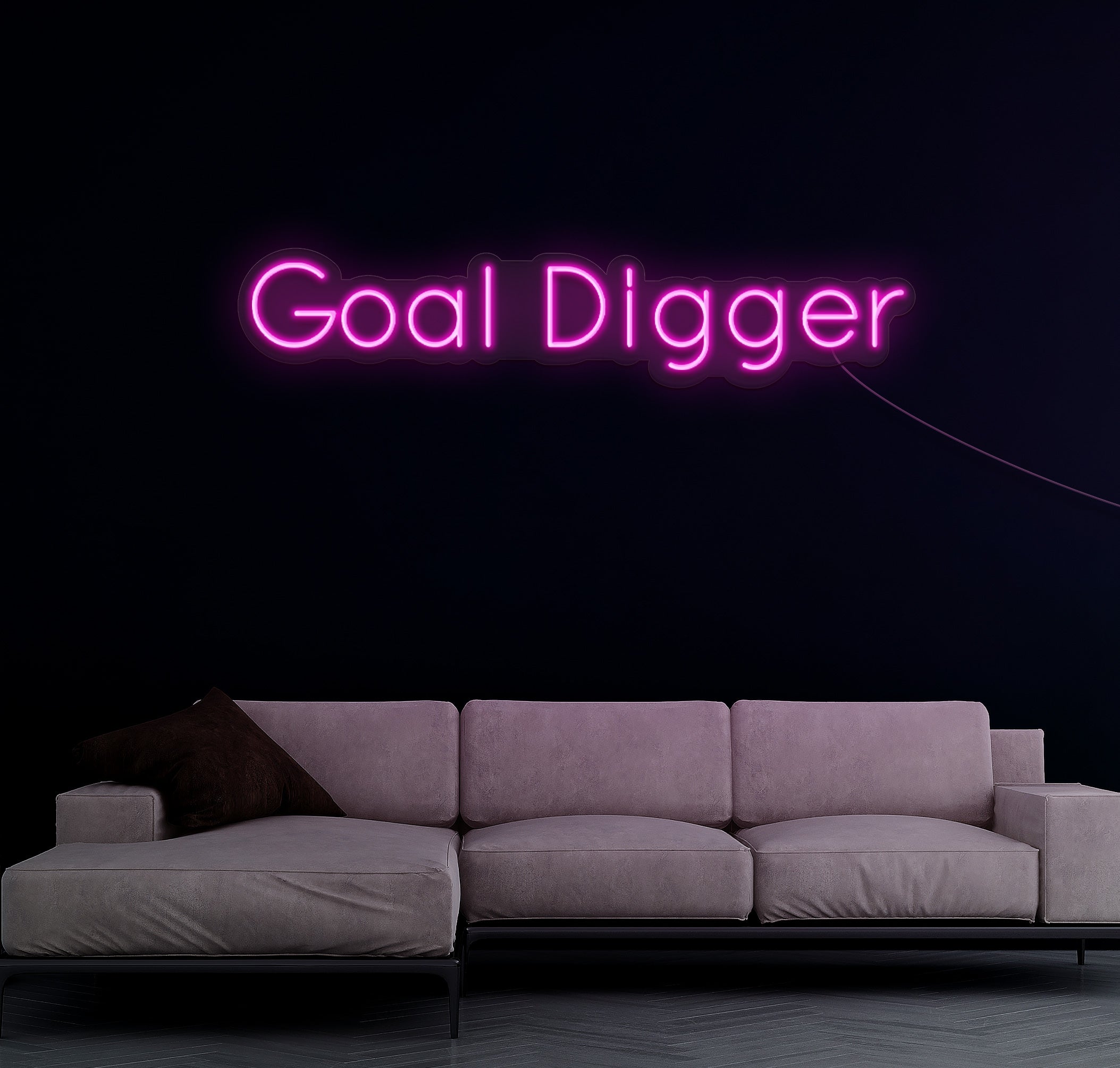 Illuminate your ambitions with the captivating "Goal Digger" LED Neon Sign, a stunning addition to any workspace or motivational setting. This vibrant sign serves as a beacon of inspiration, reminding you to stay focused on your goals and strive for success. Crafted with high-quality LED lights, it boasts a brilliant glow that instantly captures attention and creates an uplifting atmosphere.