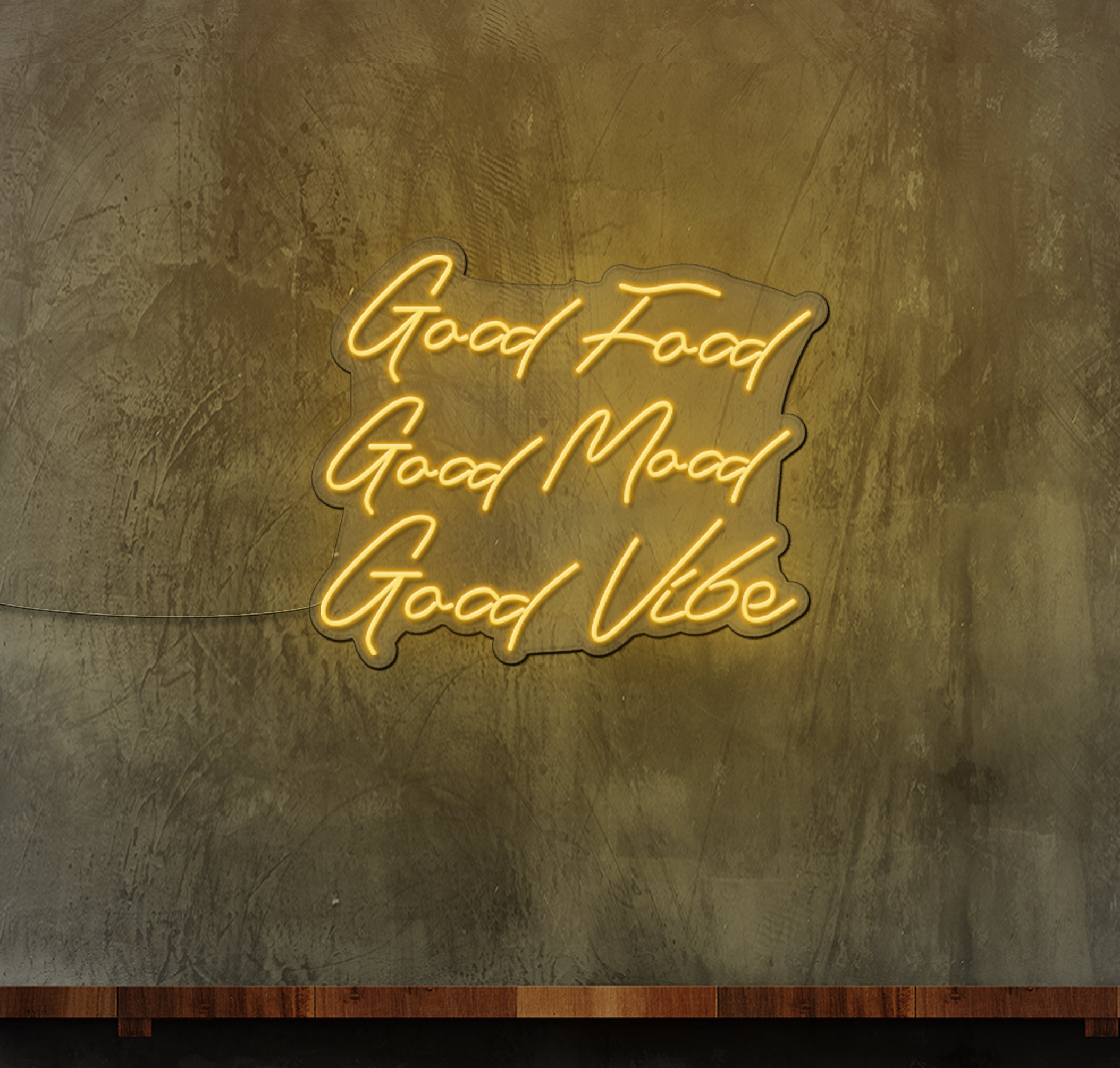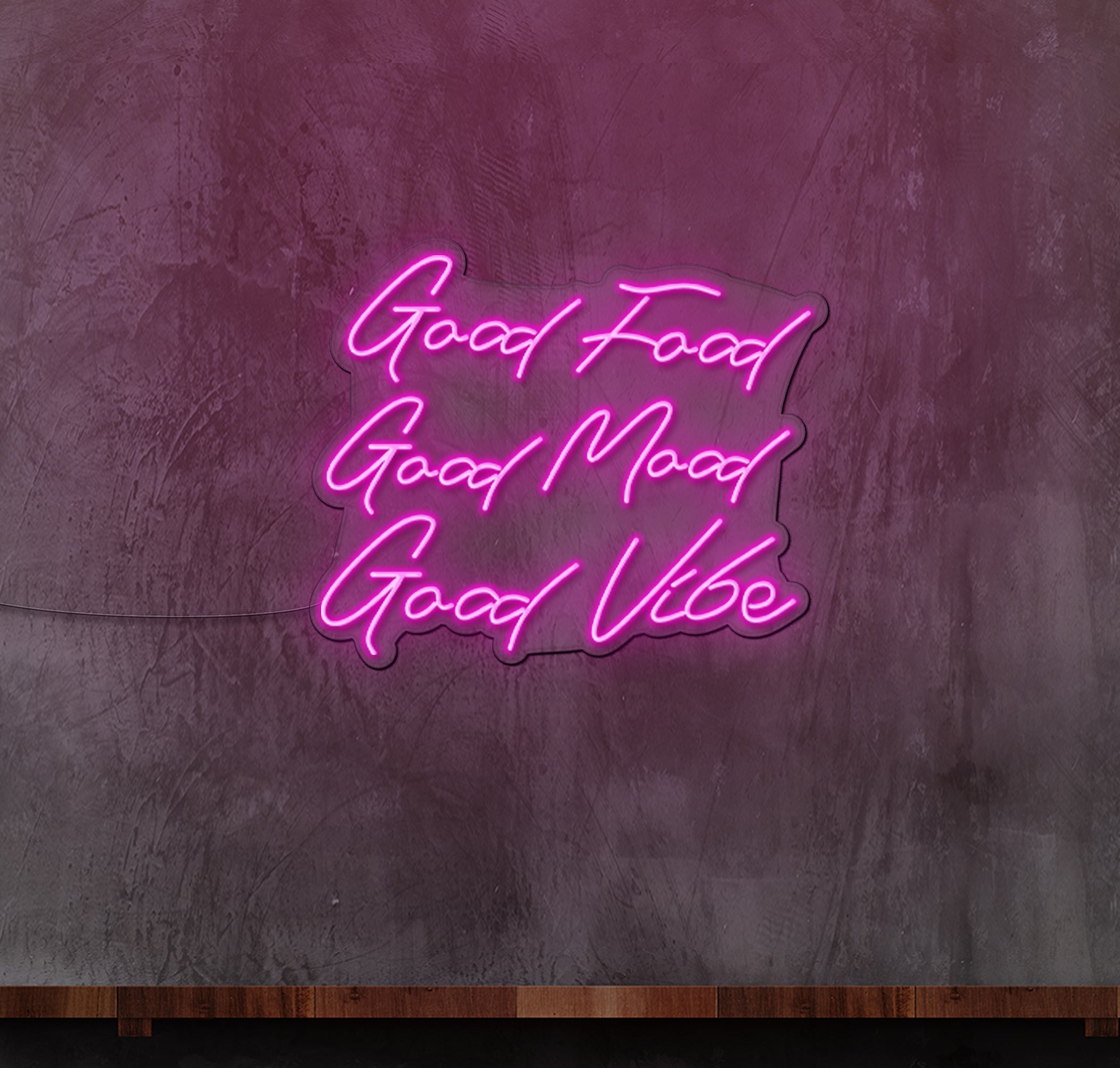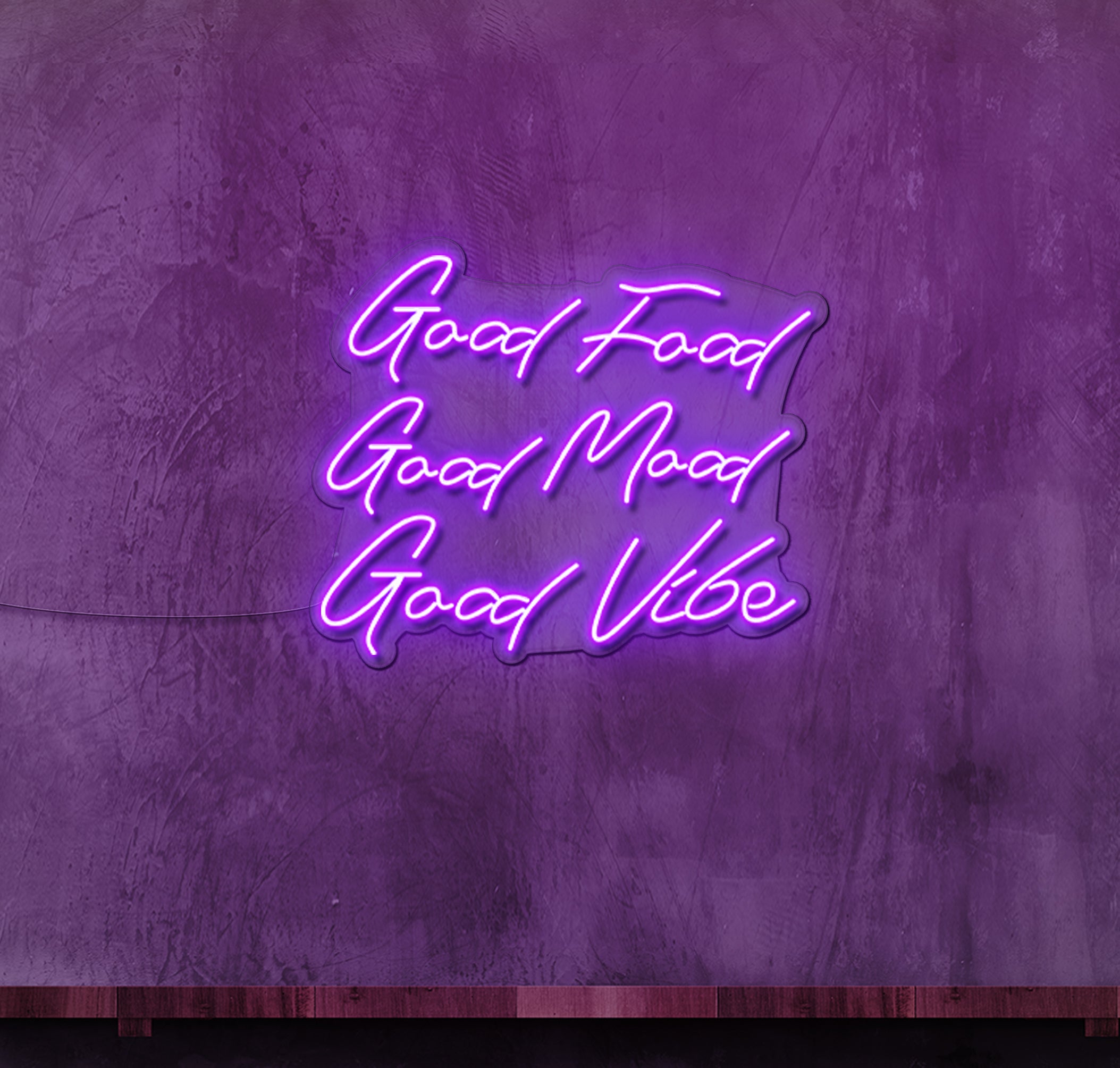 Elevate the ambiance of your eatery and spread positive vibes with our "Good Food Good Mood Good Vibes" LED neon sign. Designed to captivate passersby and beckon them into your establishment, this eye-catching signage adds a touch of charm and warmth to any food business.