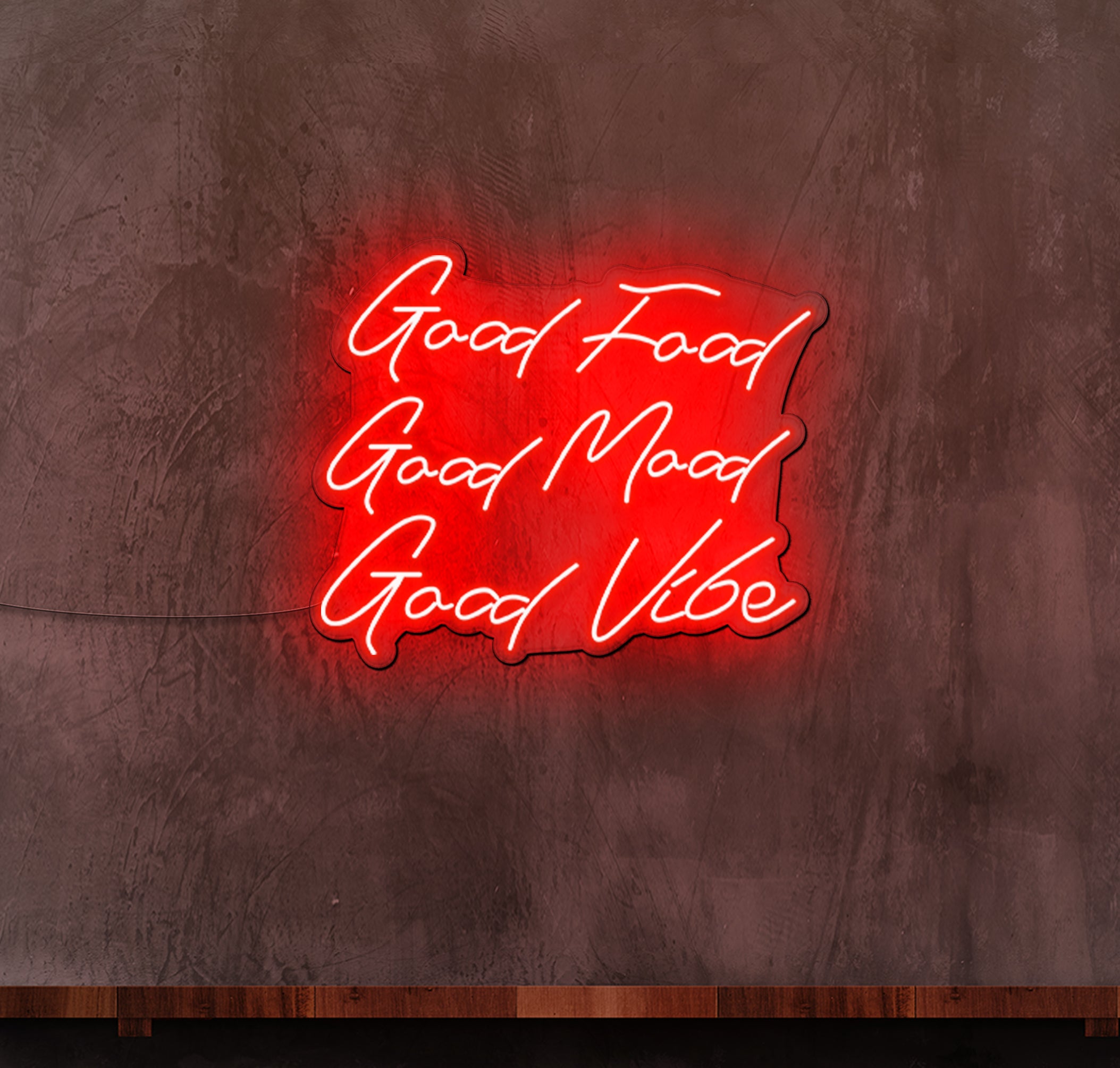 Make a lasting impression on your patrons and instil a sense of happiness and satisfaction with our "Good Food Good Mood Good Vibes" LED neon sign. Let your customers know that delicious food and positive energy await them, creating a welcoming atmosphere that keeps them coming back for more. Transform your food business into a haven of good vibes with our captivating neon signage.