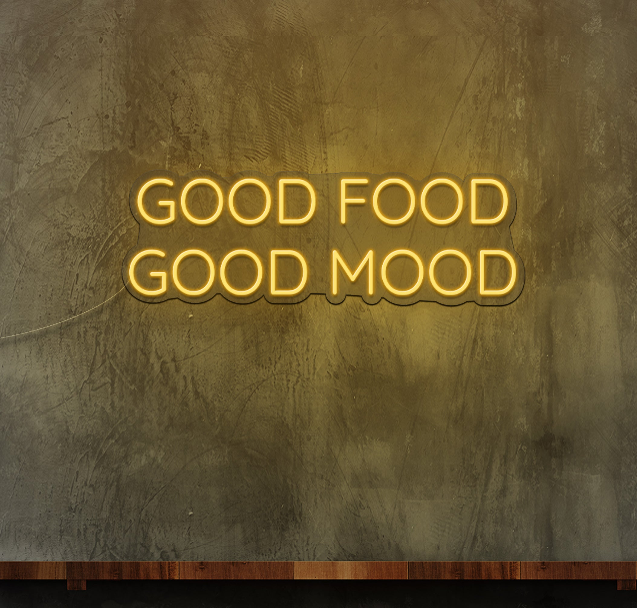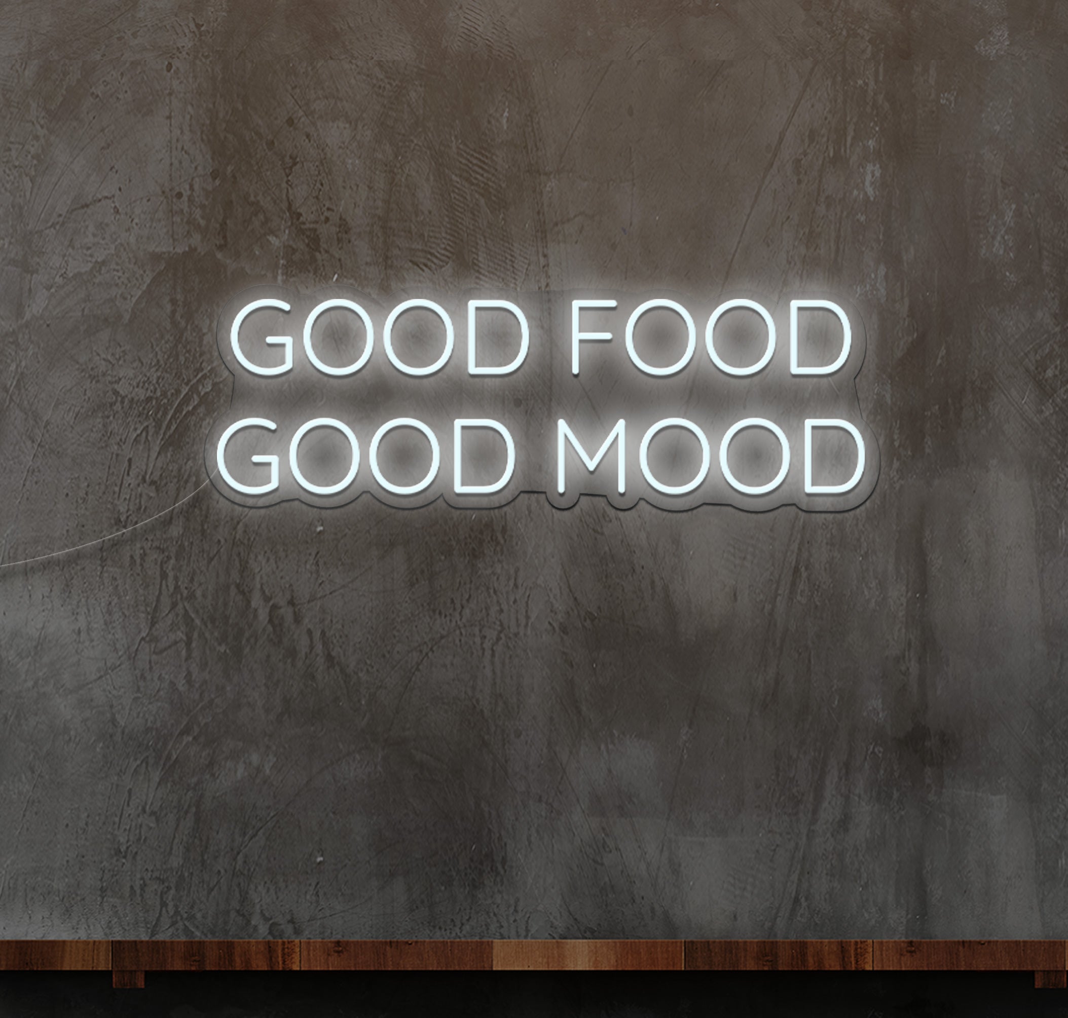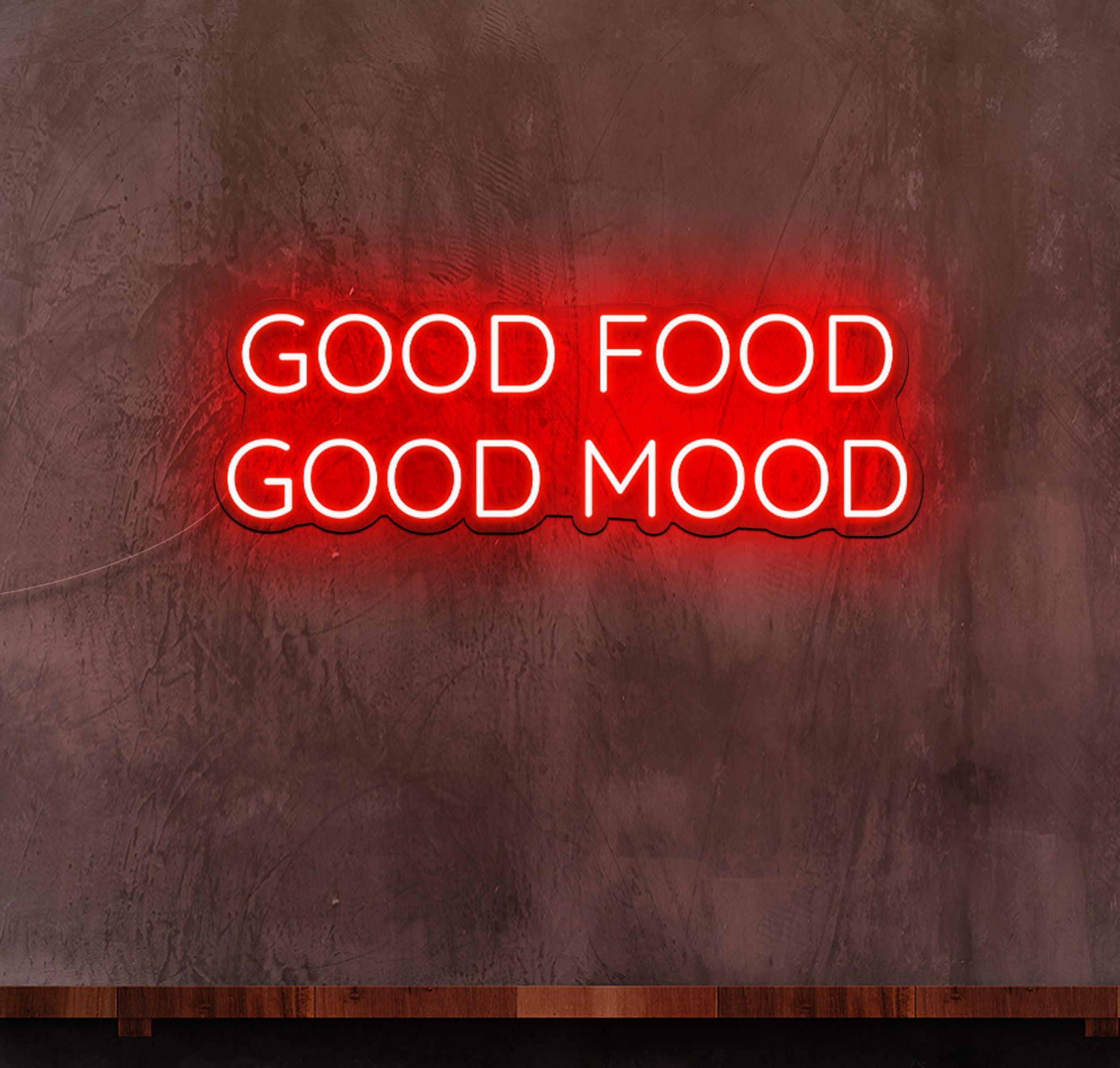 Brighten up your dining establishment and set the mood with our captivating "Good Food, Good Mood" LED neon sign. Crafted to enhance the ambiance of any food business, this sign radiates positive vibes and invites customers to enjoy a delightful culinary experience.