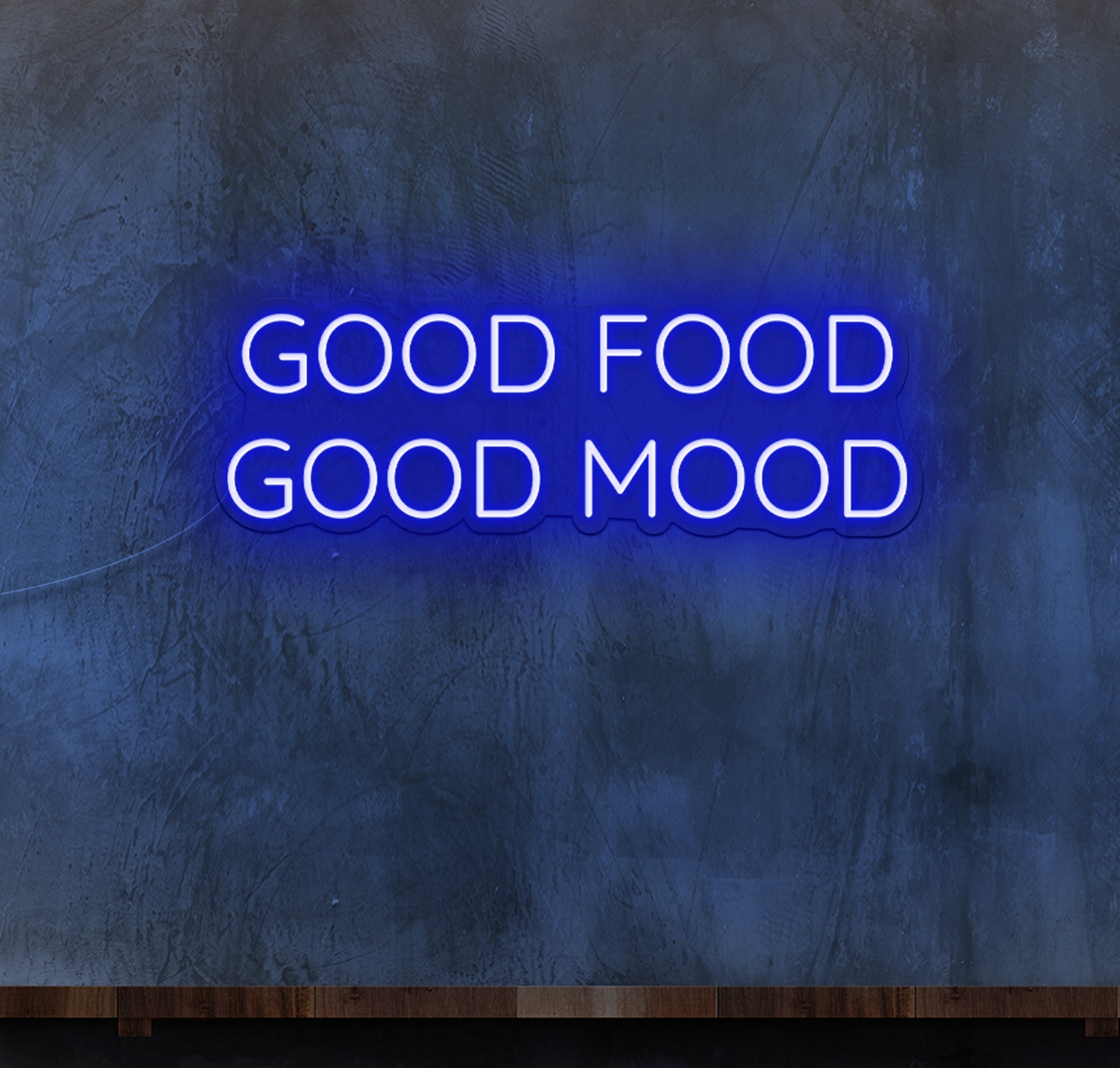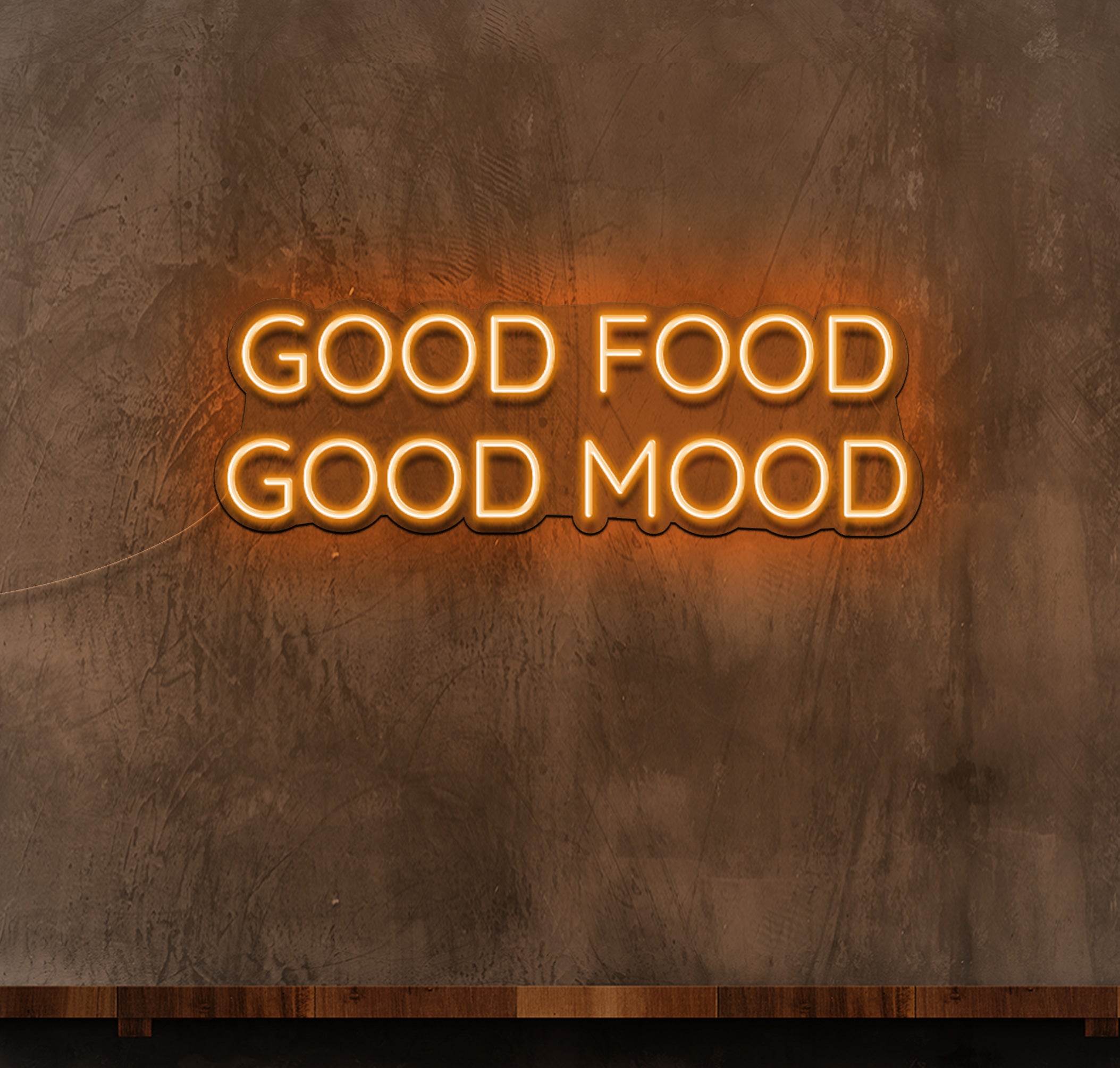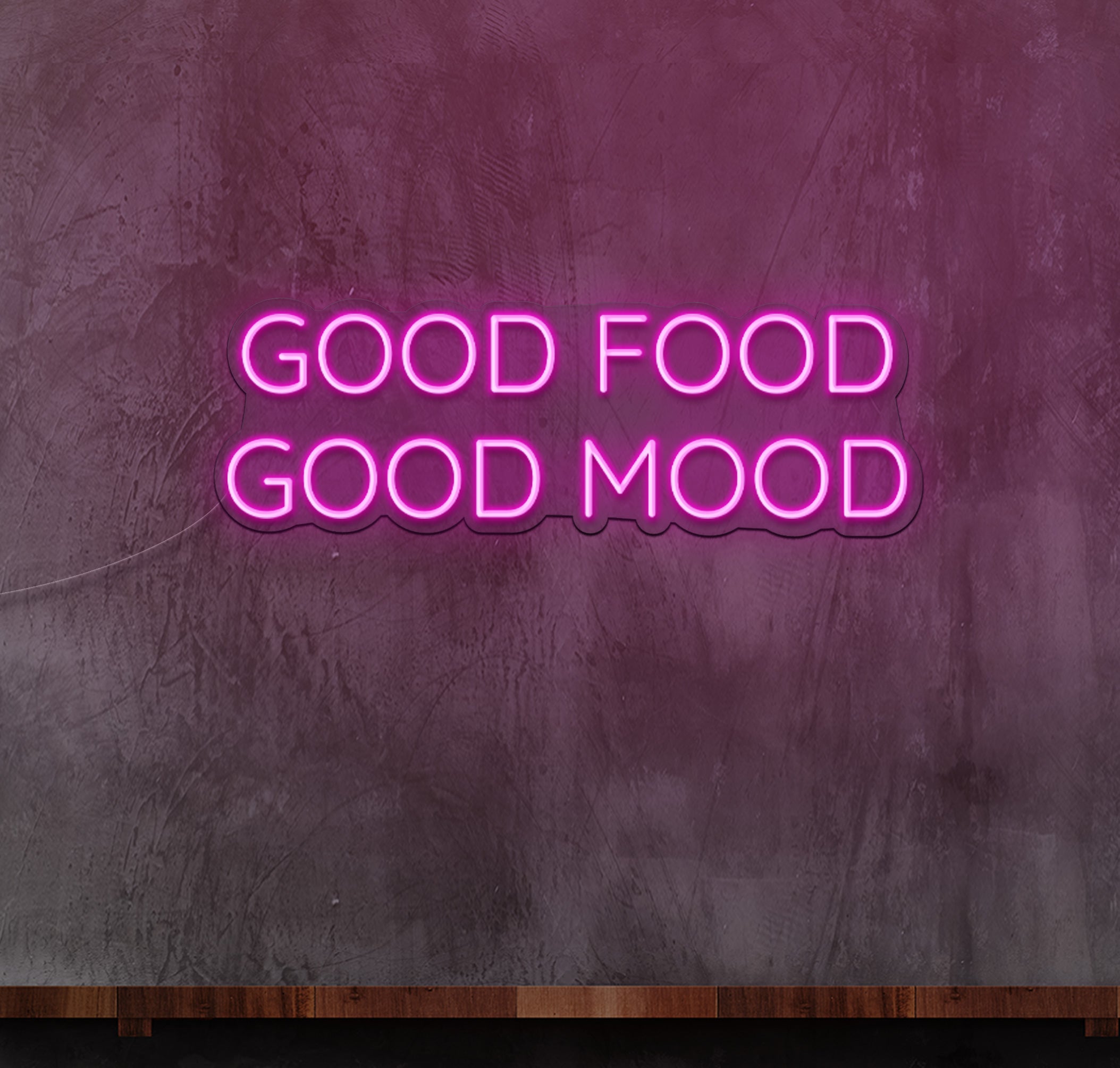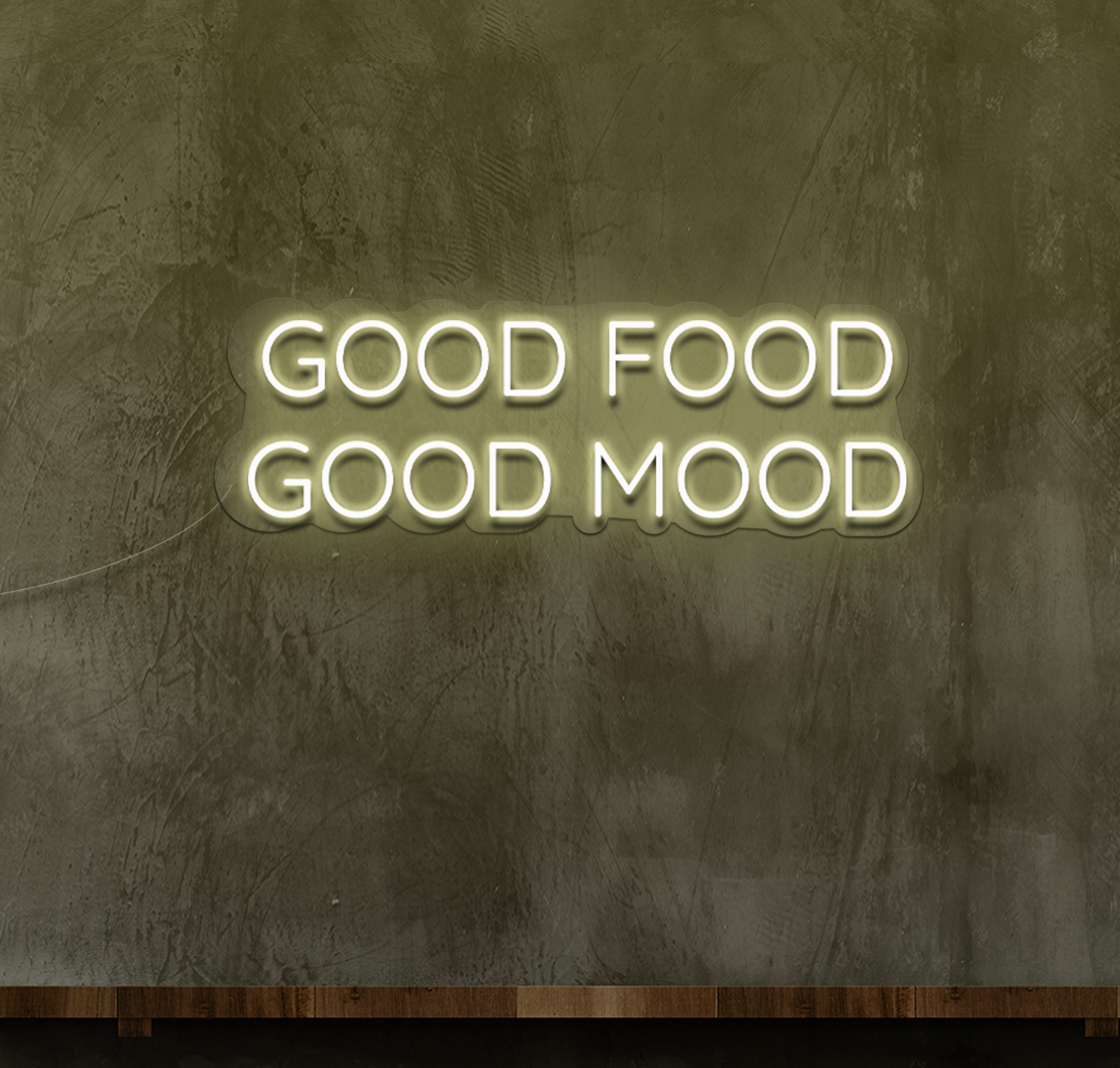 Brighten up your dining establishment and set the mood with our captivating "Good Food, Good Mood" LED neon sign. Crafted to enhance the ambiance of any food business, this sign radiates positive vibes and invites customers to enjoy a delightful culinary experience.