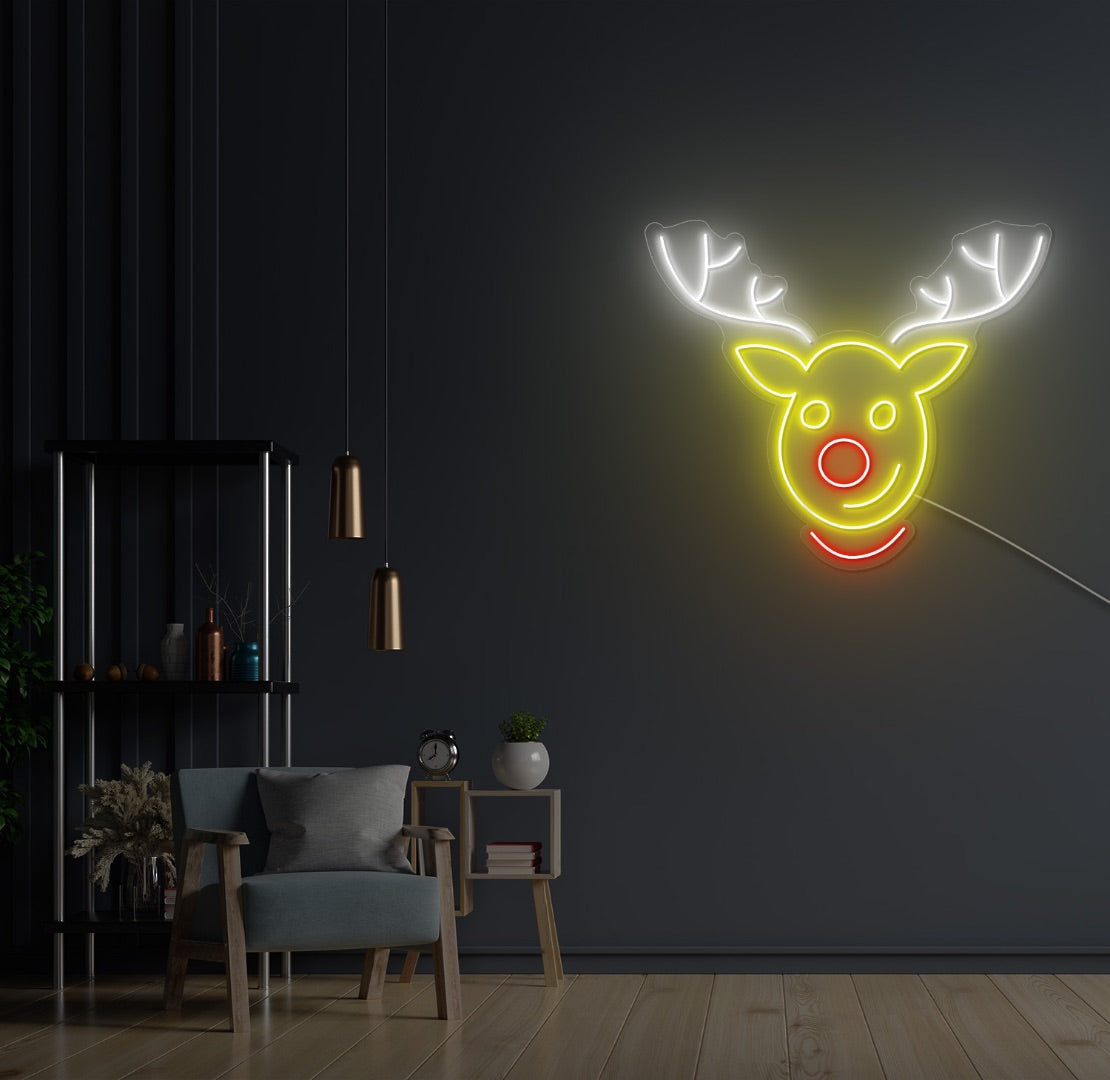 Brighten up your holiday spirit with the Happy Rudolph neon sign. This whimsical creation brings the cheerful reindeer to life in vibrant neon hues. The custom neon sign adds a playful touch to your Christmas decor, making Rudolph the star of the show.