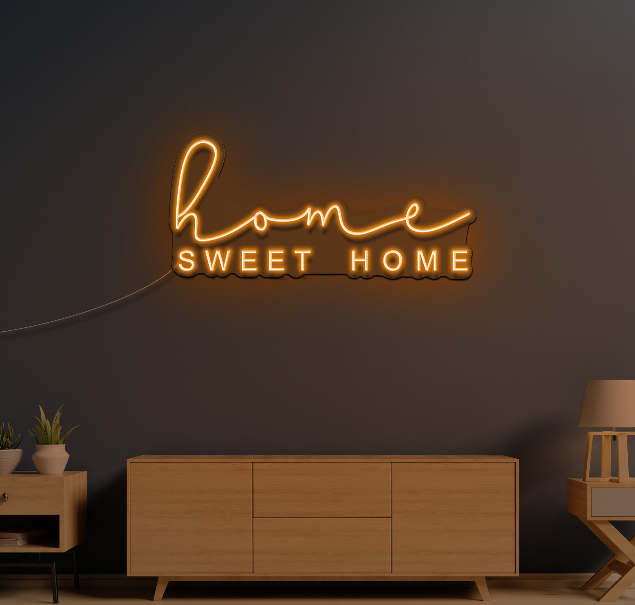 Illuminate your living space with the comforting glow of the "Home Sweet Home" LED Neon Sign. This charming sign is the perfect addition to any home, bringing warmth and nostalgia to your space.