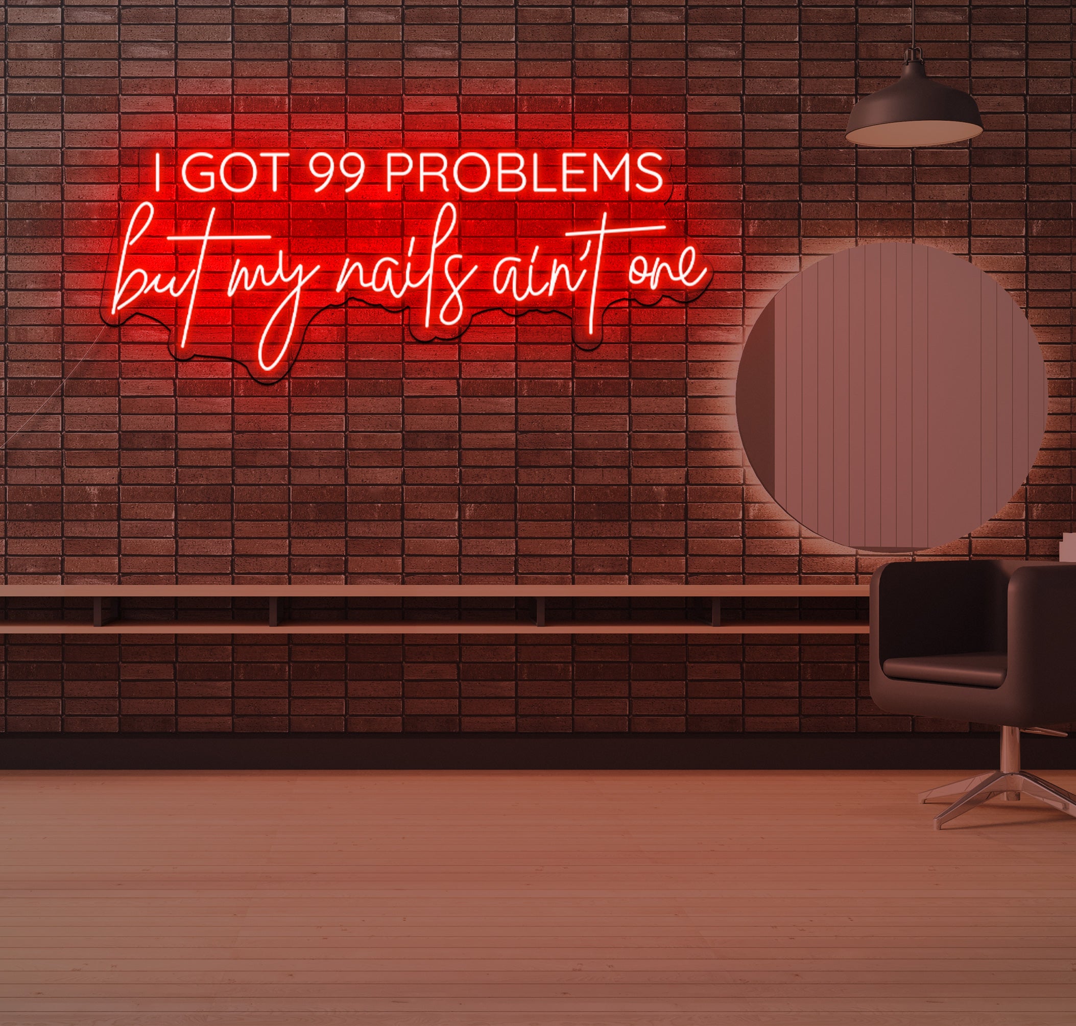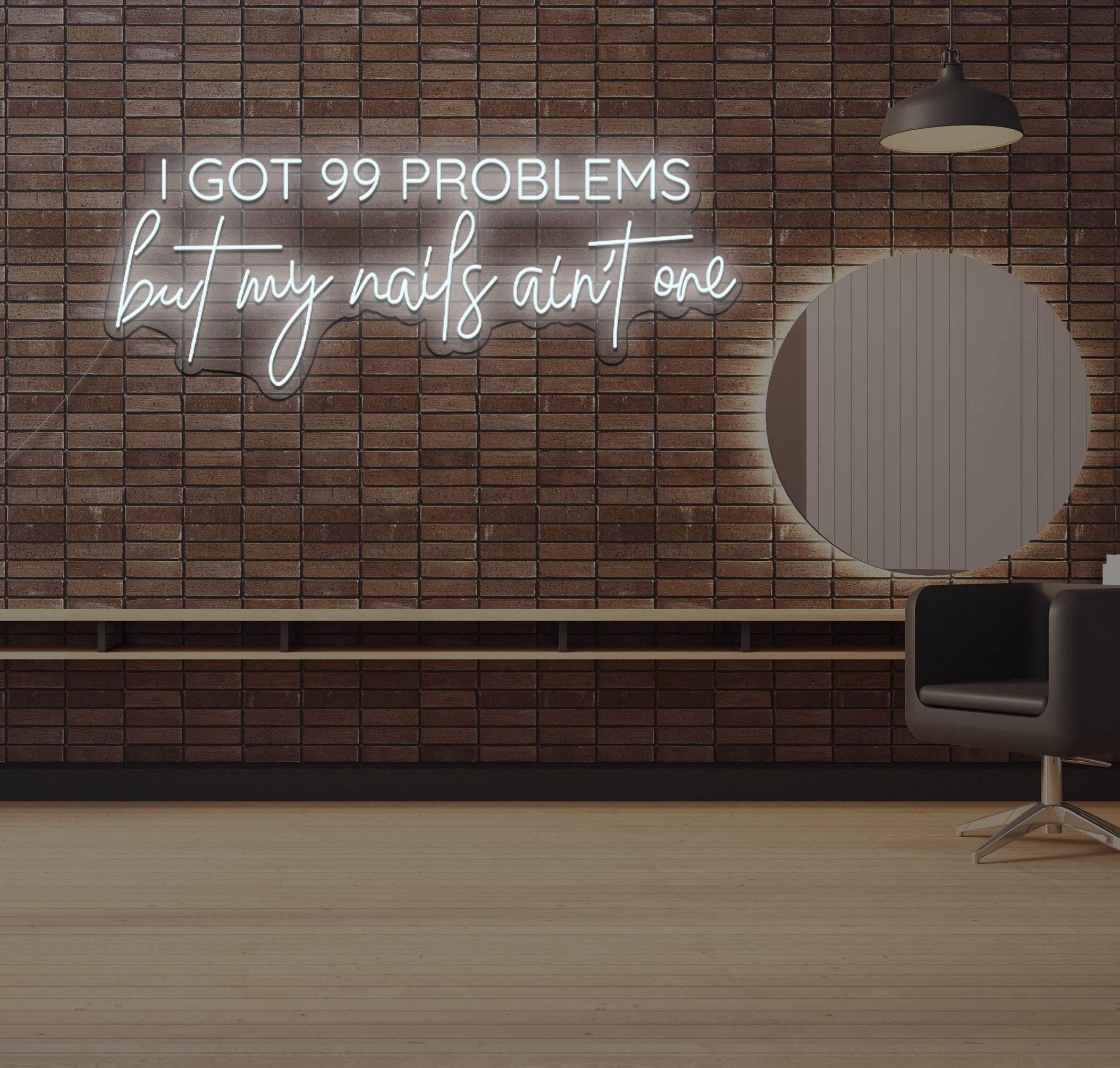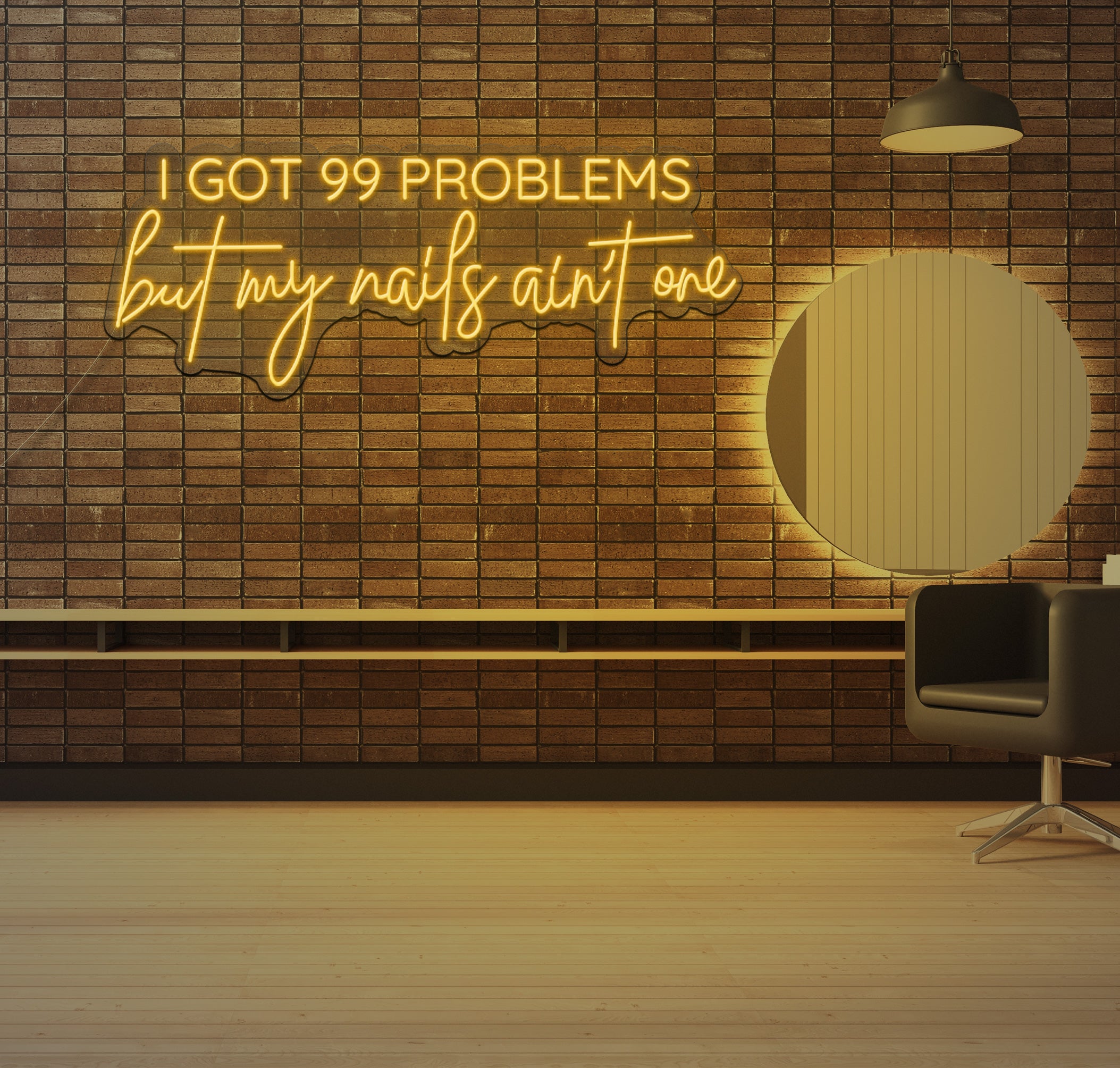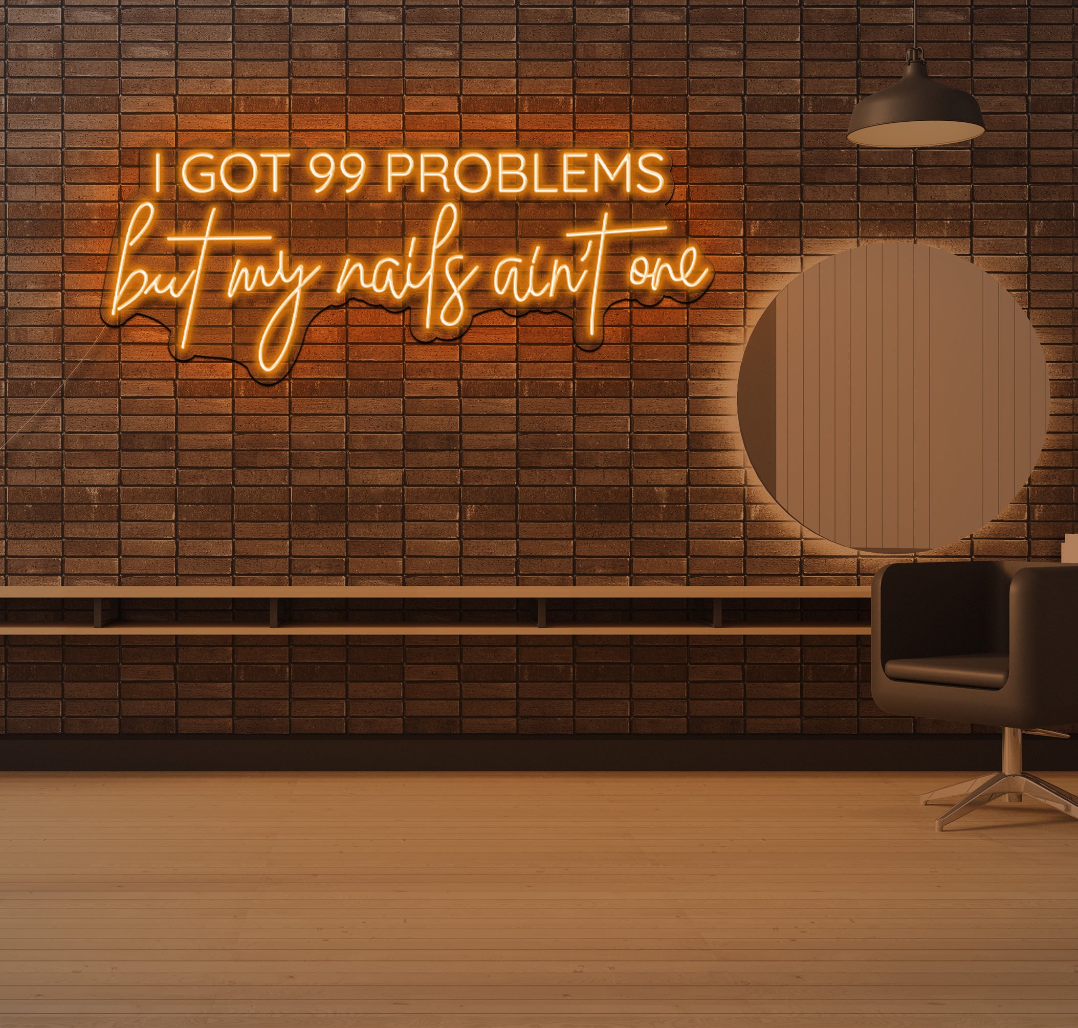 Whether you're a nail salon owner looking to inspire your clients or a nail enthusiast seeking to make a statement at home, the "I Got 99 Problems But My Nails Ain't One" Custom Neon Sign from The Neon Factory is the perfect choice. Order yours today and let the radiant glow of neon showcase your unwavering nail game.