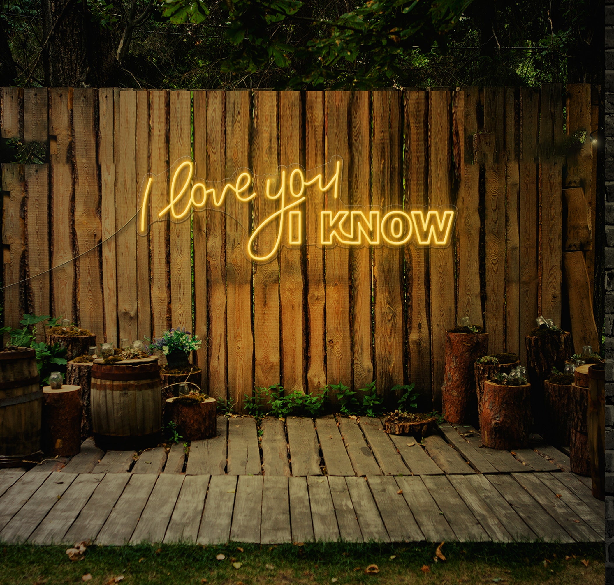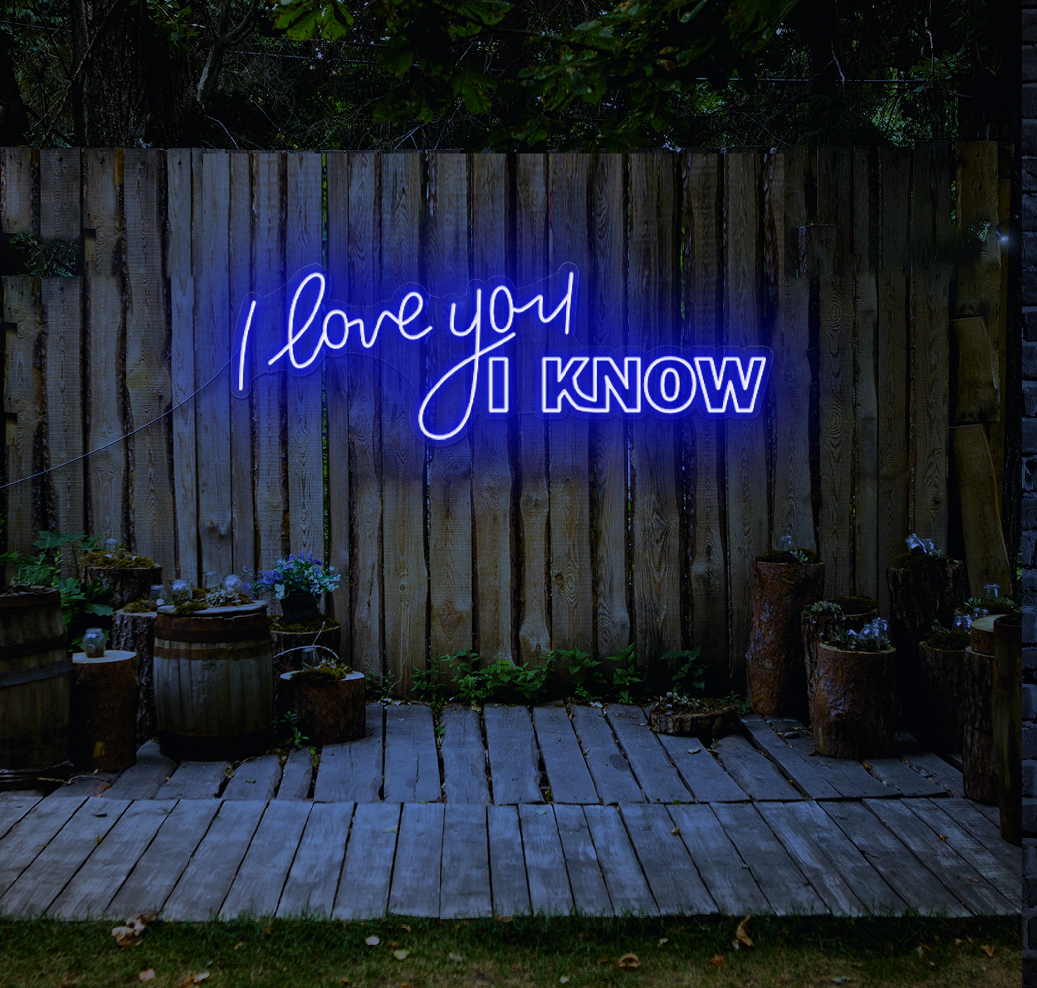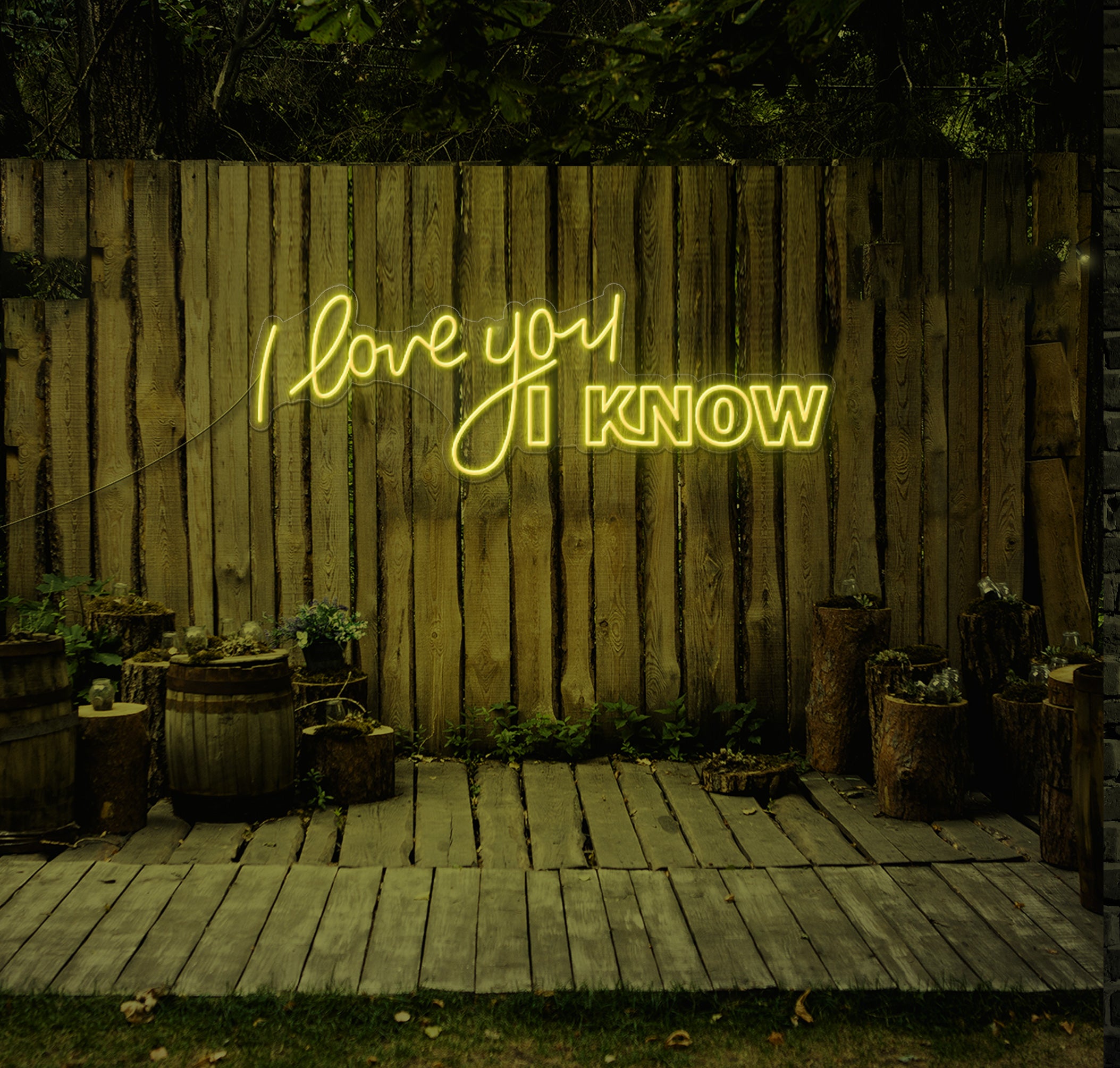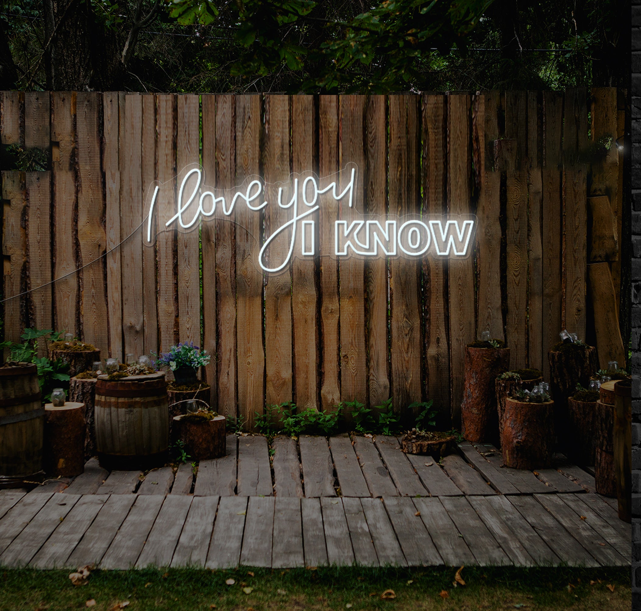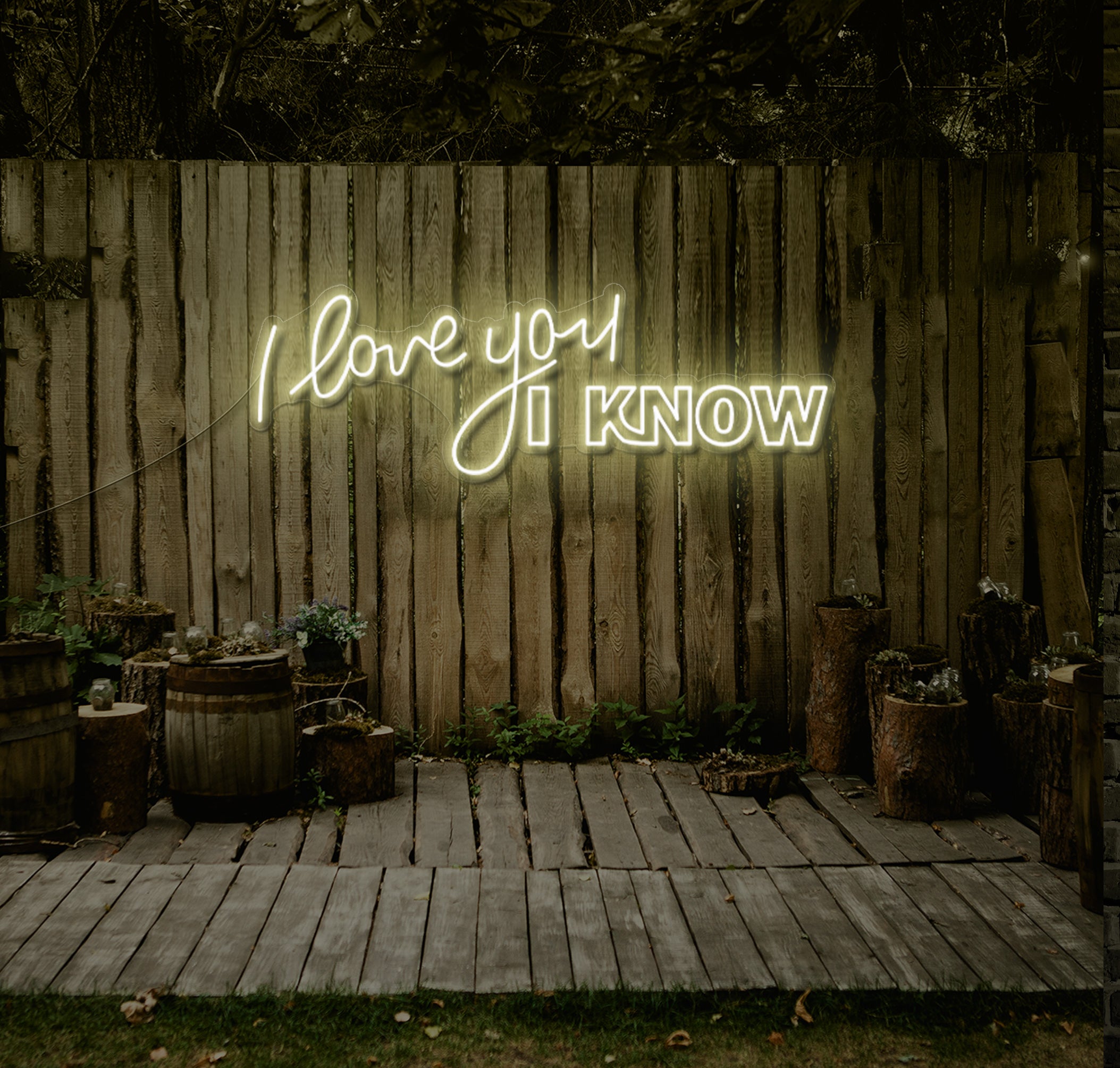 Let The Neon Factory light up your wedding day with the playful charm of the "I Love You I KNOW" LED Neon Sign. Order yours today and make your special day truly unforgettable.