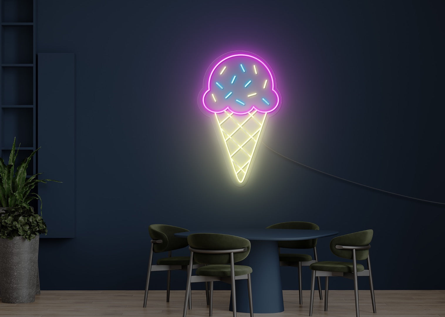 Crafted with high-quality materials and cutting-edge LED technology, our neon sign boasts vibrant colours and long-lasting brightness, ensuring it stands out in any setting. Whether you own an ice cream parlour, dessert café, or gelato shop, this sign adds a touch of whimsy and nostalgia to your space.