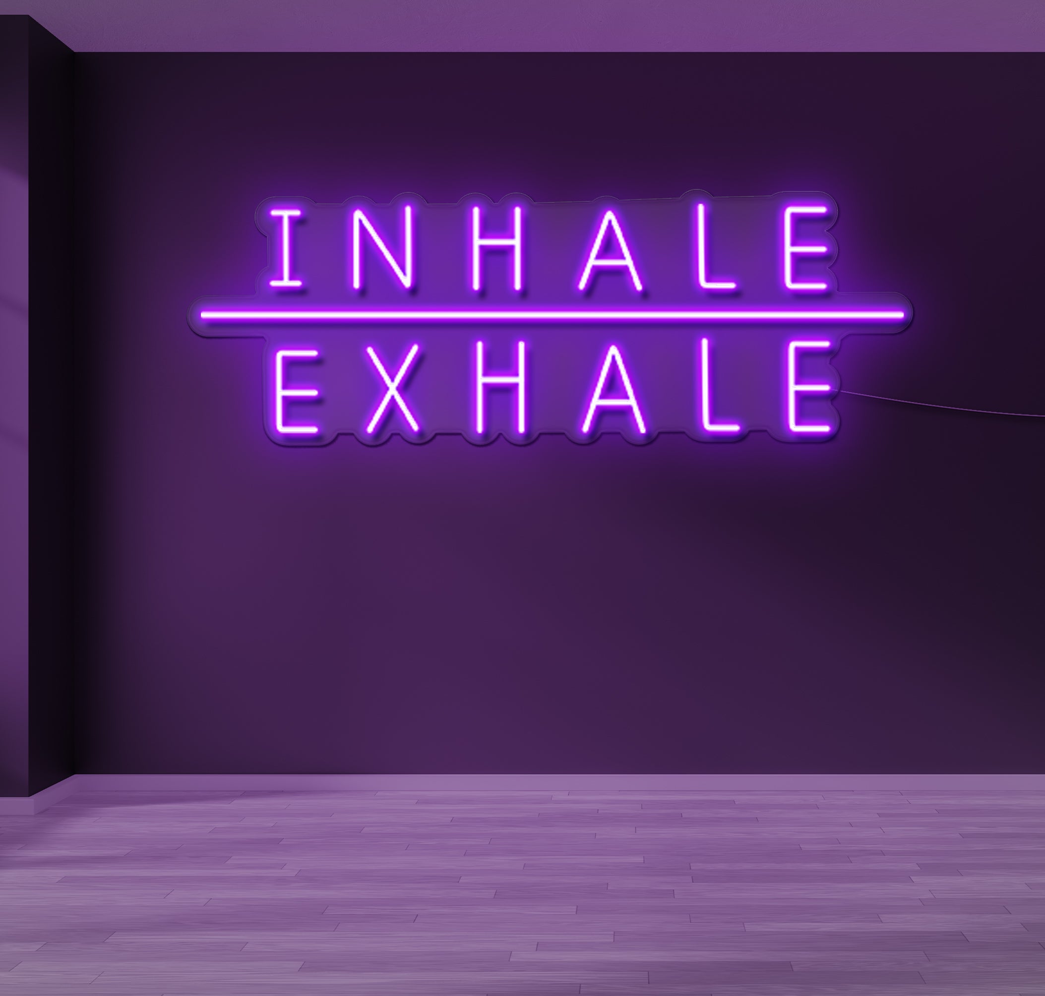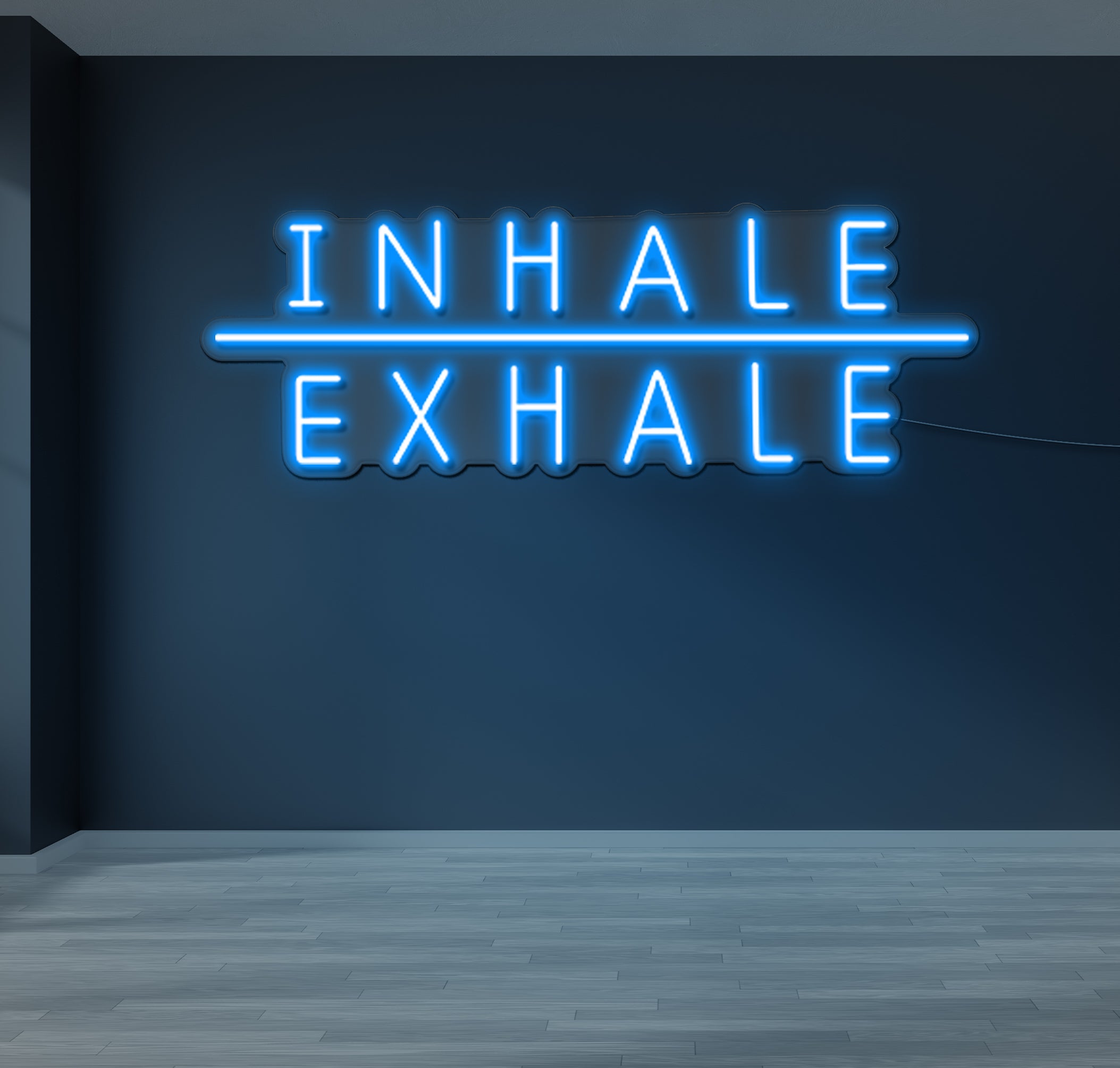 Designed to inspire a holistic approach to health and wellness, this sign serves as a constant reminder to prioritise self-care and mindfulness in your fitness journey. Whether you're practicing yoga, meditation, or intense workouts, the "Inhale & Exhale LED Neon Sign" encourages you to connect with your breath and find inner peace amidst the chaos of daily life.