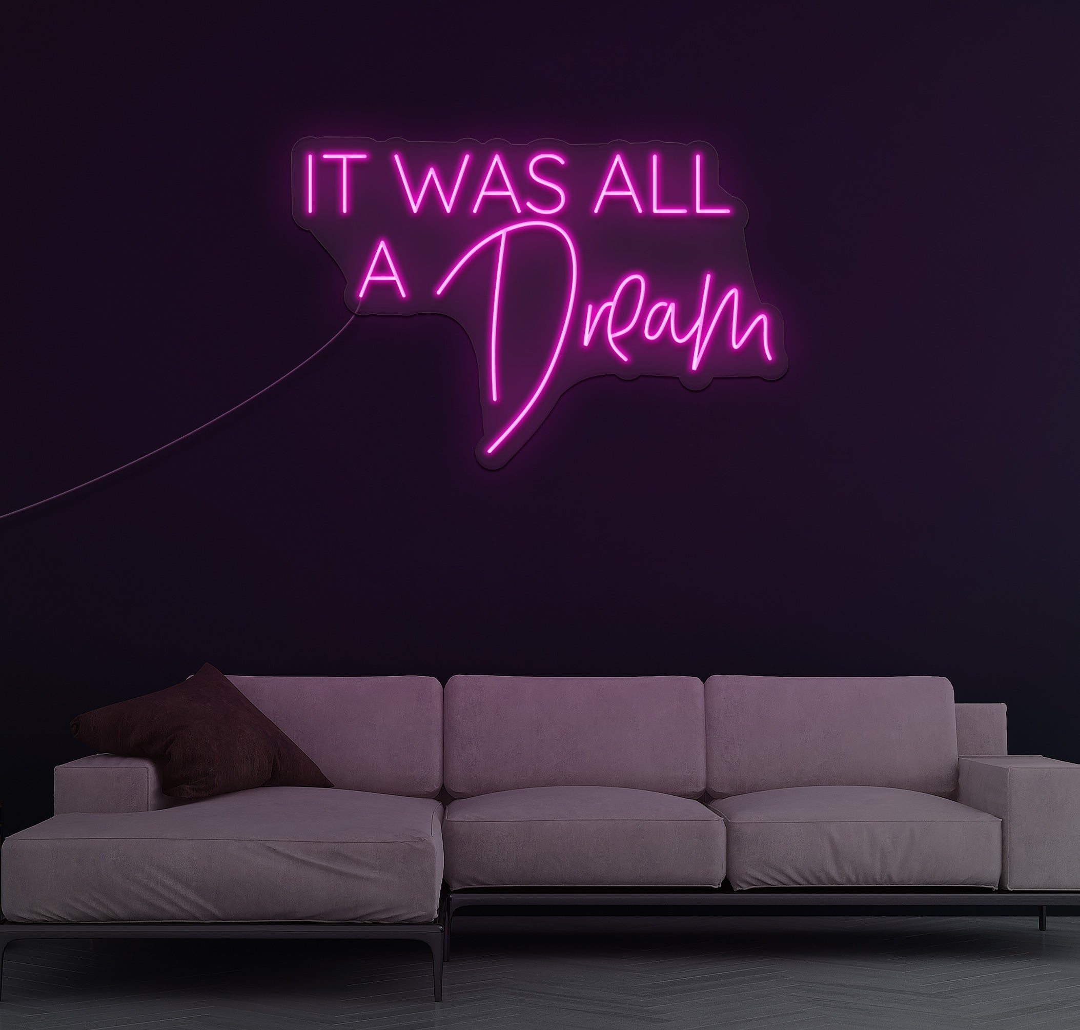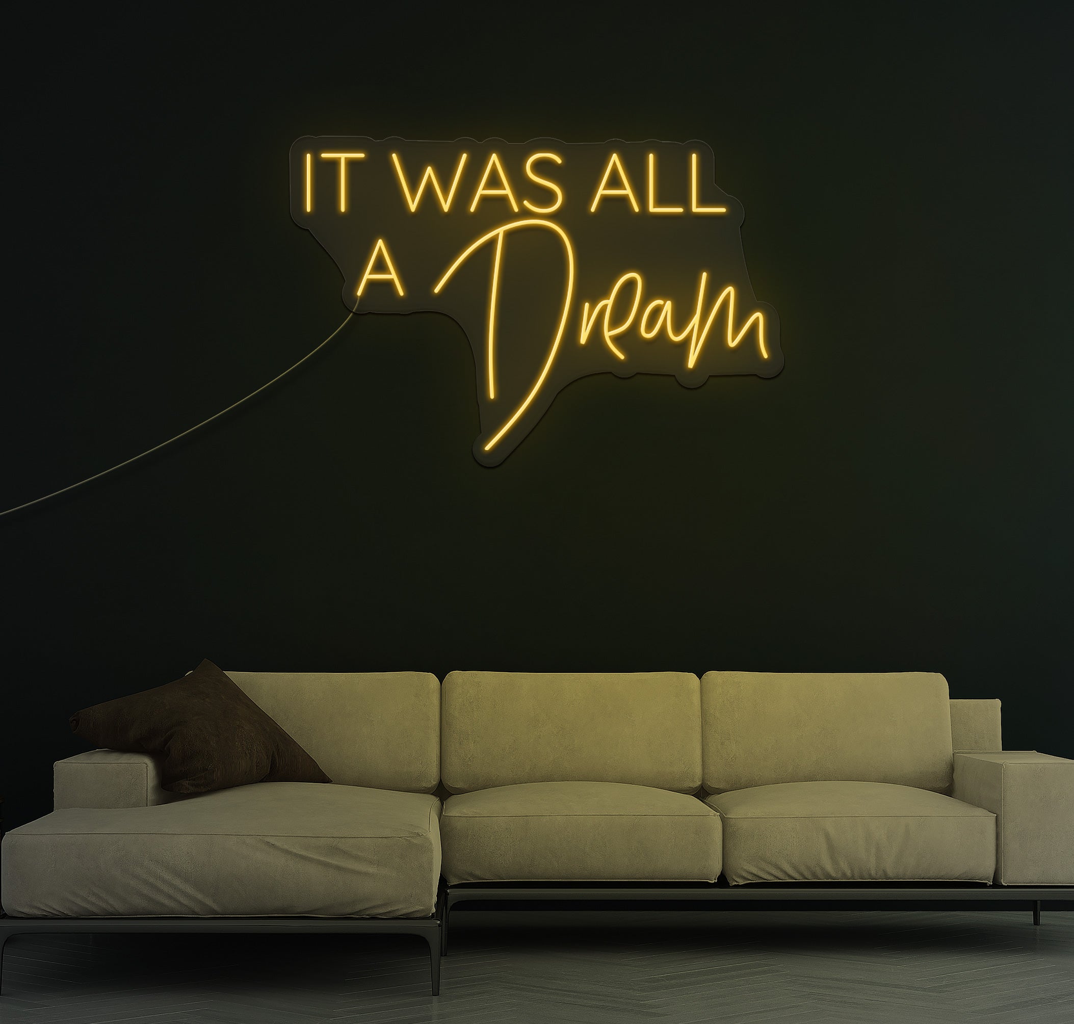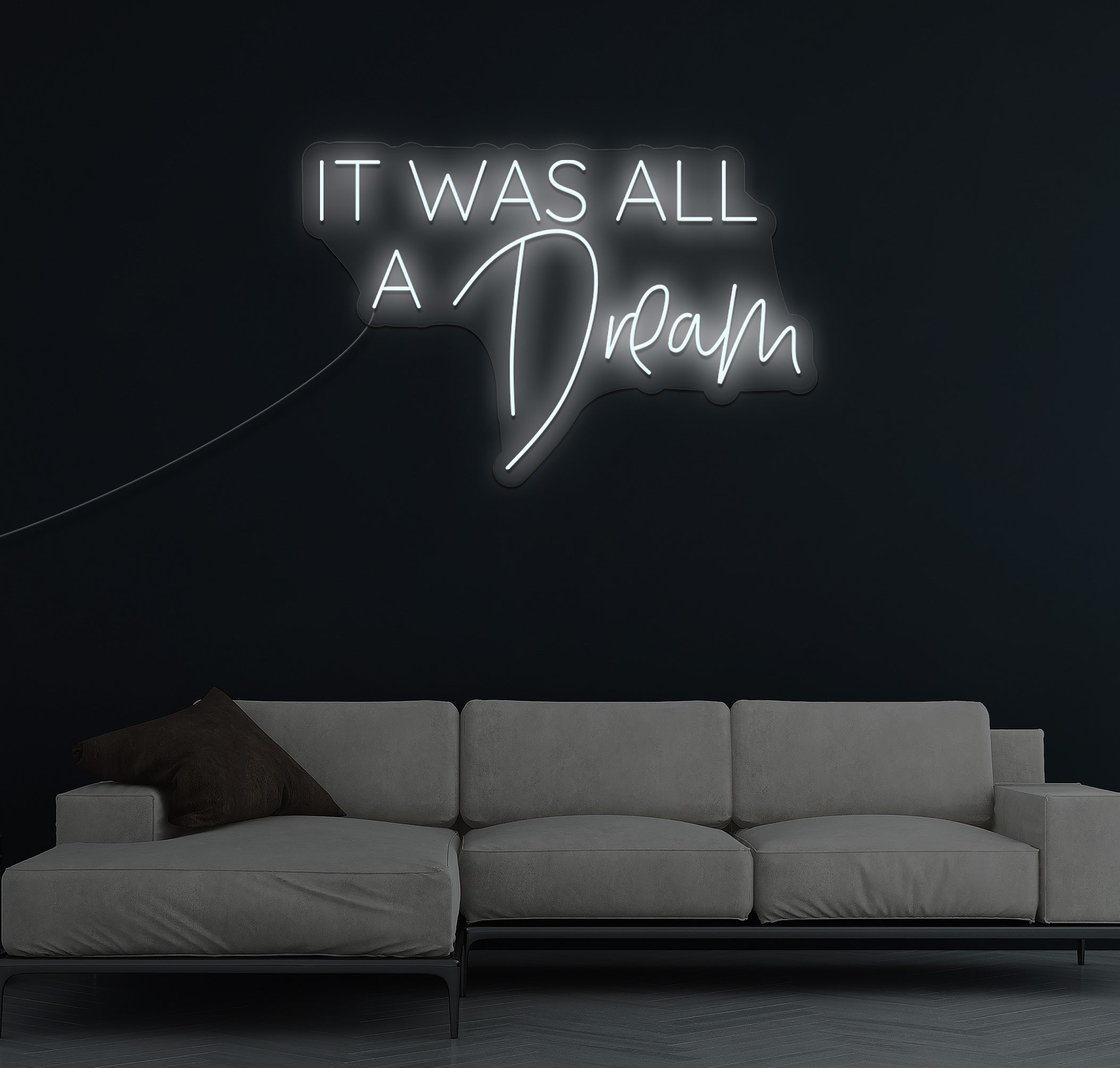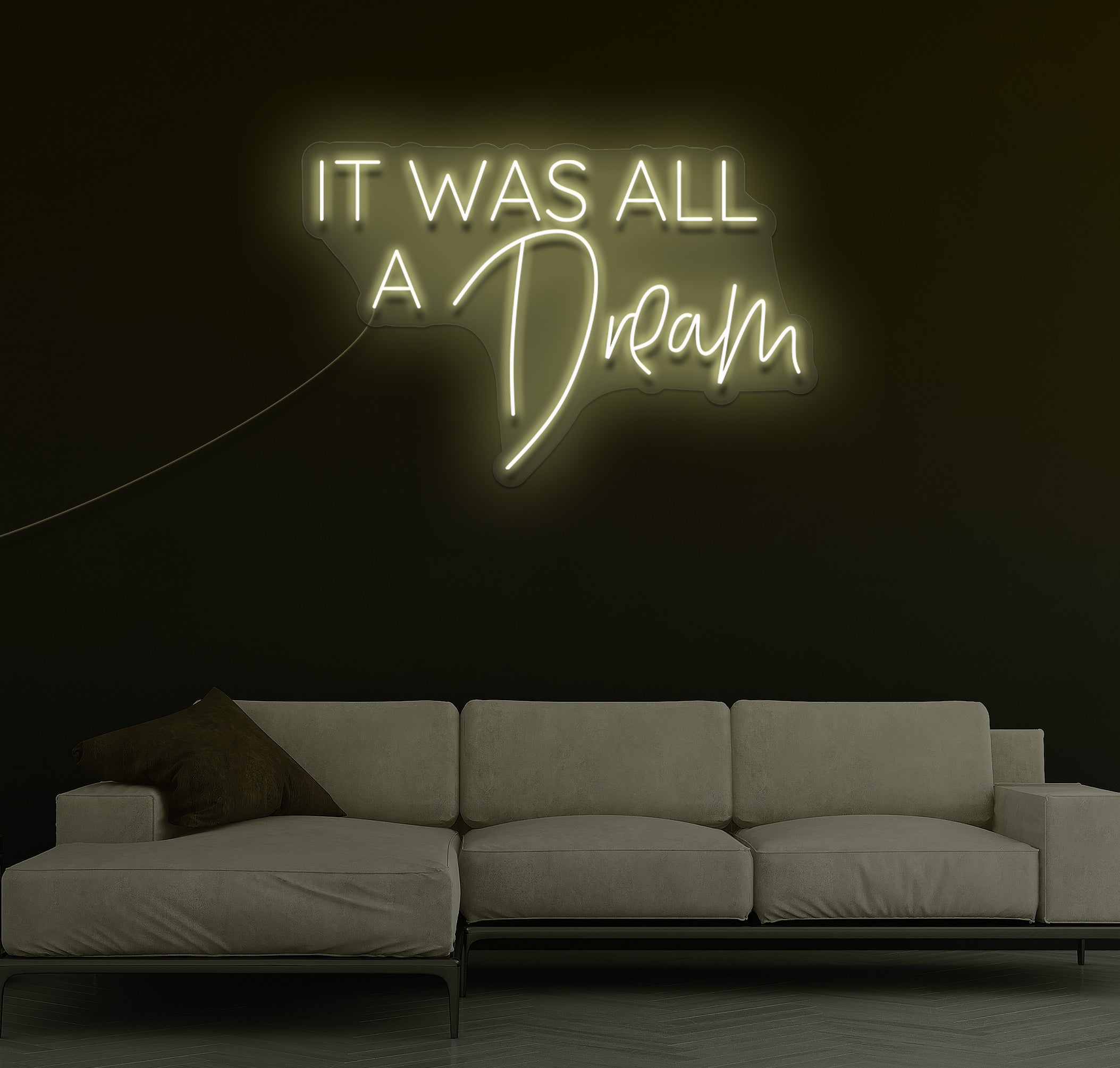 Transform your space into a haven of inspiration with the "It Was All A Dream" LED Neon Sign. This captivating neon sign features the iconic phrase in a stylish, modern font, casting a soft, enchanting glow that adds a touch of magic to any room. Whether you're looking to enhance your bedroom, living room, office, or studio, this sign is the perfect addition to create an ambiance that is both dreamy and motivational.