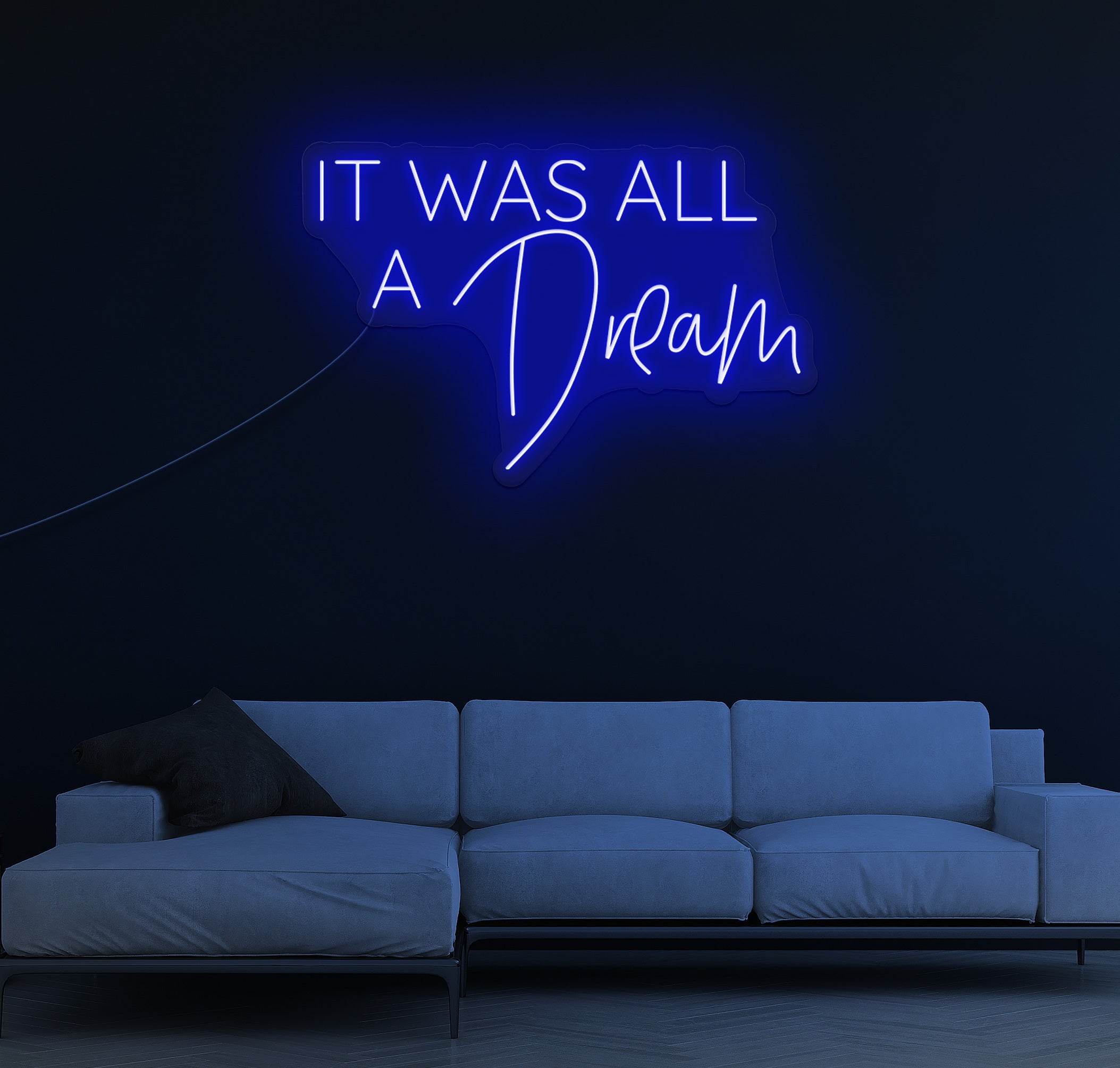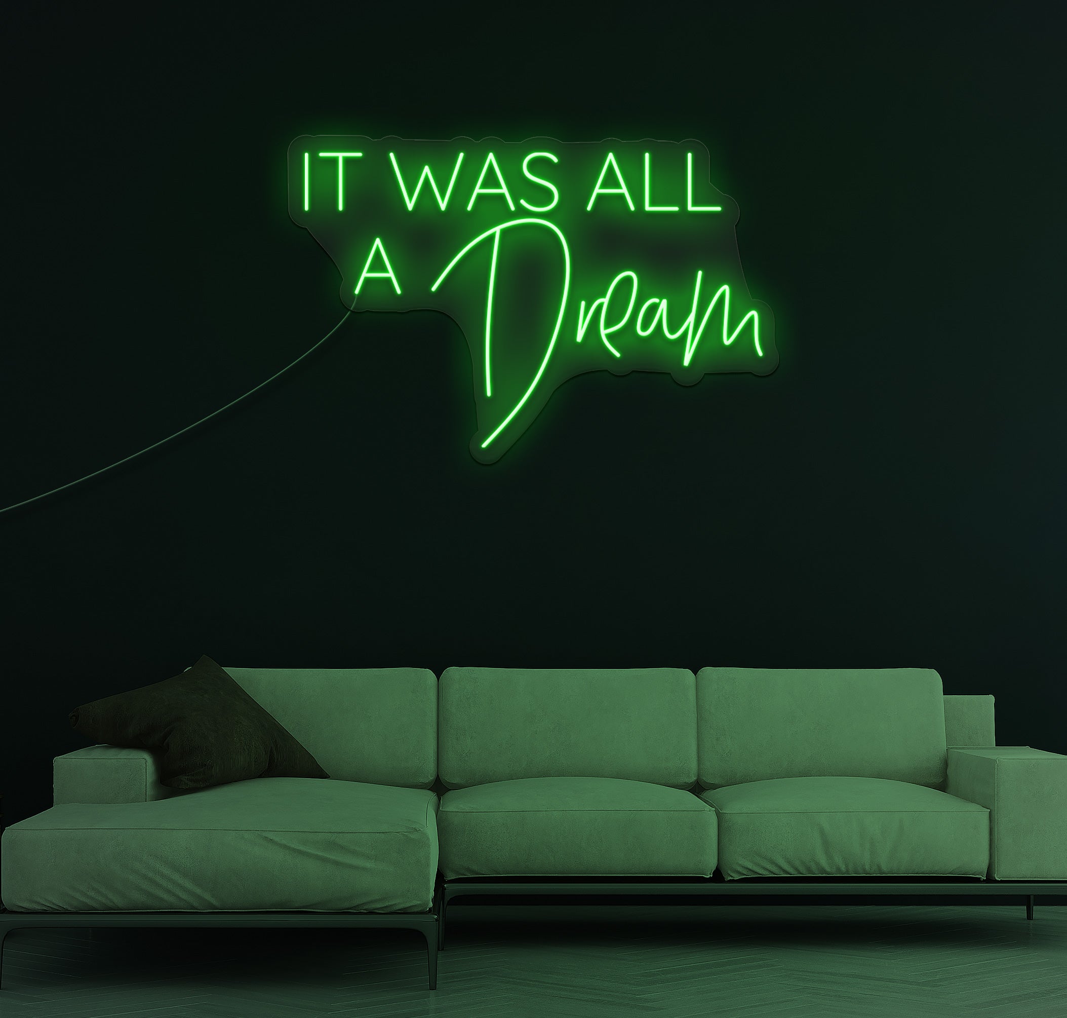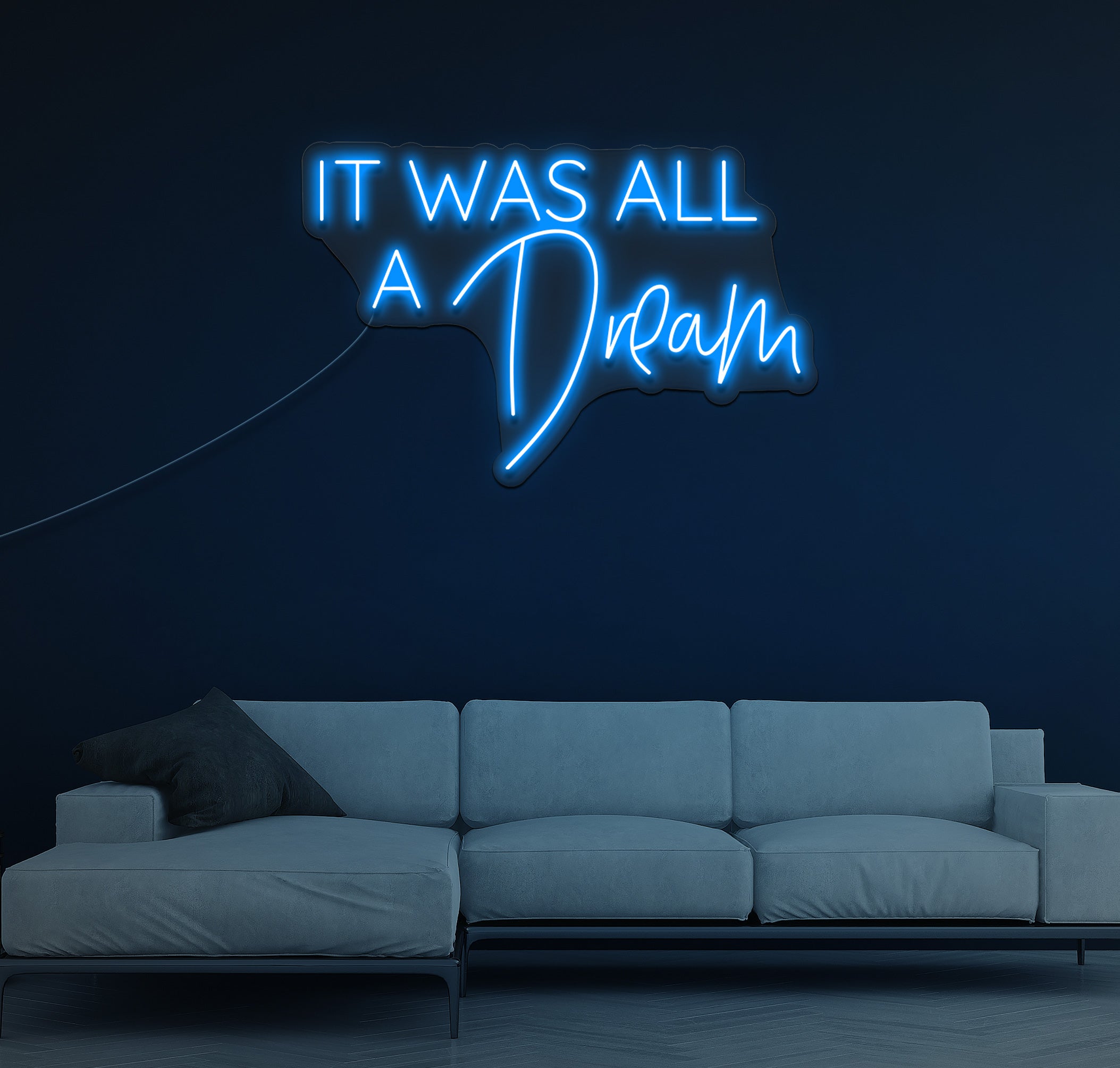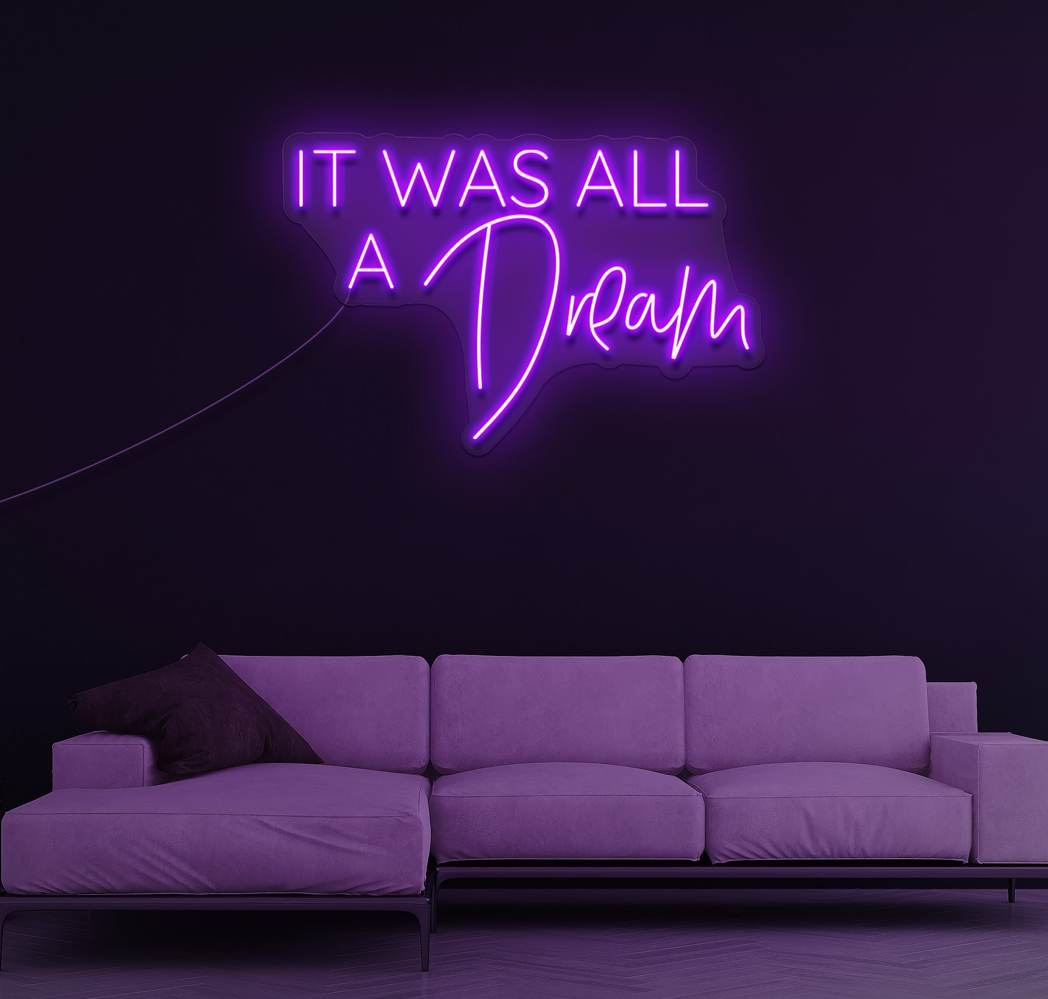 Transform your space into a haven of inspiration with the "It Was All A Dream" LED Neon Sign. This captivating neon sign features the iconic phrase in a stylish, modern font, casting a soft, enchanting glow that adds a touch of magic to any room. Whether you're looking to enhance your bedroom, living room, office, or studio, this sign is the perfect addition to create an ambiance that is both dreamy and motivational.