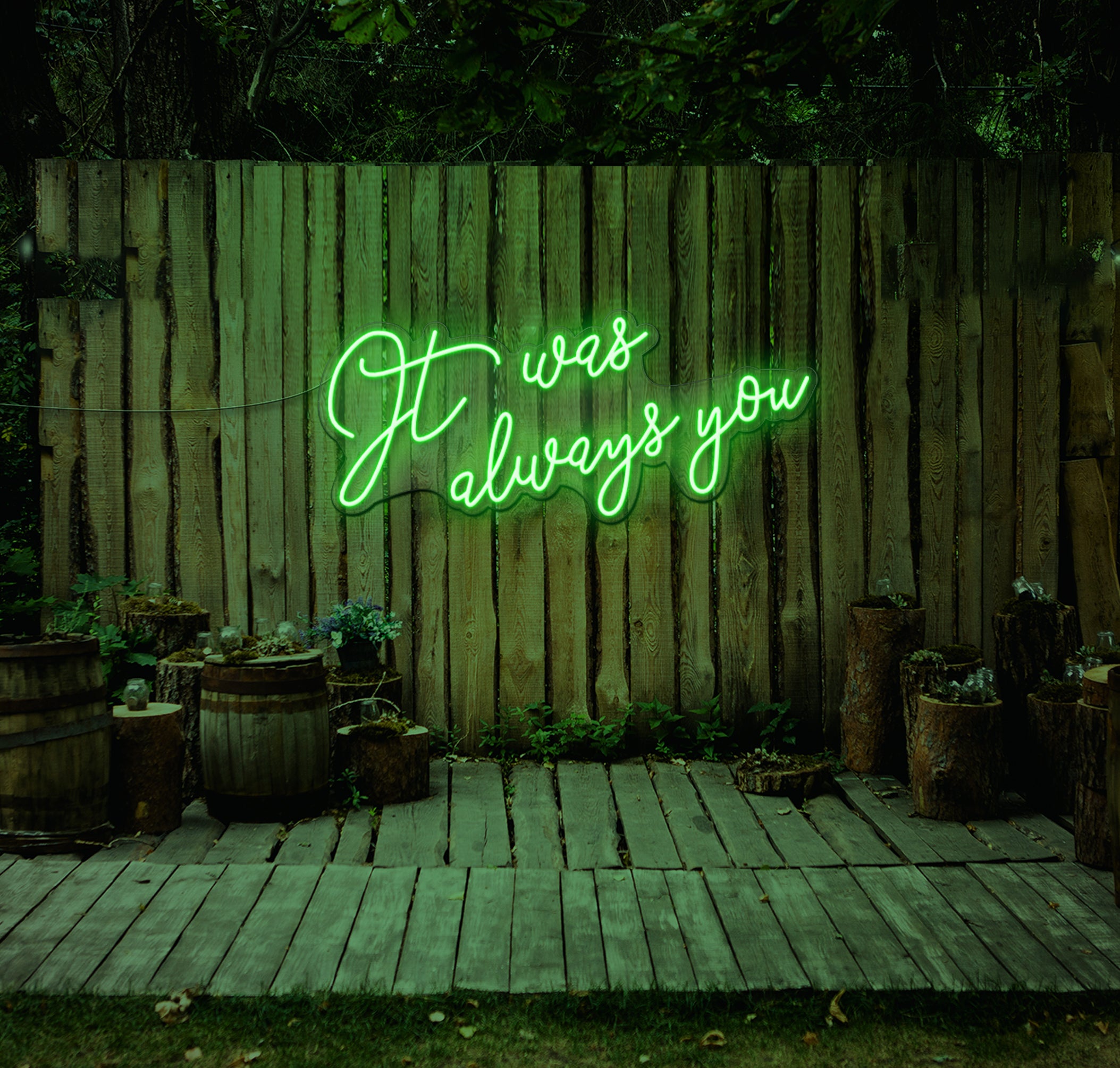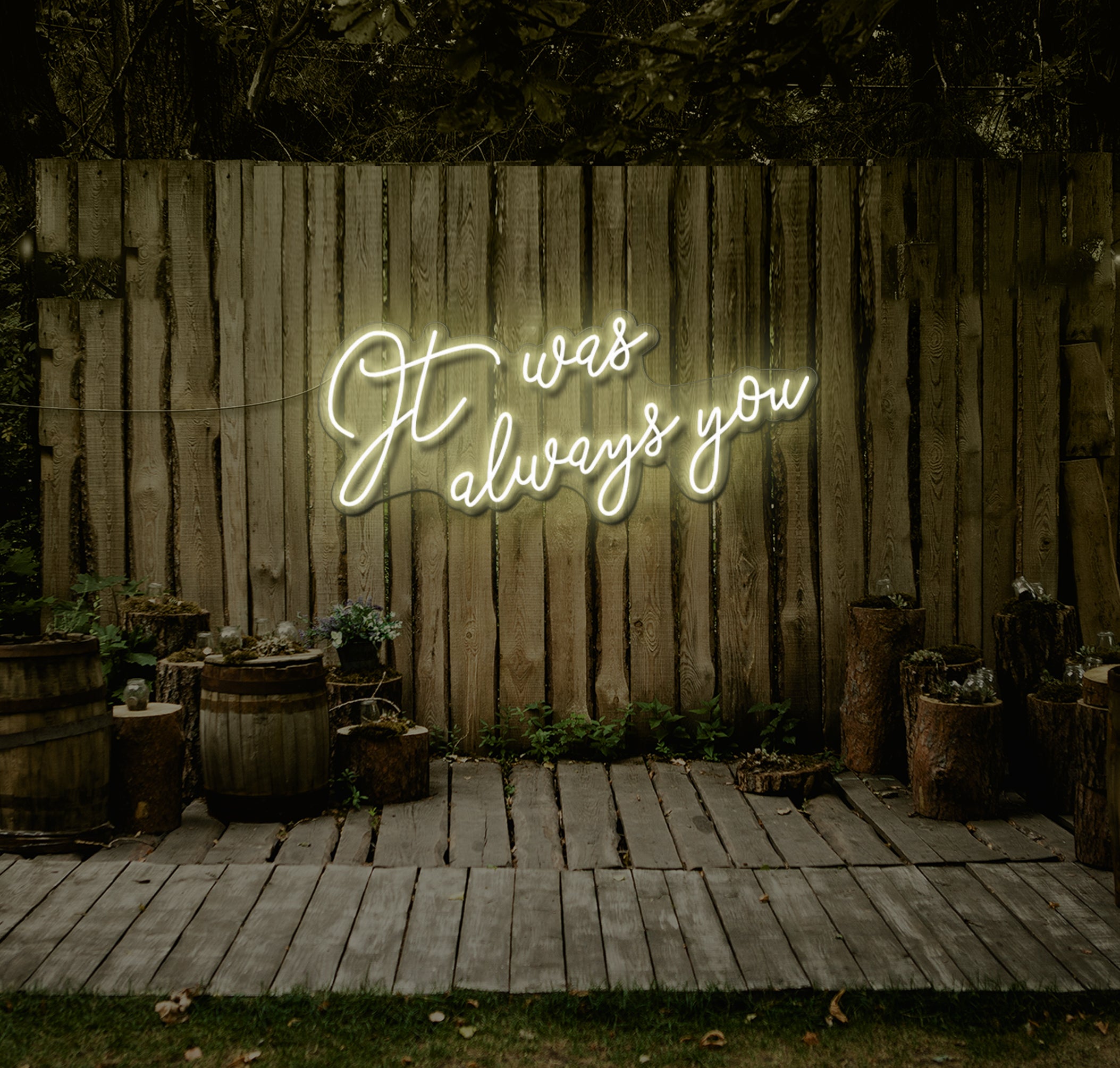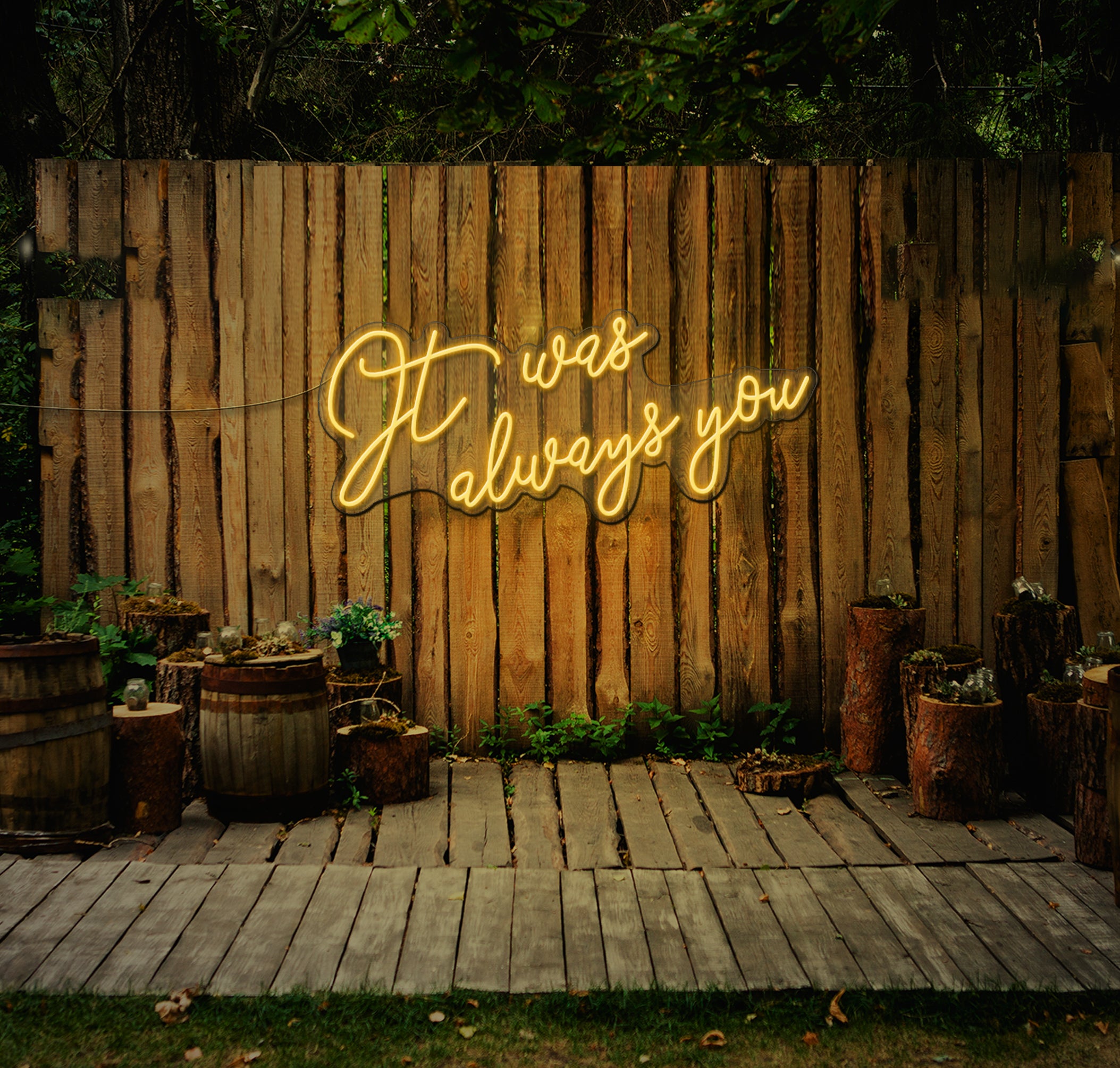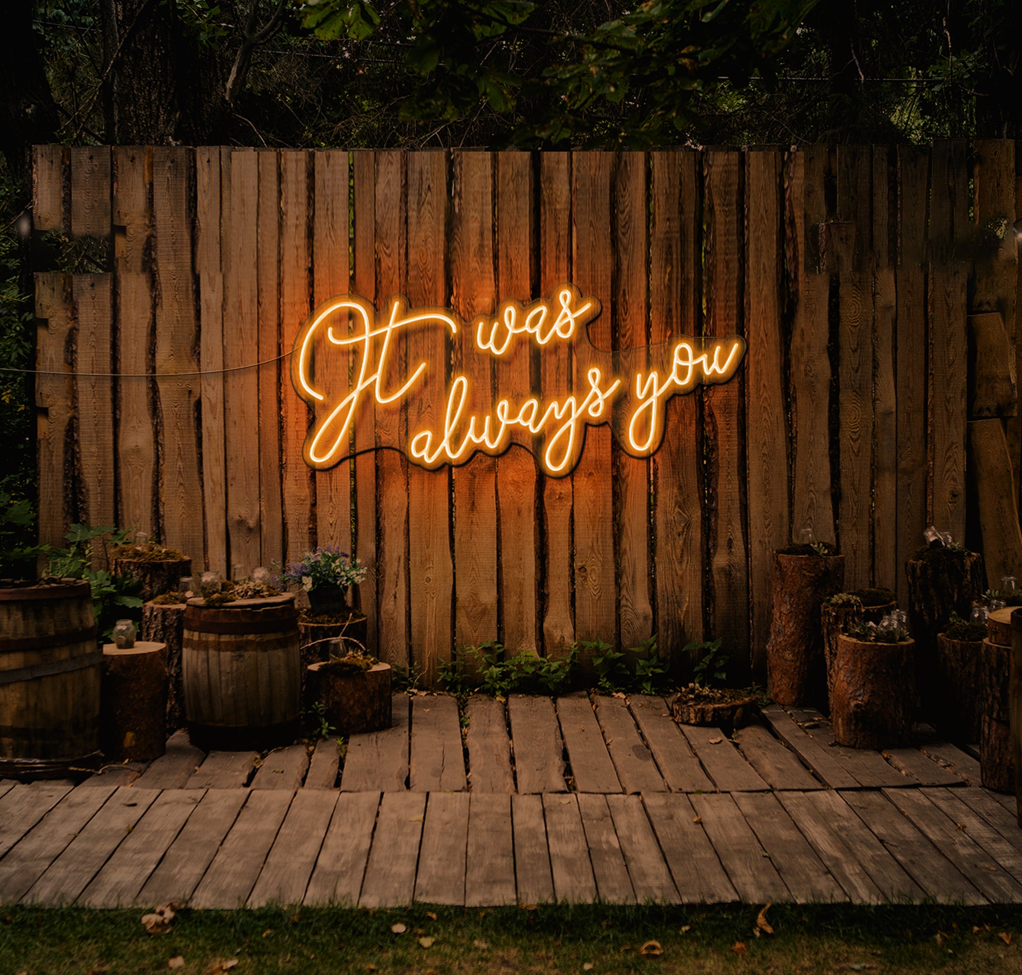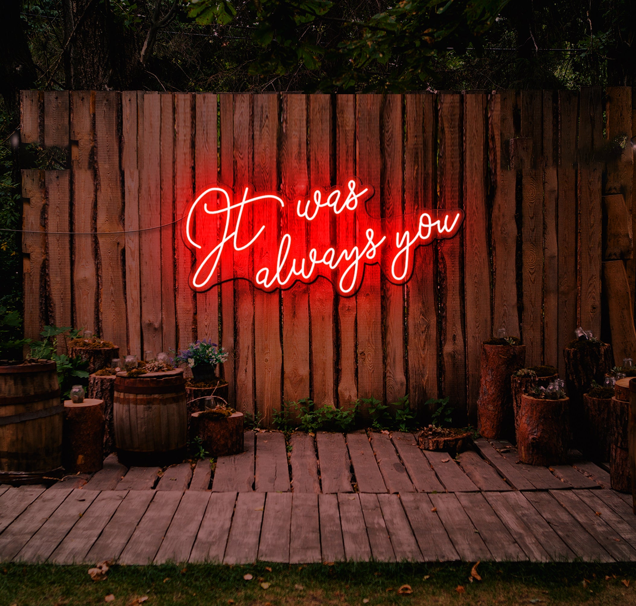 Whether you're exchanging vows, dancing the night away, or simply basking in the joy of being together, "It Was Always You..." LED Neon Sign from The Neon Factory is the perfect choice to illuminate your wedding day with warmth and love. Order yours today and let the radiant glow of LED neon enhance the magic of your celebration.