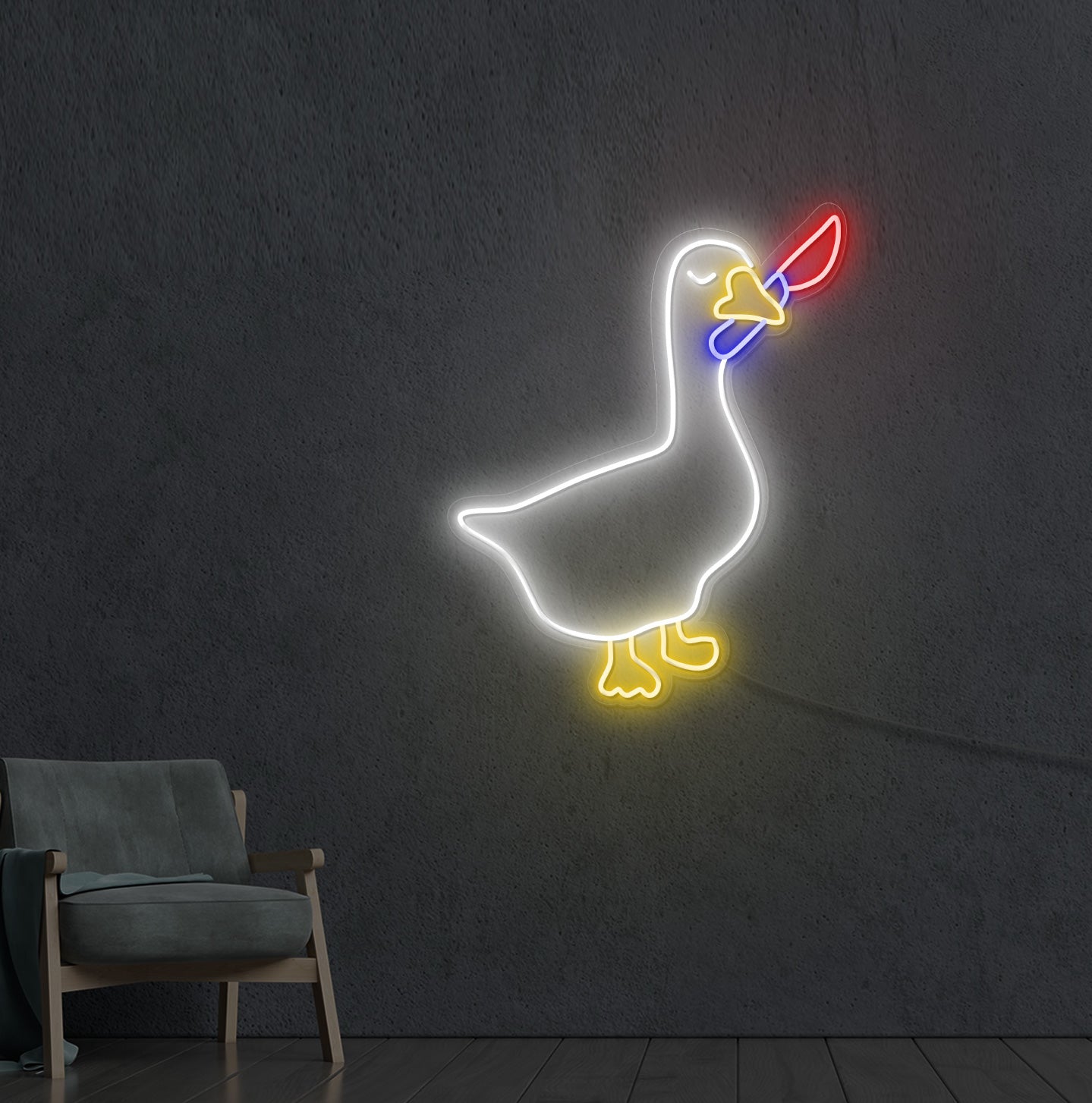 With its eye-catching design and durable construction, this neon sign is built to last, ensuring years of enjoyment and admiration. Add a touch of whimsy and a dash of intrigue to your space with our "Knives out Duck LED Neon Sign" today!