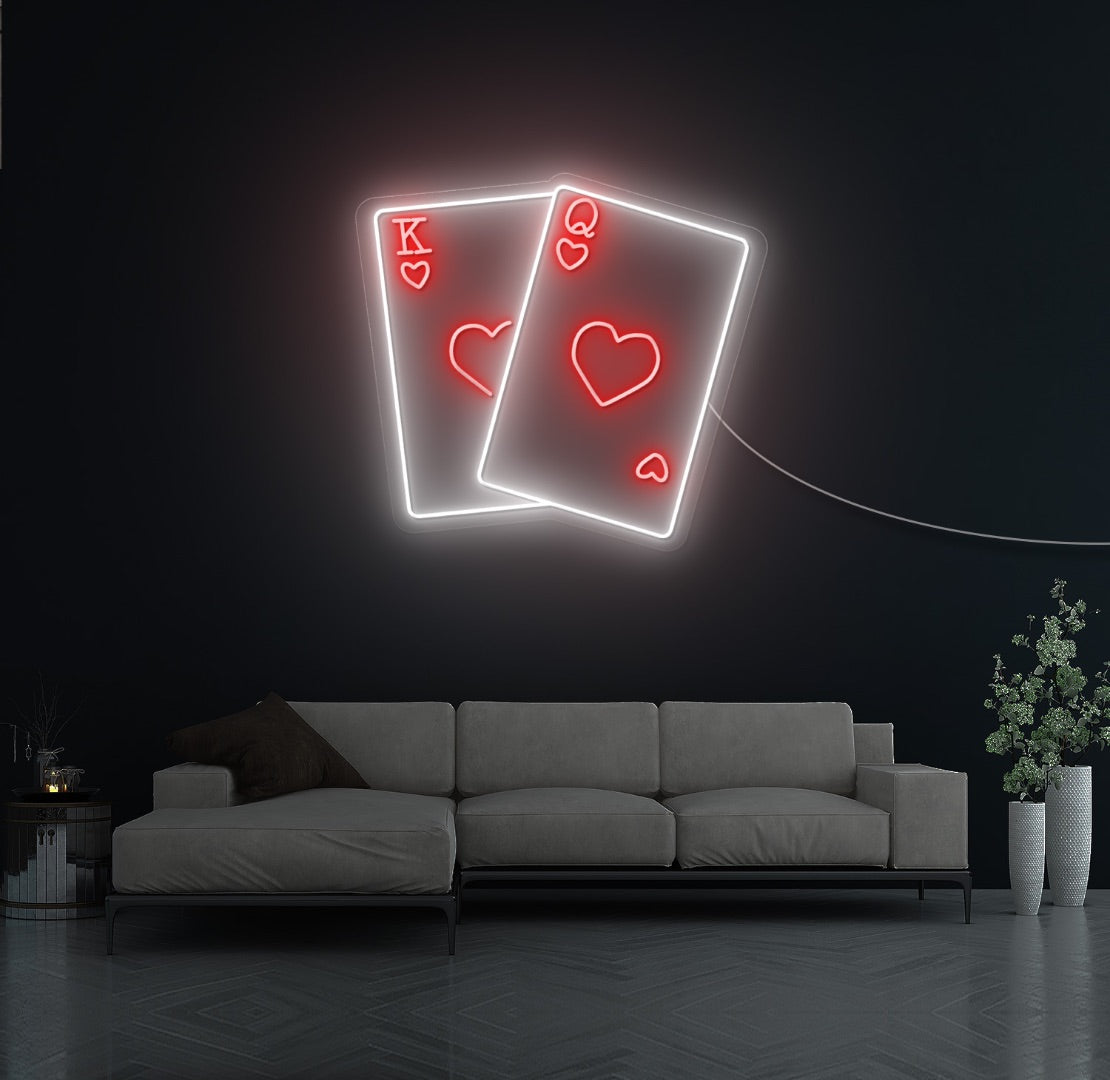 Crown your love story with our enchanting "King and Queen of Hearts" Custom Neon Sign at The Neon Factory. This masterpiece combines the romance of personalized neon art with the timeless symbolism of royalty. Elevate your space with the warm glow of neon lights, creating a regal atmosphere that celebrates your love.