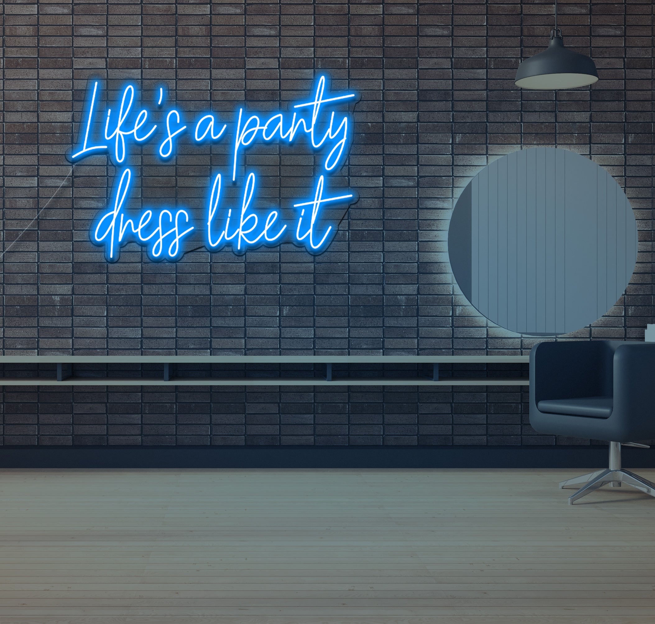 Whether you're decorating for a party or simply infusing your space with positive energy, "Life's a Party Dress Like it" Custom LED Neon Sign from The Neon Factory is the perfect choice. Order yours today and let the radiant glow of LED neon inspire you to live life to the fullest, one stylish moment at a time.