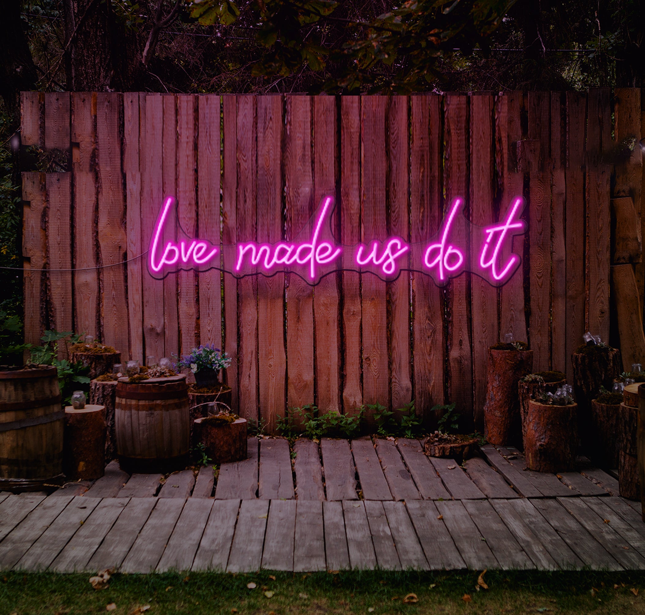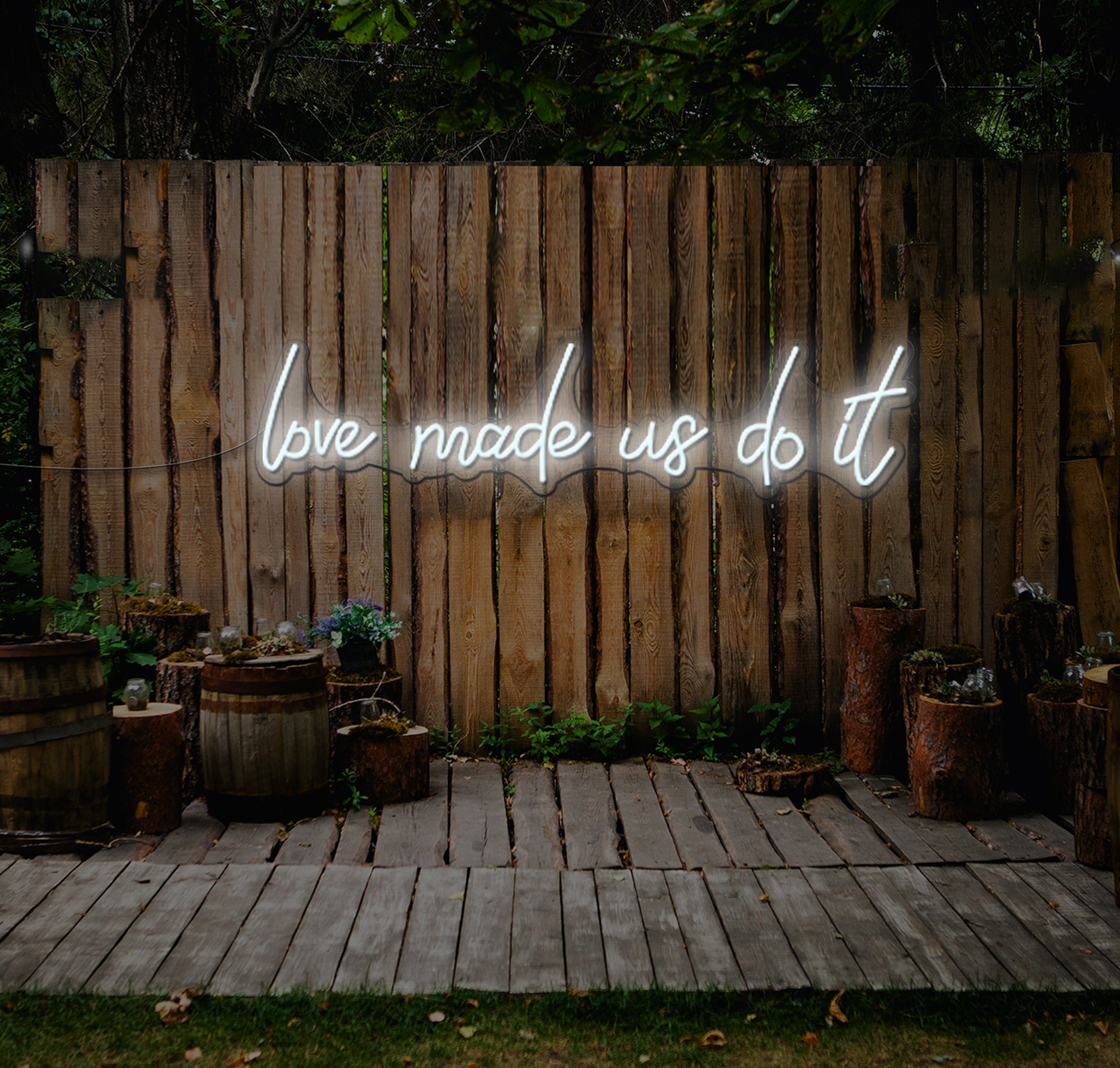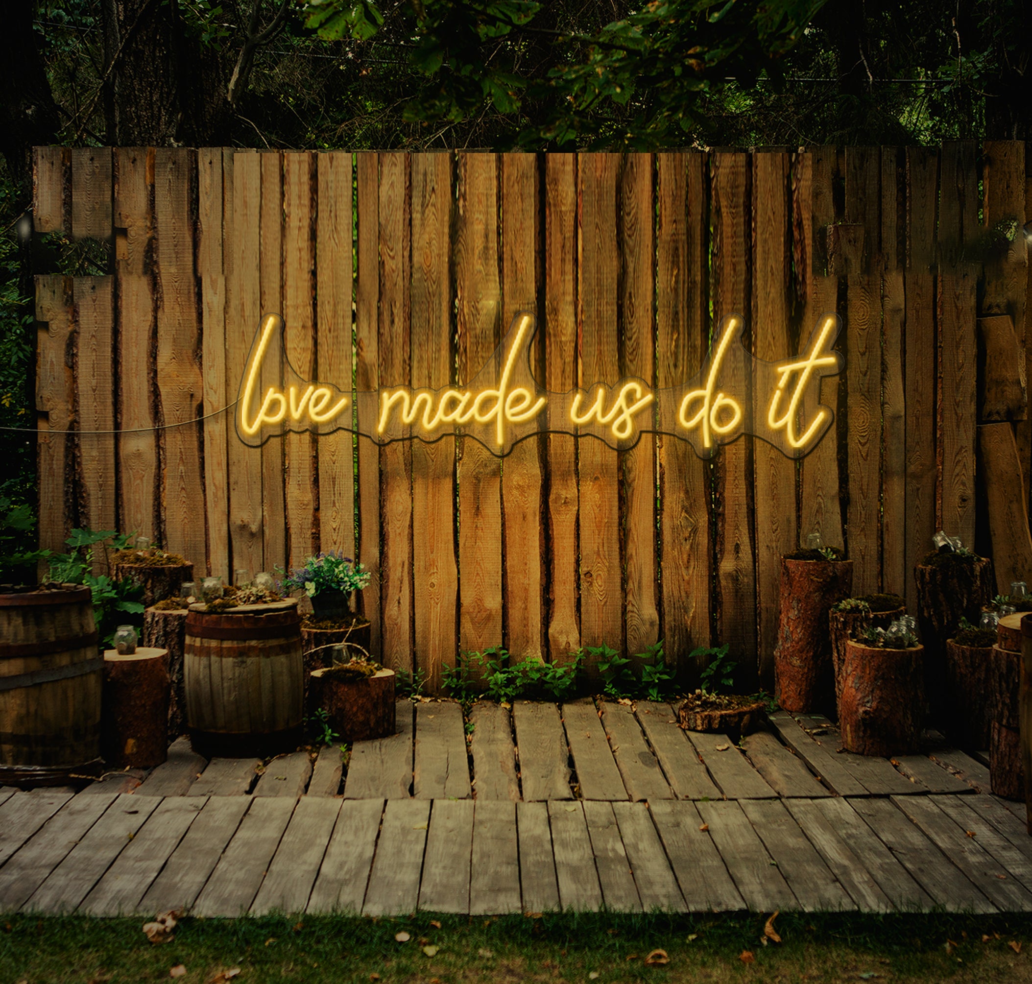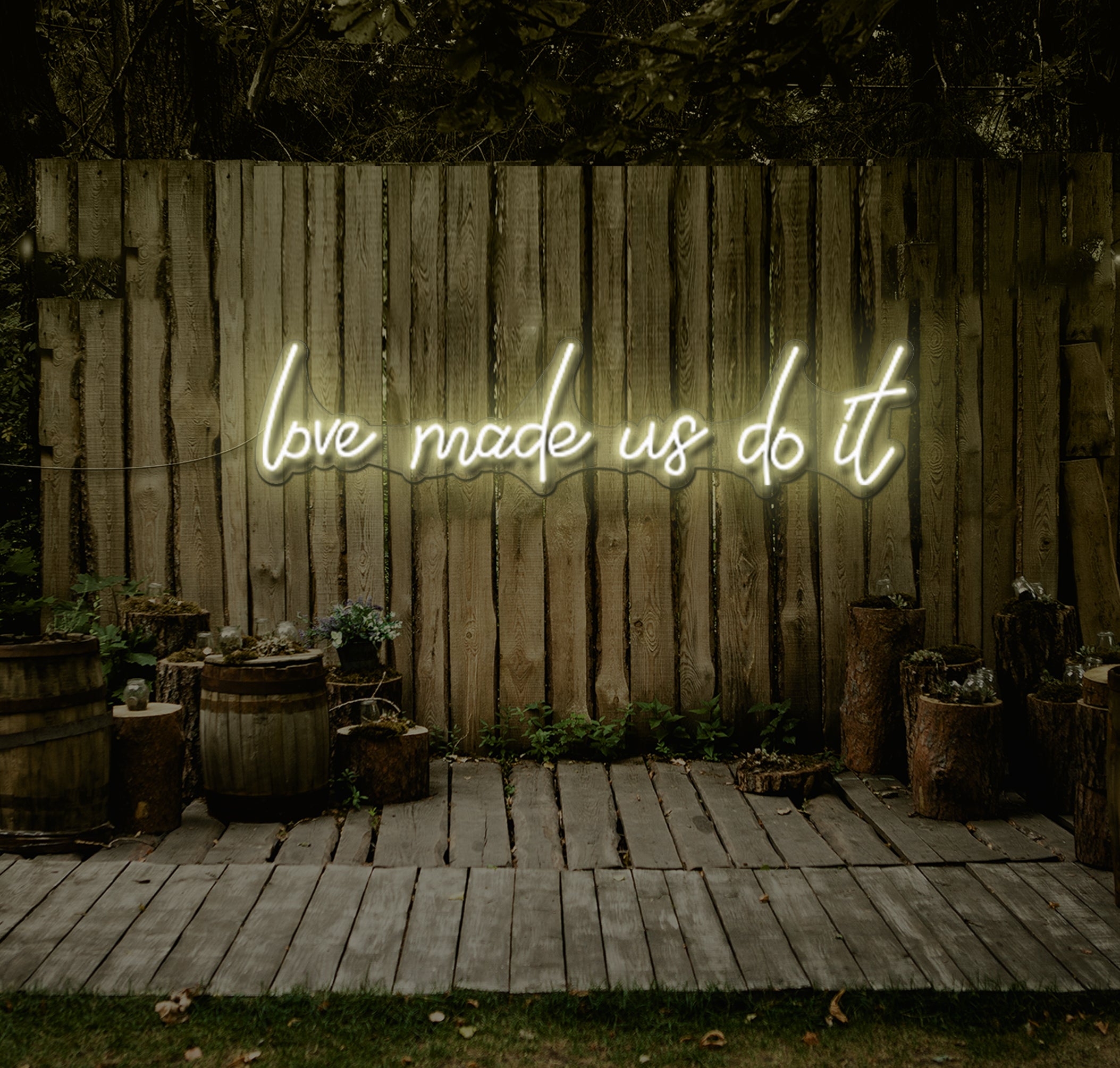 Whether you're exchanging vows, dancing the night away, or celebrating with loved ones, "Love Made Us Do It" LED Neon Sign from The Neon Factory is the perfect choice to illuminate your wedding day with warmth and joy. Order yours today and let the radiant glow of LED neon enhance the magic of your celebration.