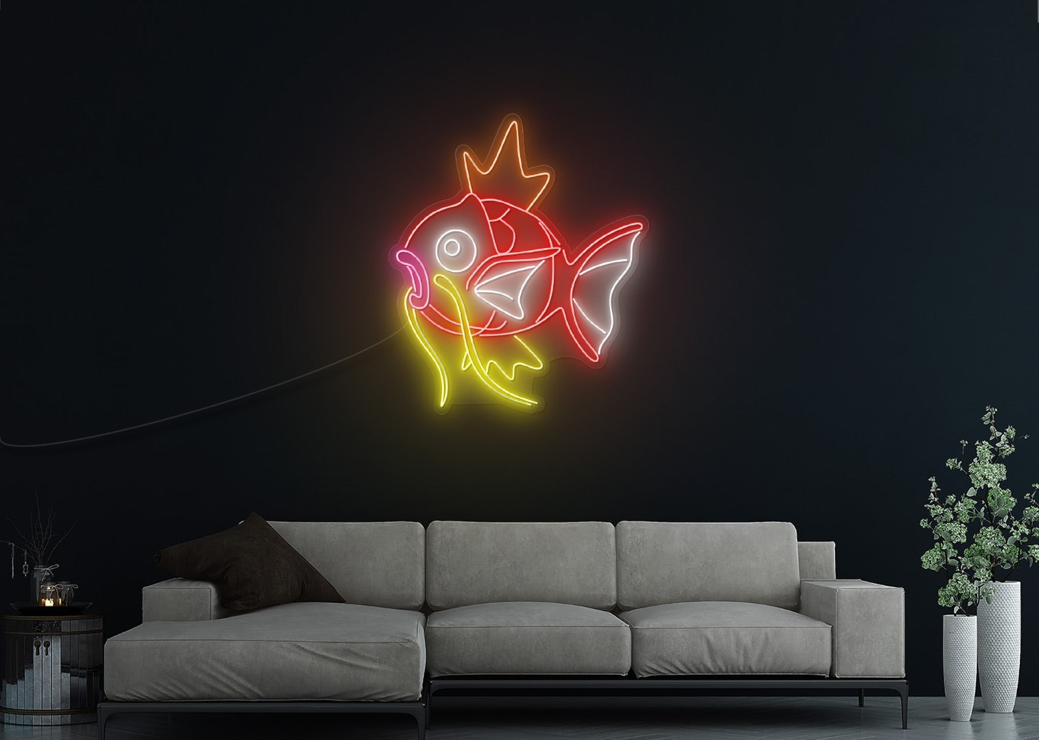 Whether you're a fan of fantasy anime or simply love the allure of mystical creatures, the "Magic Fish LED Neon Sign" is sure to delight and inspire. Let its ethereal glow transport you to a realm of wonder and adventure, where anything is possible and magic is real. Add a dash of enchantment to your home or office with this enchanting neon sign and let your imagination take flight.
