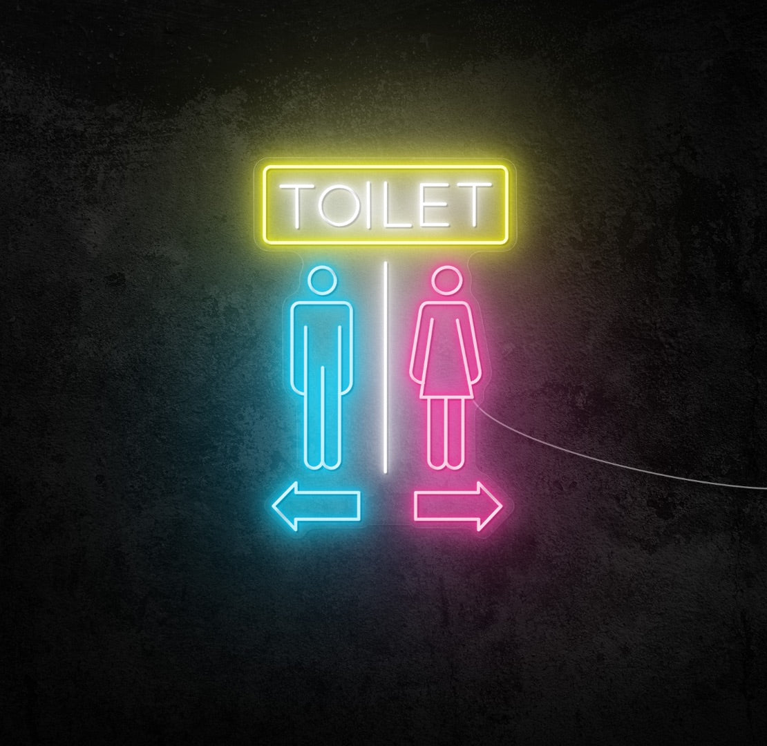 Differentiate with style using our Men's Left Women's Right Neon Sign. This custom neon sign Melbourne crafted is a chic and functional addition to your restroom decor. The directional arrows and elegant lettering add a touch of sophistication, making it a unique and stylish element for your space.