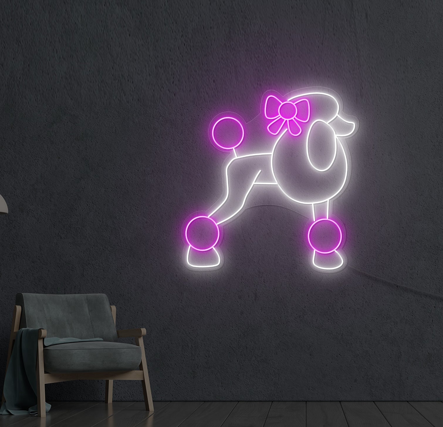 Introducing our captivating "Miss Poodle LED Neon Sign"! This stunning sign features an elegant and graceful poodle design, illuminated with vibrant LED neon lights that are sure to catch the eye.