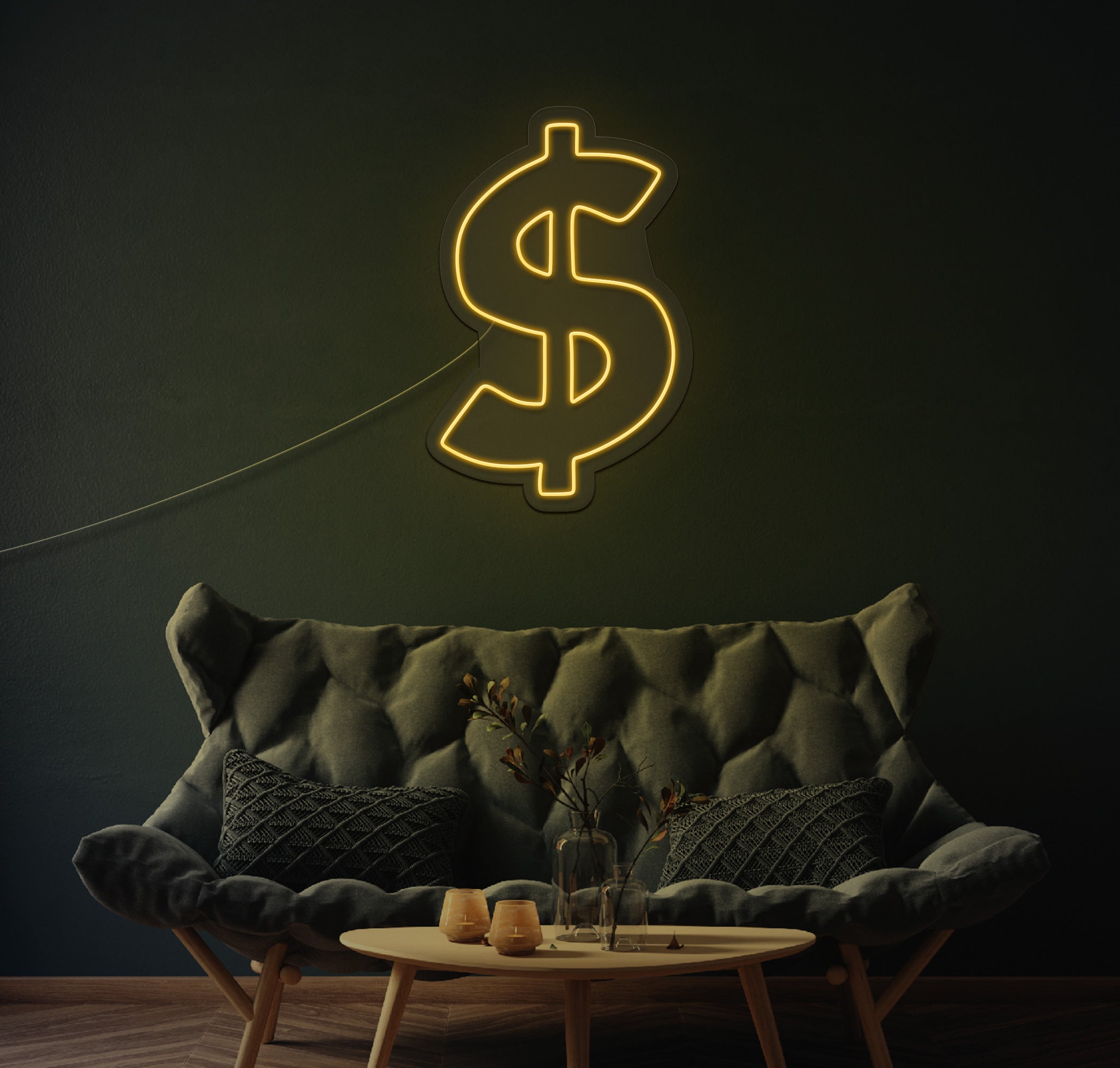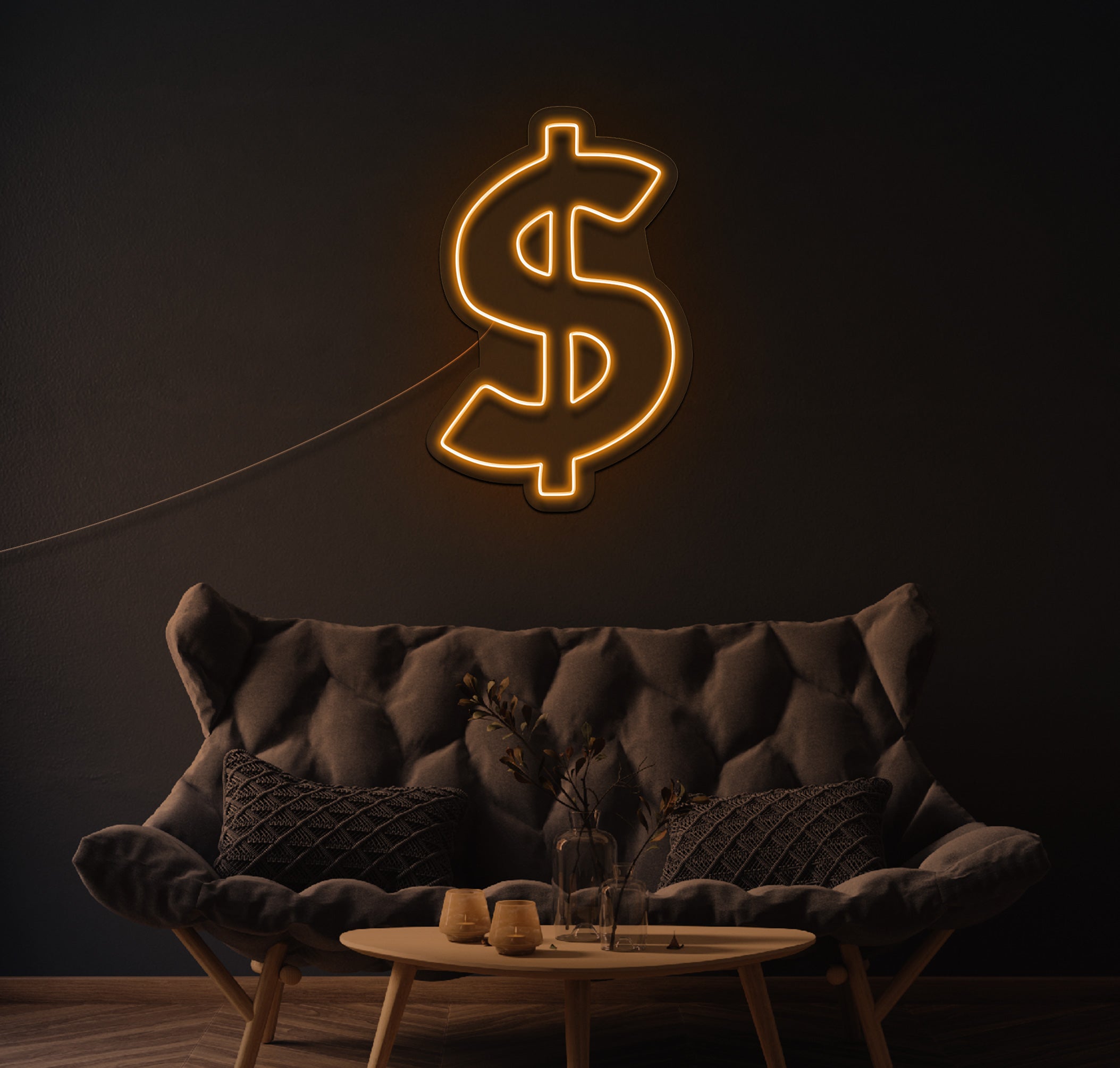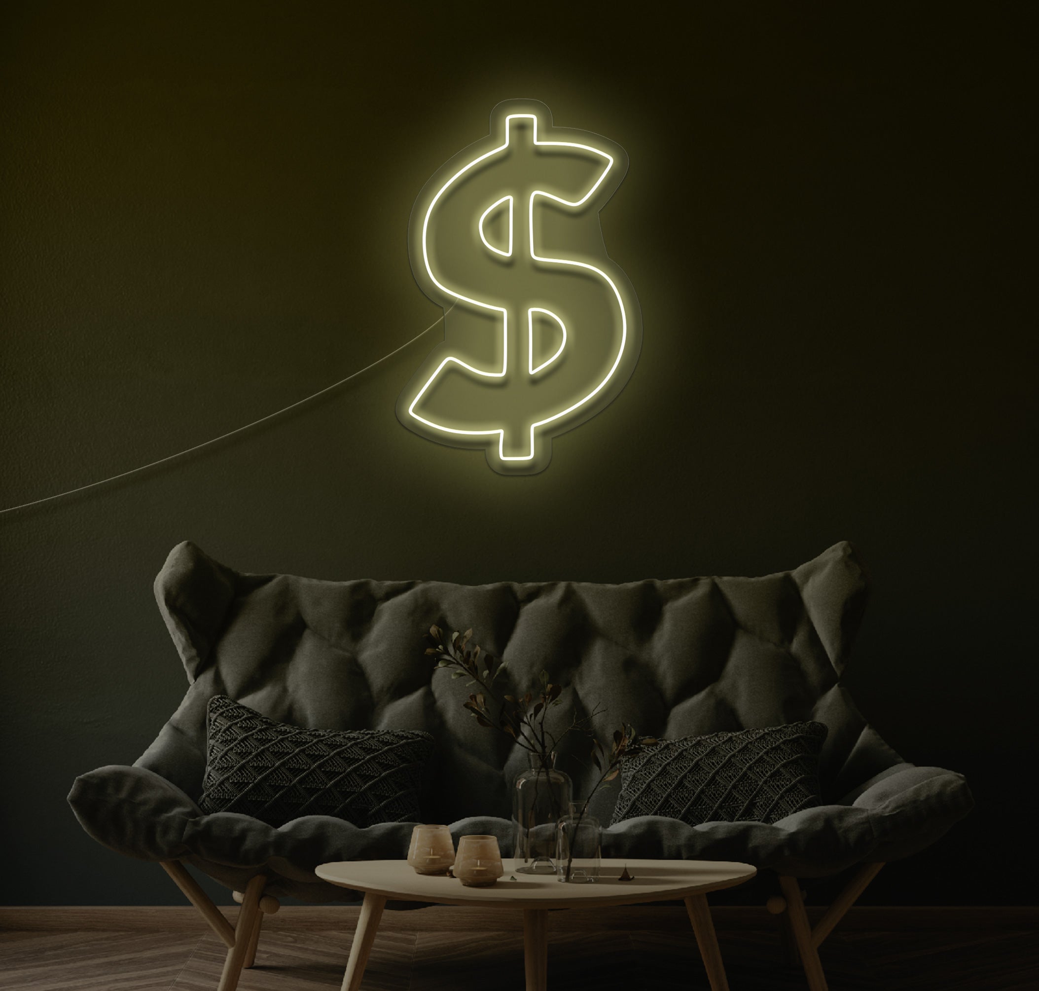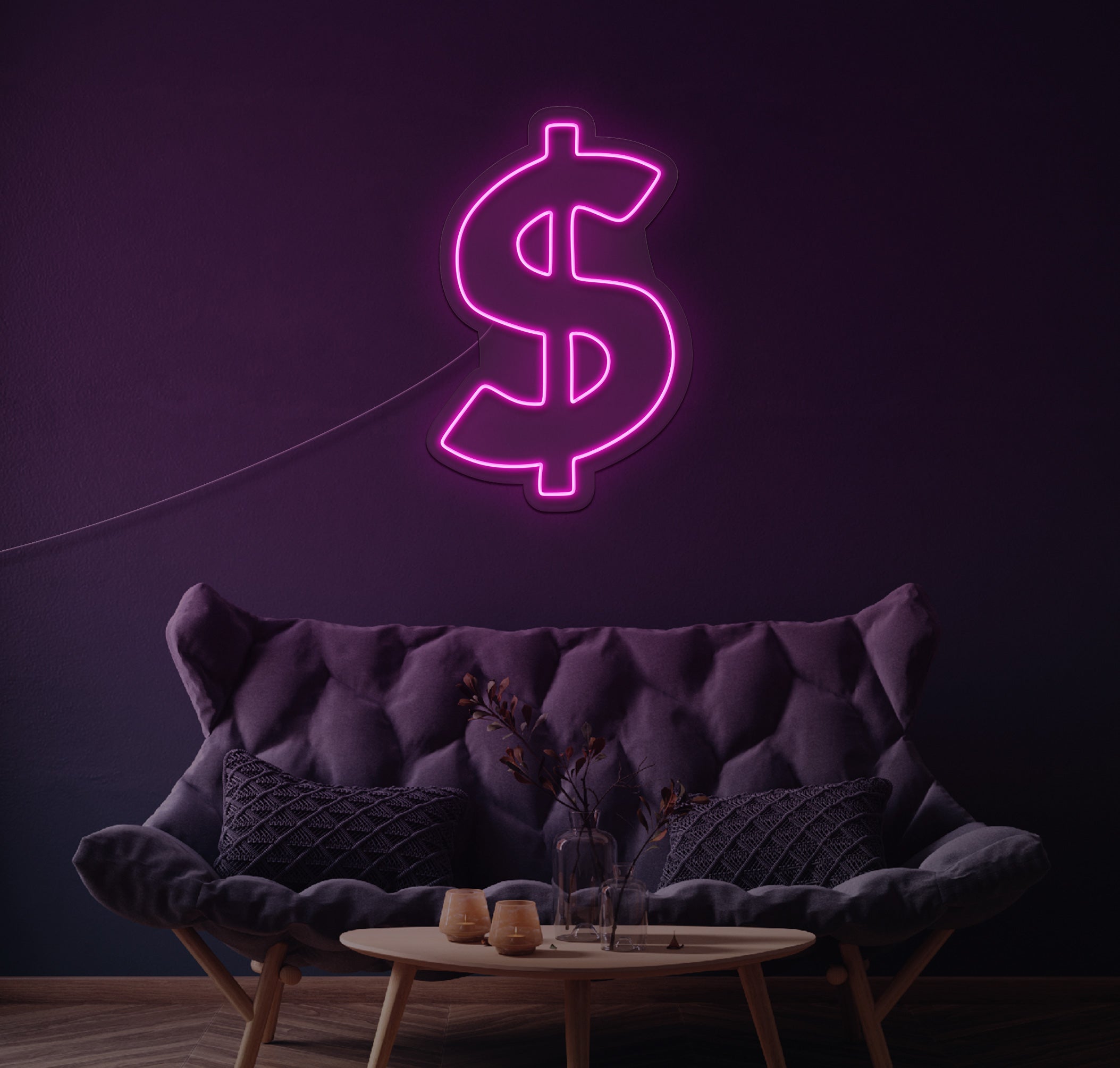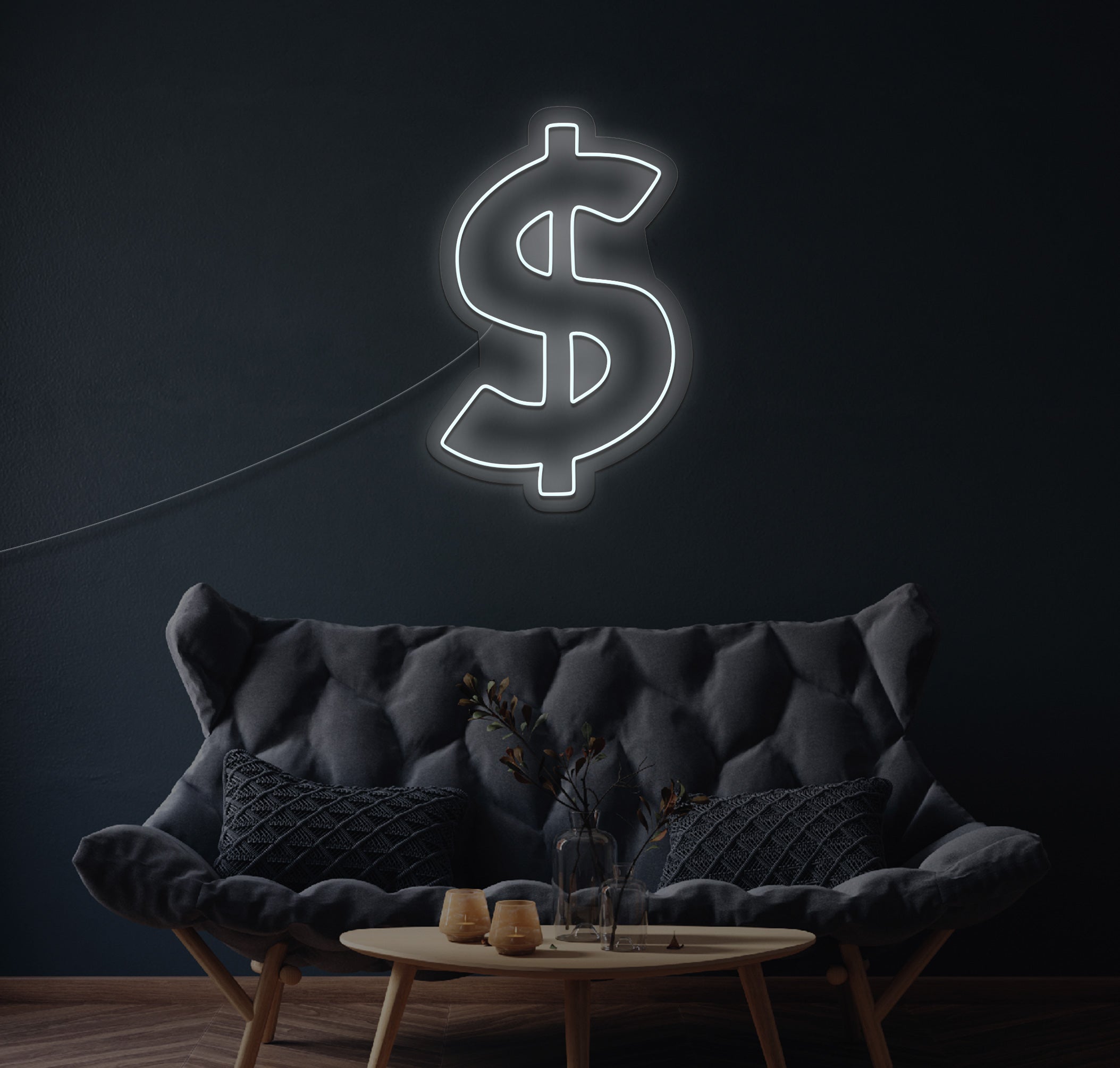 The "Dollar Sign LED Neon Sign" utilises advanced LED neon technology, providing a bright and energy-efficient glow that is both environmentally friendly and long-lasting. Its vivid illumination creates a captivating ambiance, making it a standout piece in any setting. Whether you're aiming to highlight a chic business environment or simply add a unique element to your personal space, this sign fits the bill.