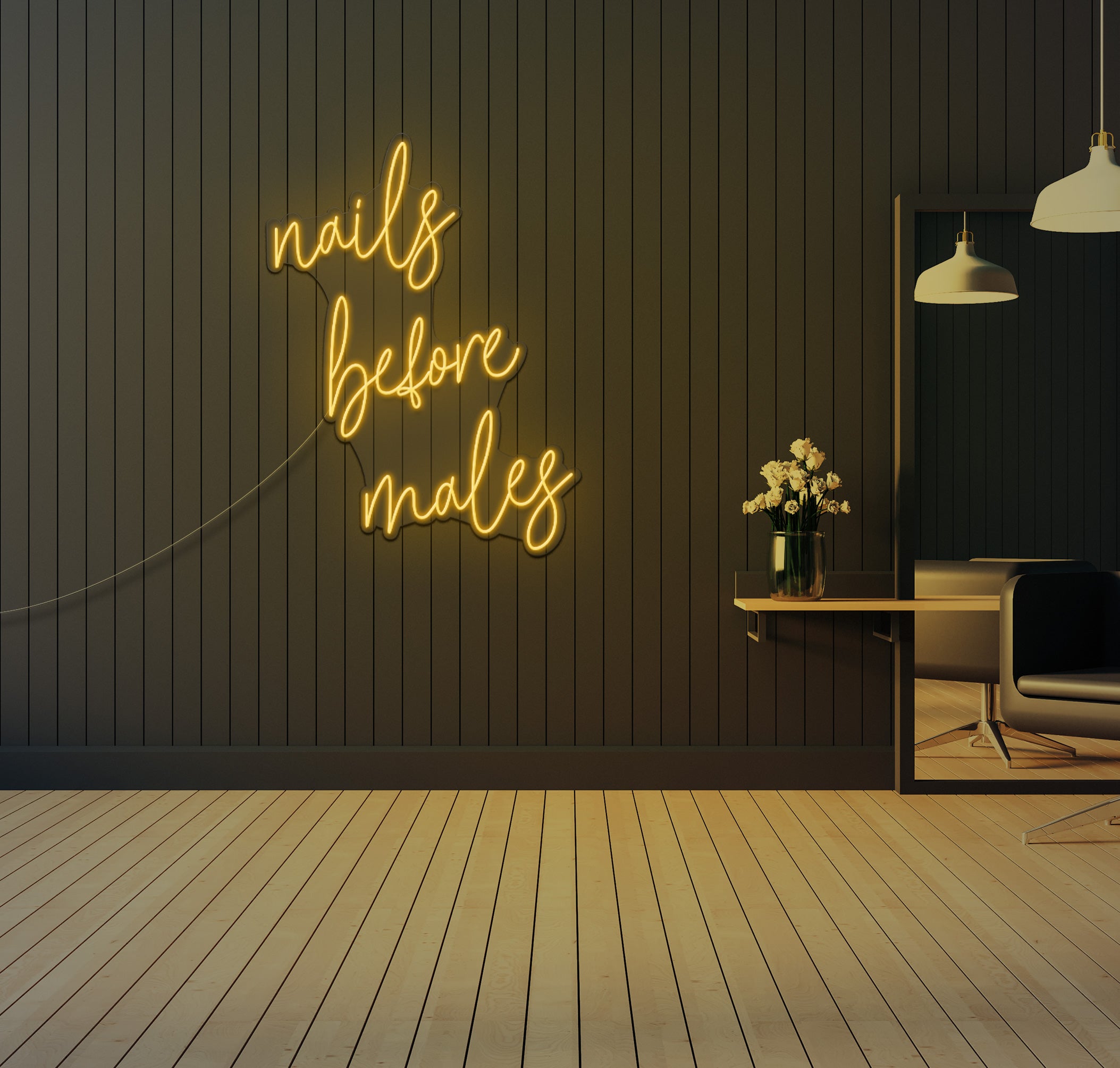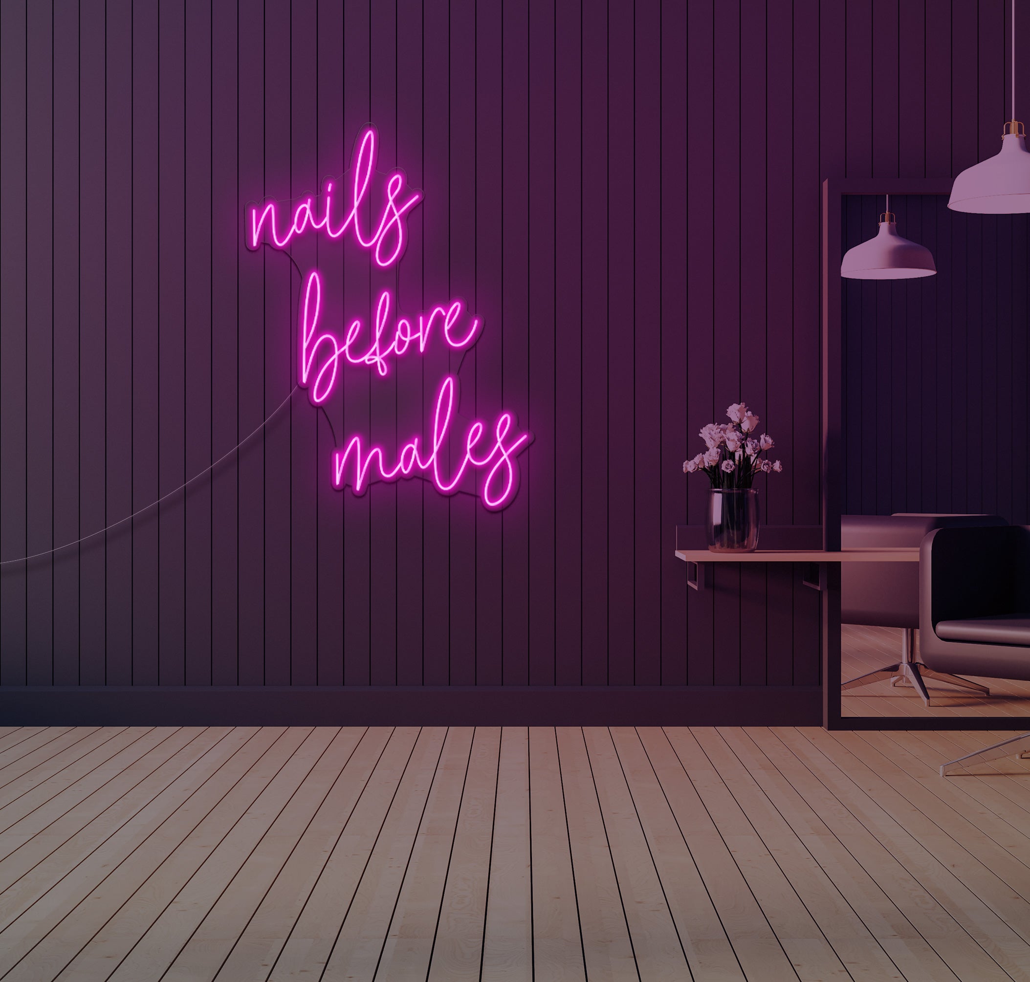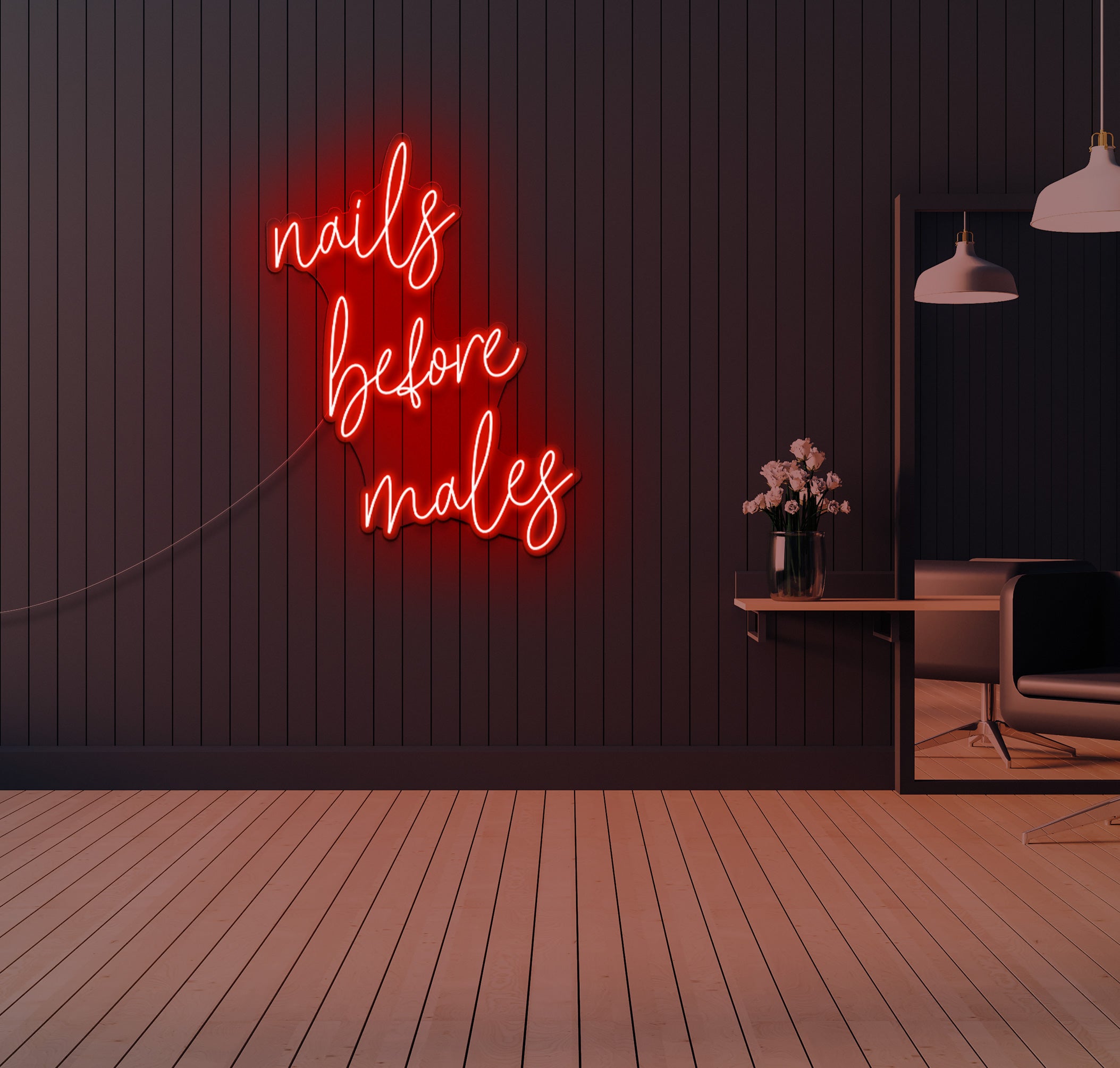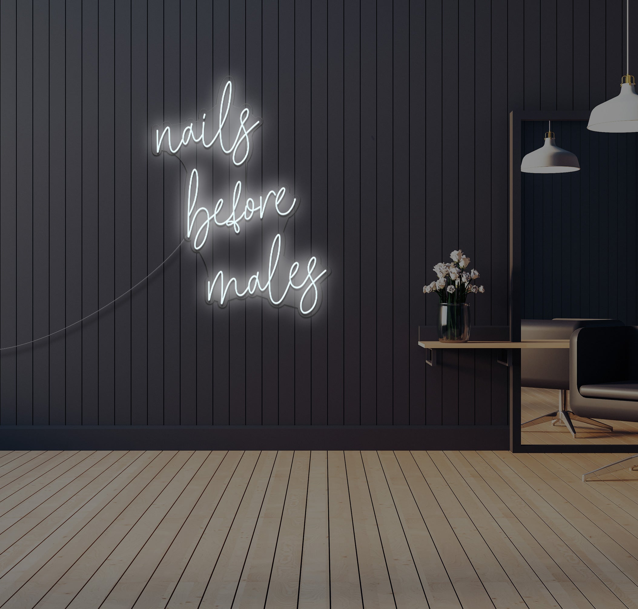 Whether you're a nail salon owner looking to inspire your clients or a nail enthusiast celebrating your independence, the "Nails Before Males" Custom LED Neon Sign from The Neon Factory is the perfect choice. Order yours today and let the radiant glow of LED neon empower your nail journey.