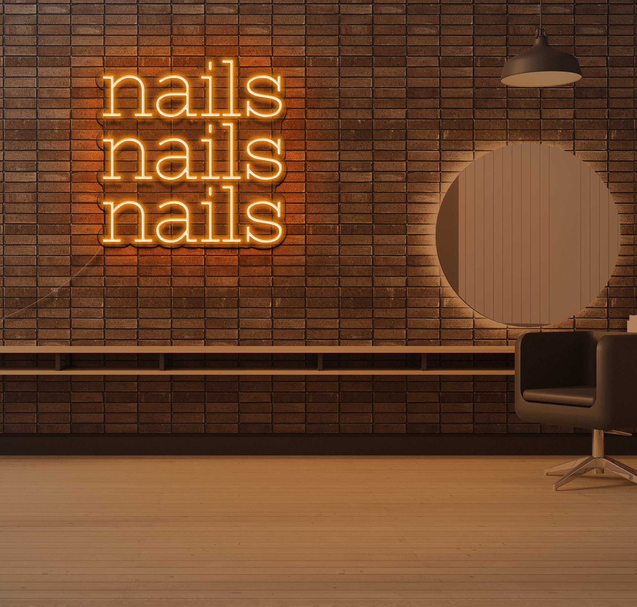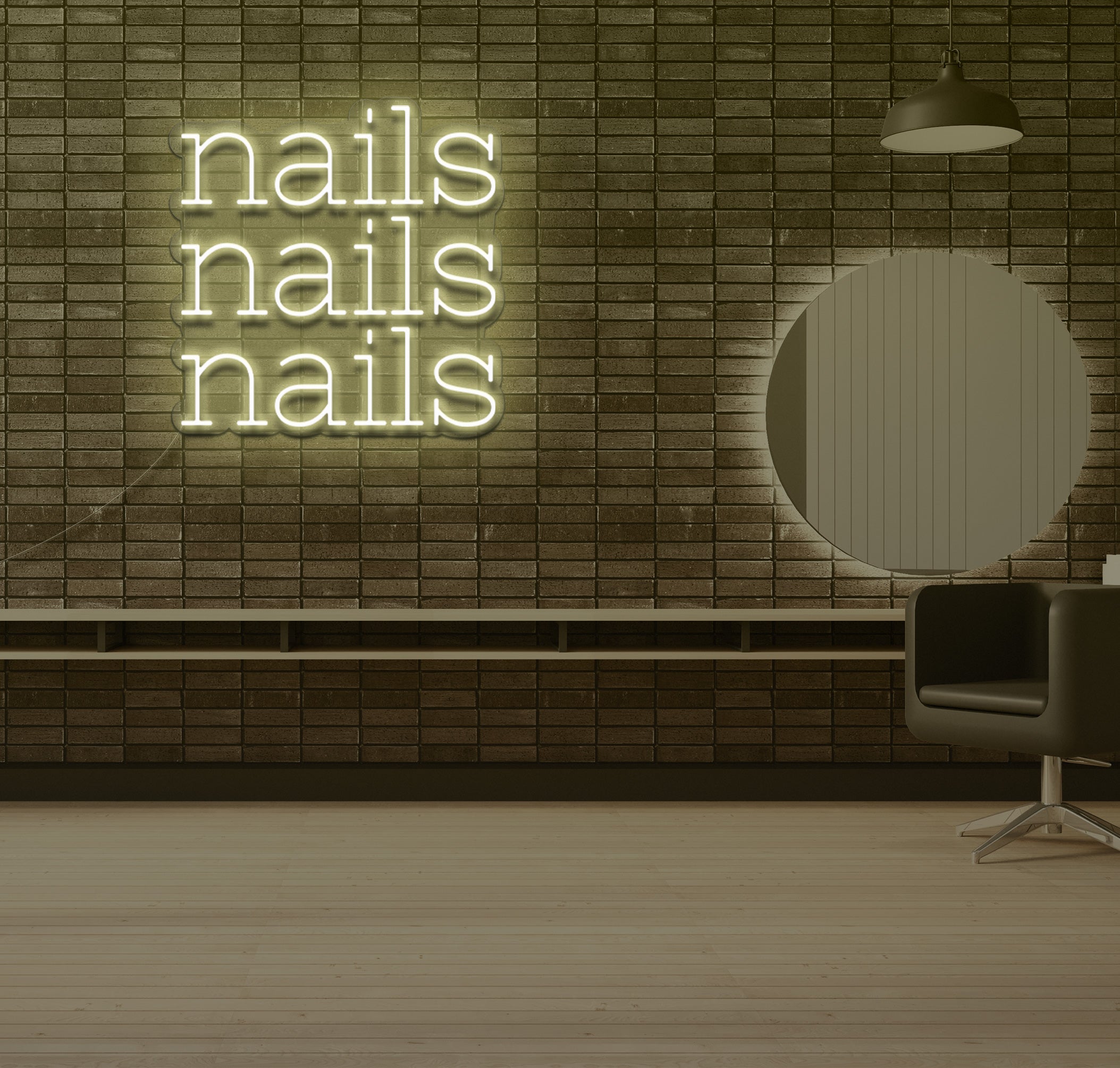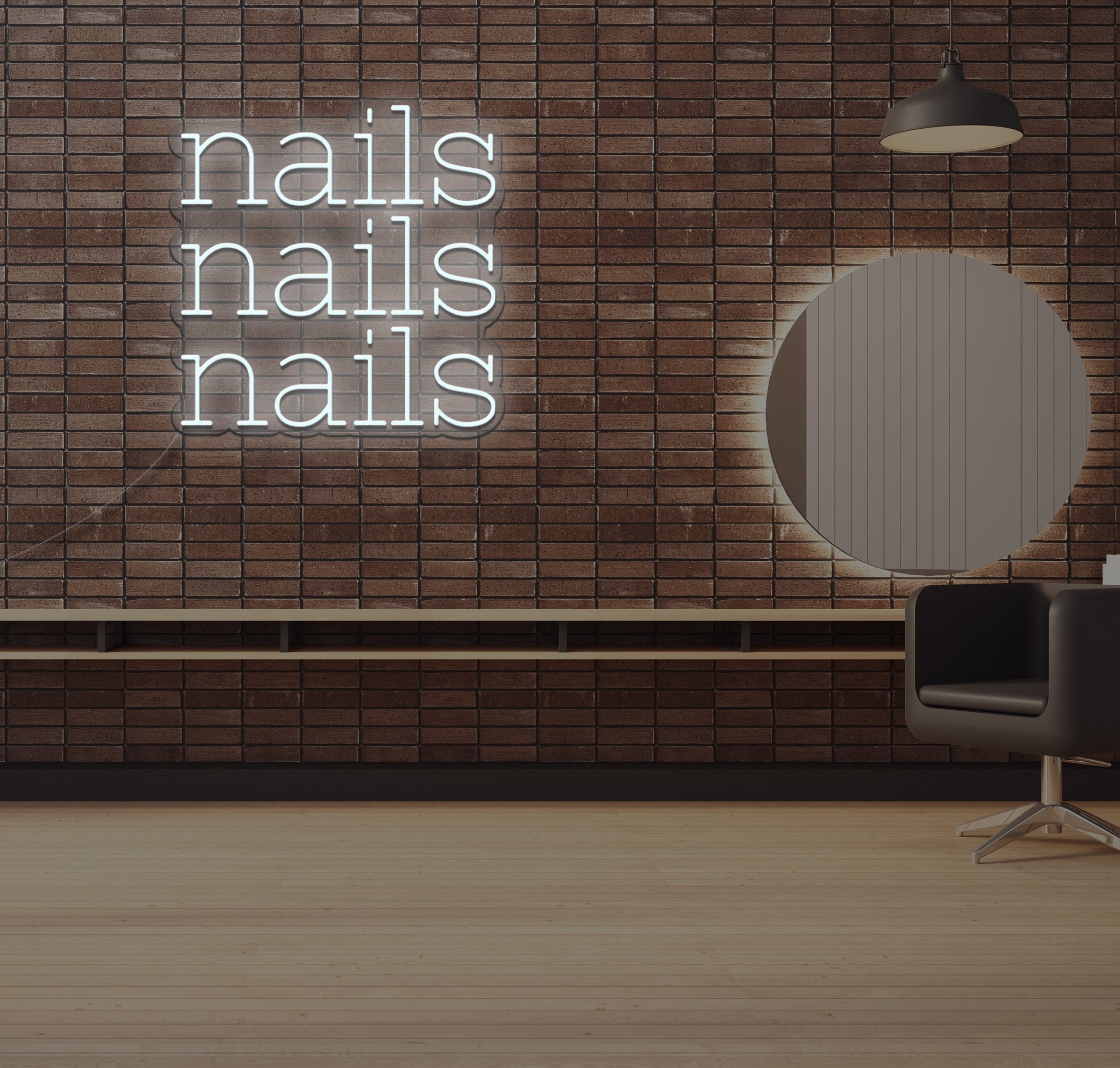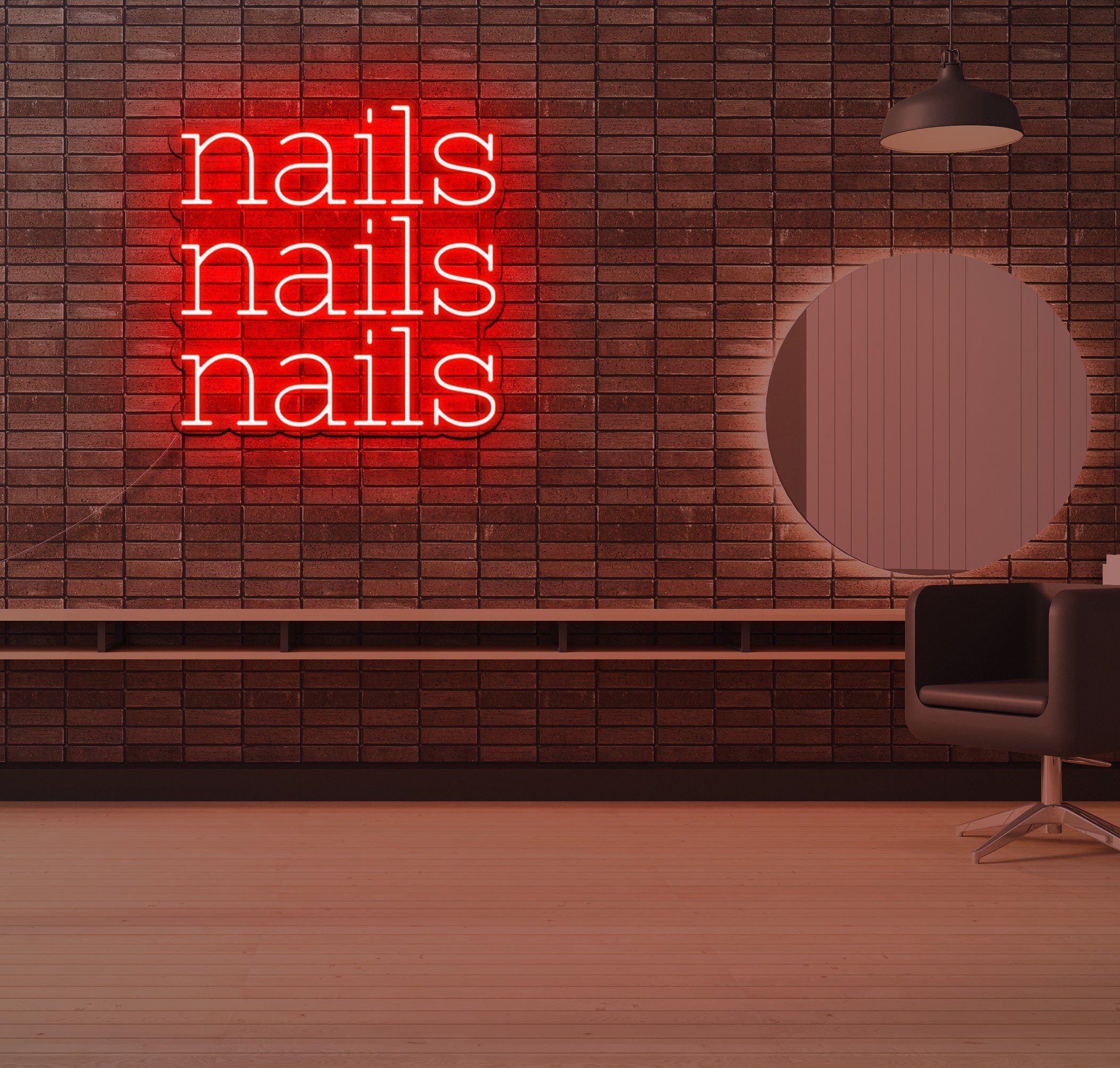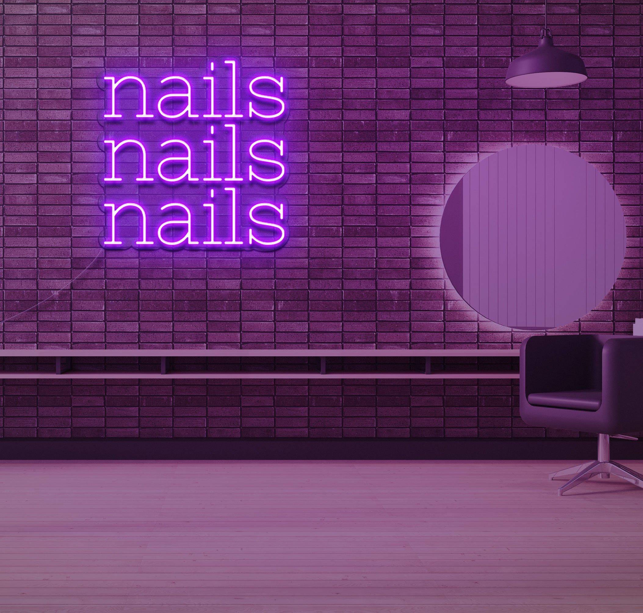 Whether you're a nail technician or a salon owner, "Nails, Nails, Nails" Custom LED Neon Sign from The Neon Factory is the perfect choice. Order yours today and let the radiant glow of LED neon elevate your nail studio to new levels of elegance and sophistication.
